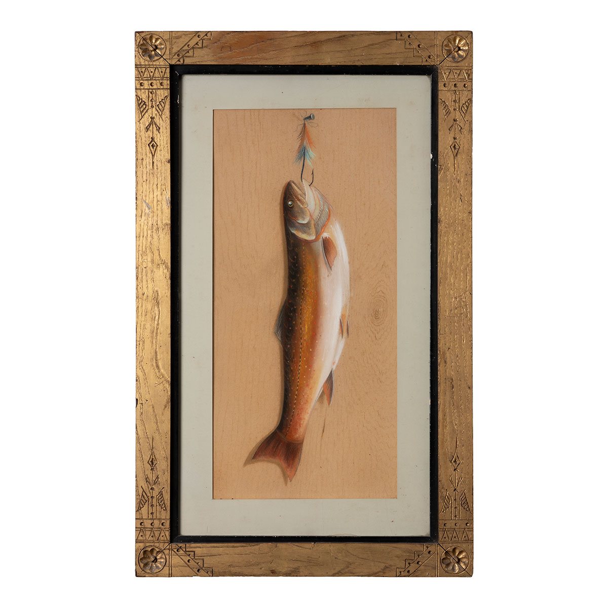 Antique Pastel on Paper Framed Trout