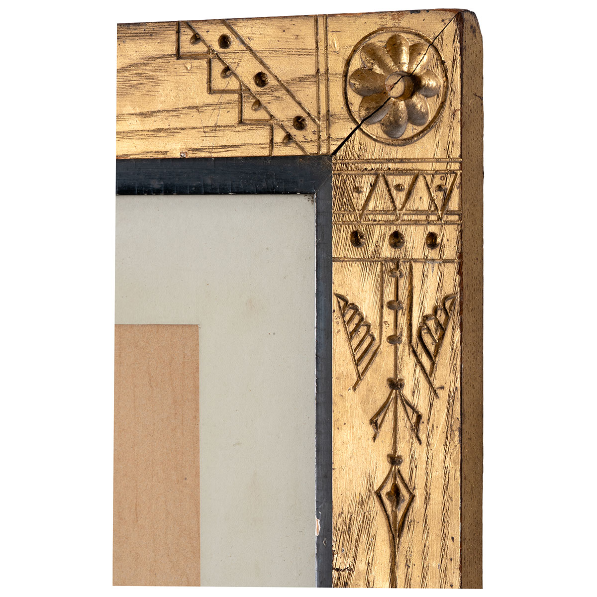 Extraordinary Carved Geometric Frame Gilded Frame with Corner Florets