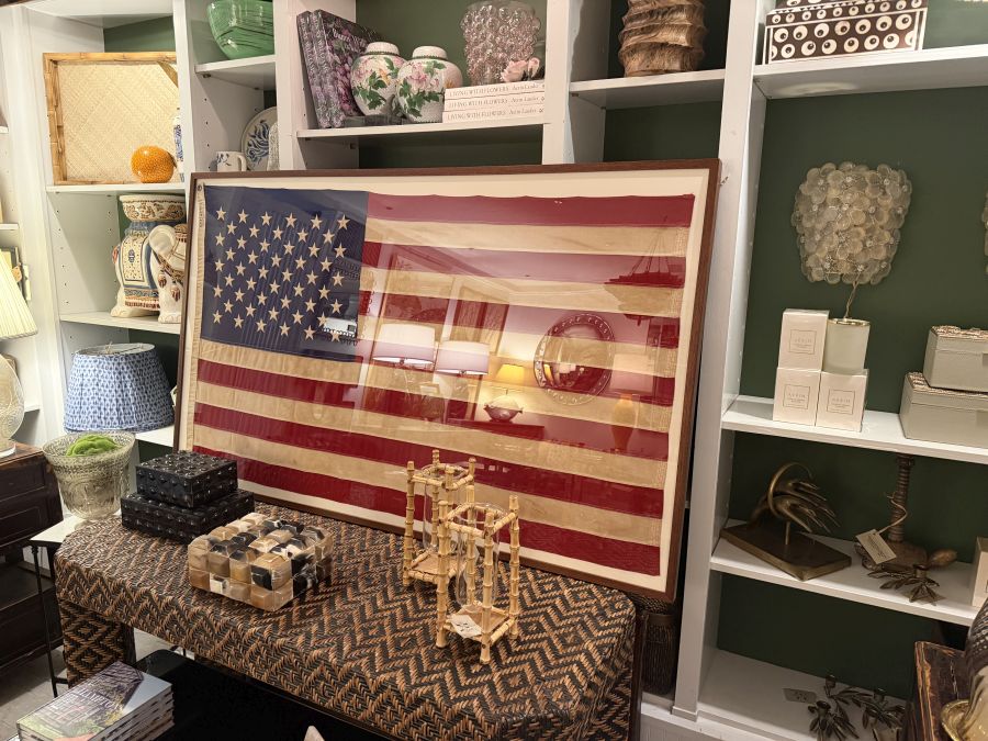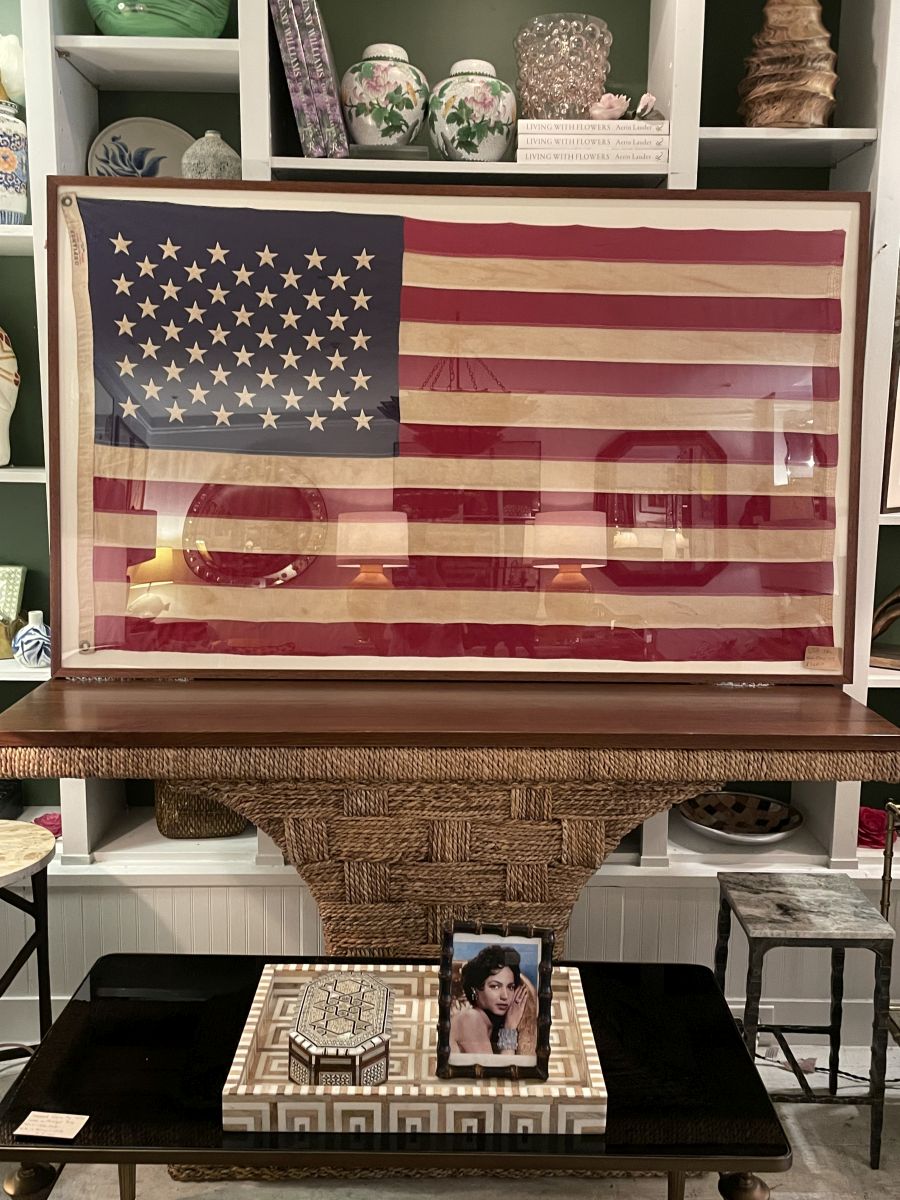 Vintage Cotton Framed Embroidered American Flag with Aged Patina