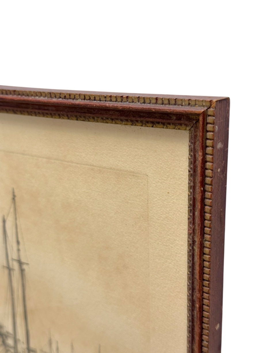 Vintage Framed Nautical Pen Drawing