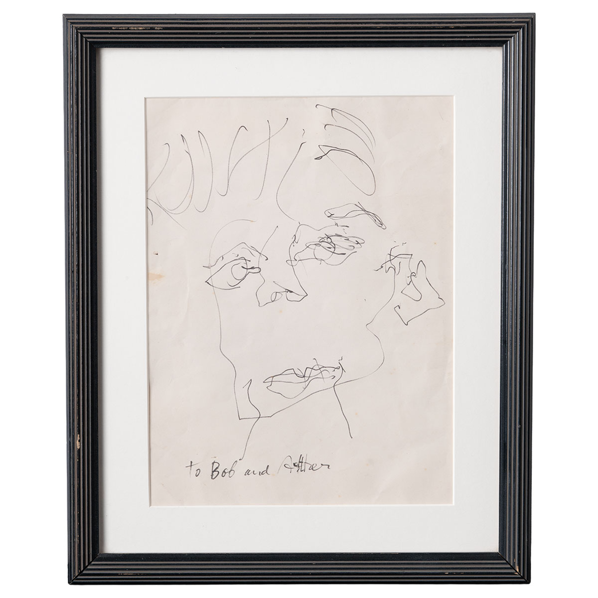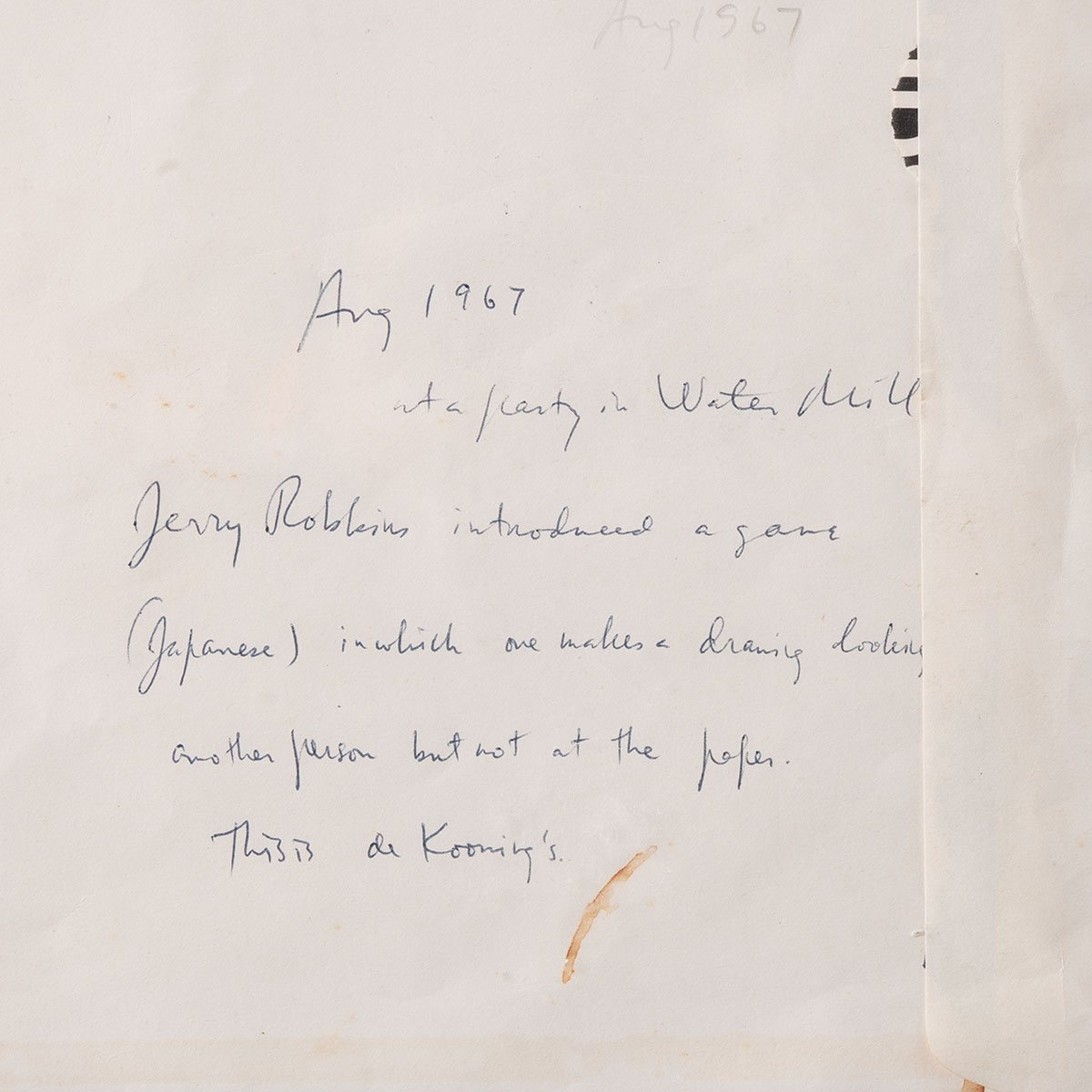 Authenticated by notes on reverse as legendary choreographer introduced a Japanese game “in which one makes a drawing of another person” not looking at the paper.