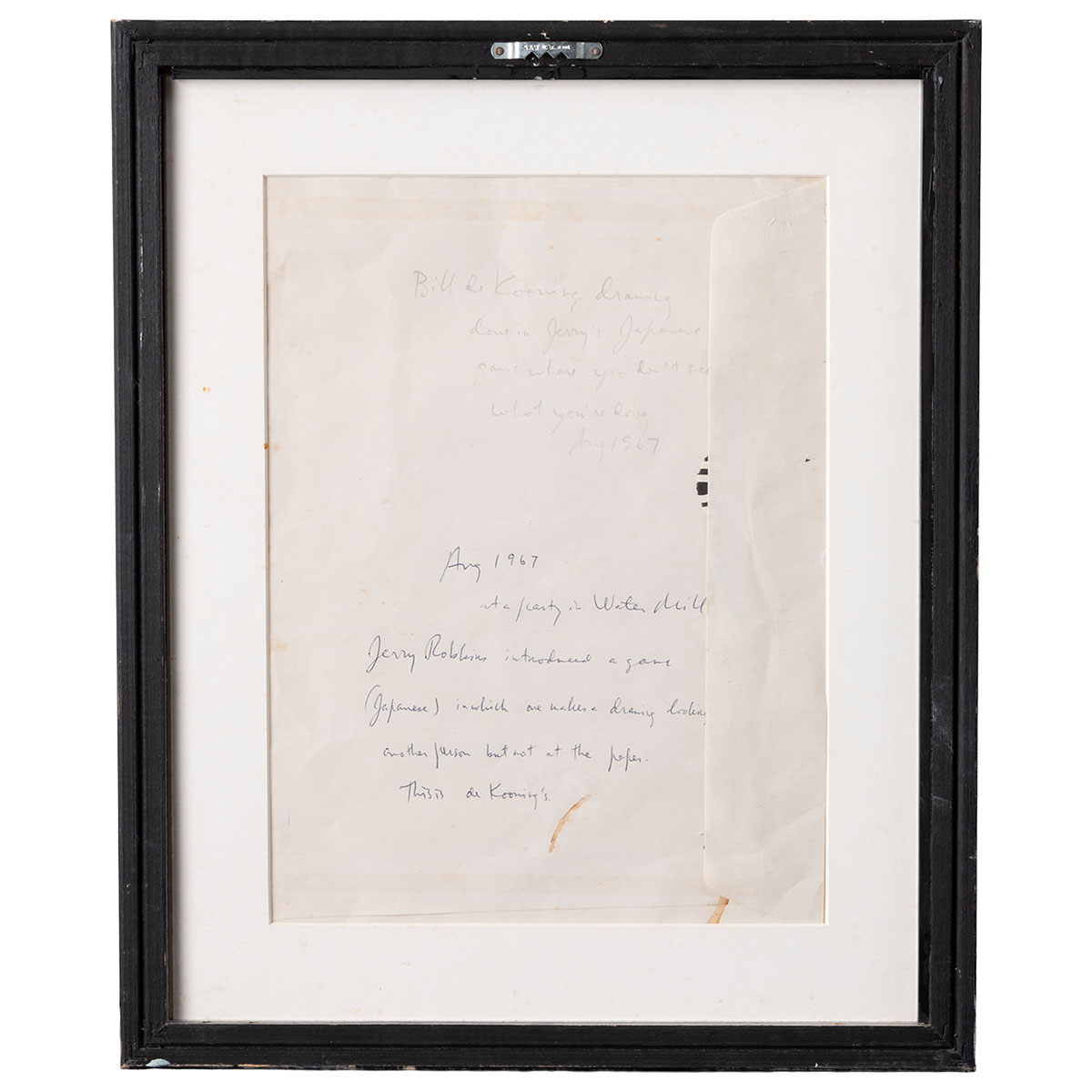 de Kooning sketched this and dedicated it “To Bob and Arthur” whose home at 703 Flying Point Road, Water Mill, NY the game was played on the front porch.