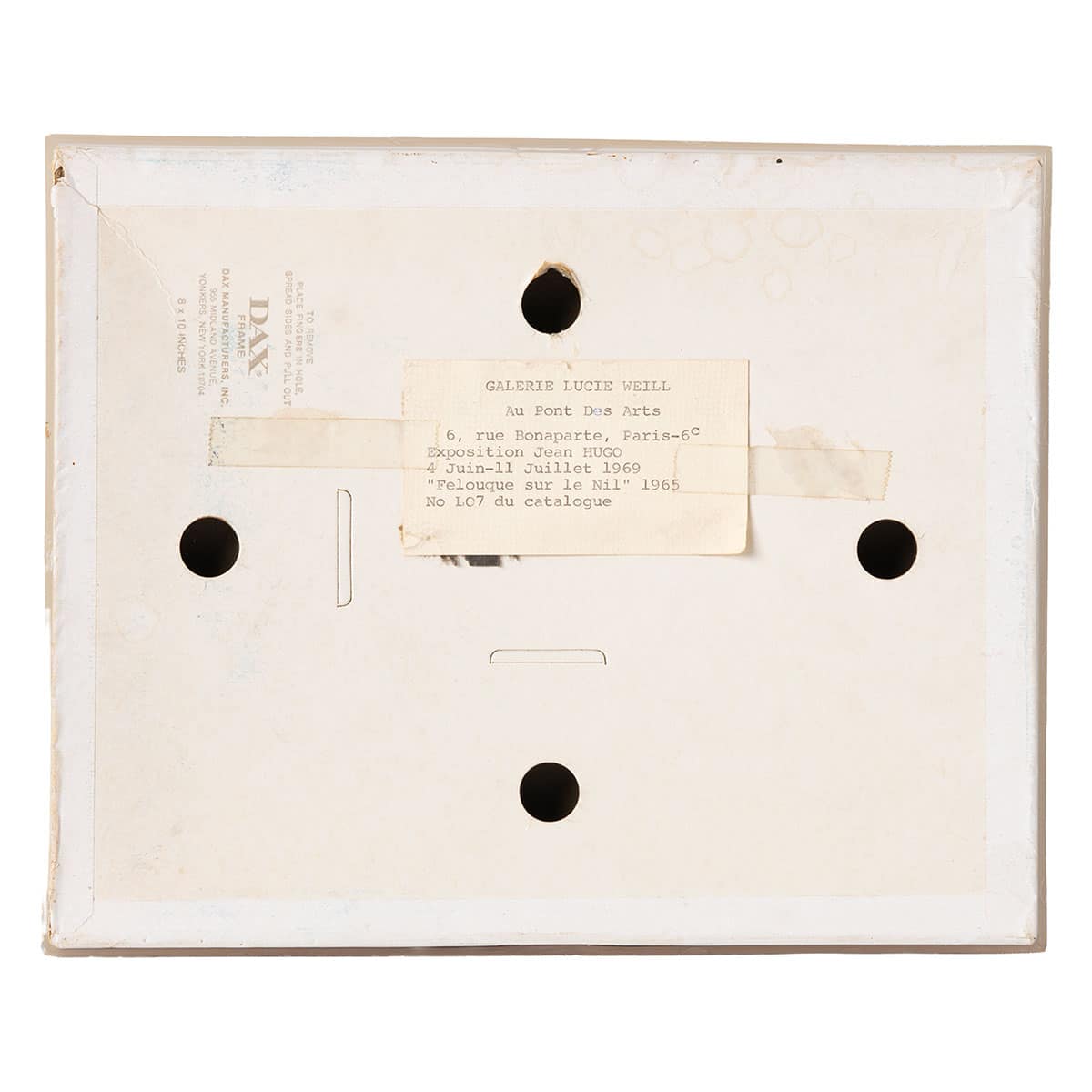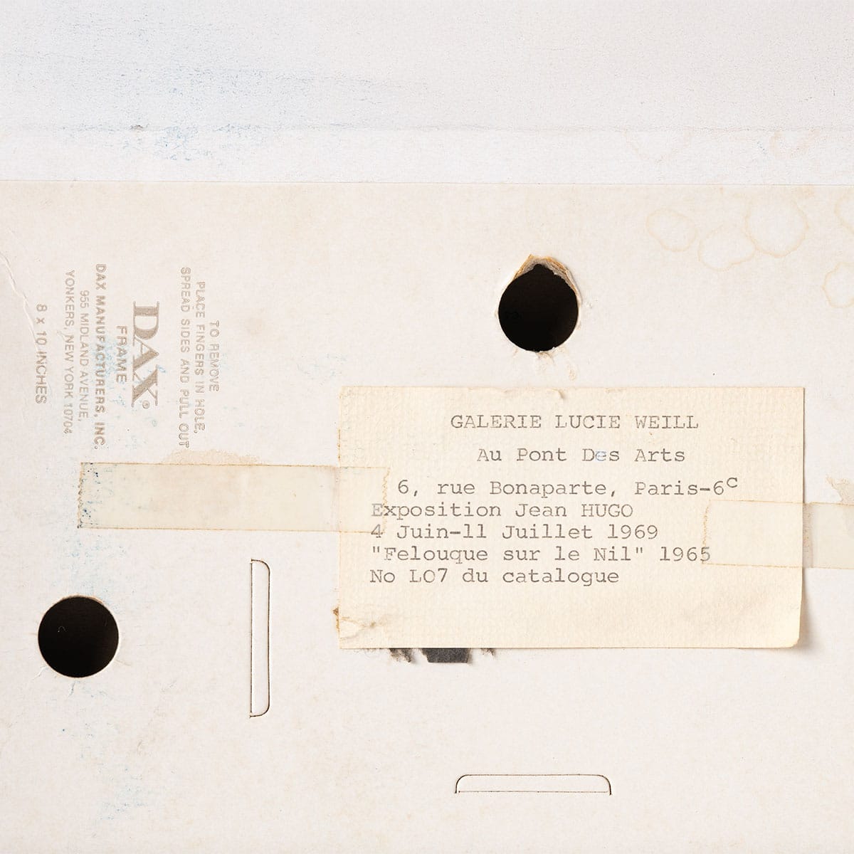 The Original Gallery Exposition Tag is on the back of Frame Dated July 4-11, 1969. From the Estate of Fizdale and Gold who lived at 703 Flying Point Road, Water Mill, NY.