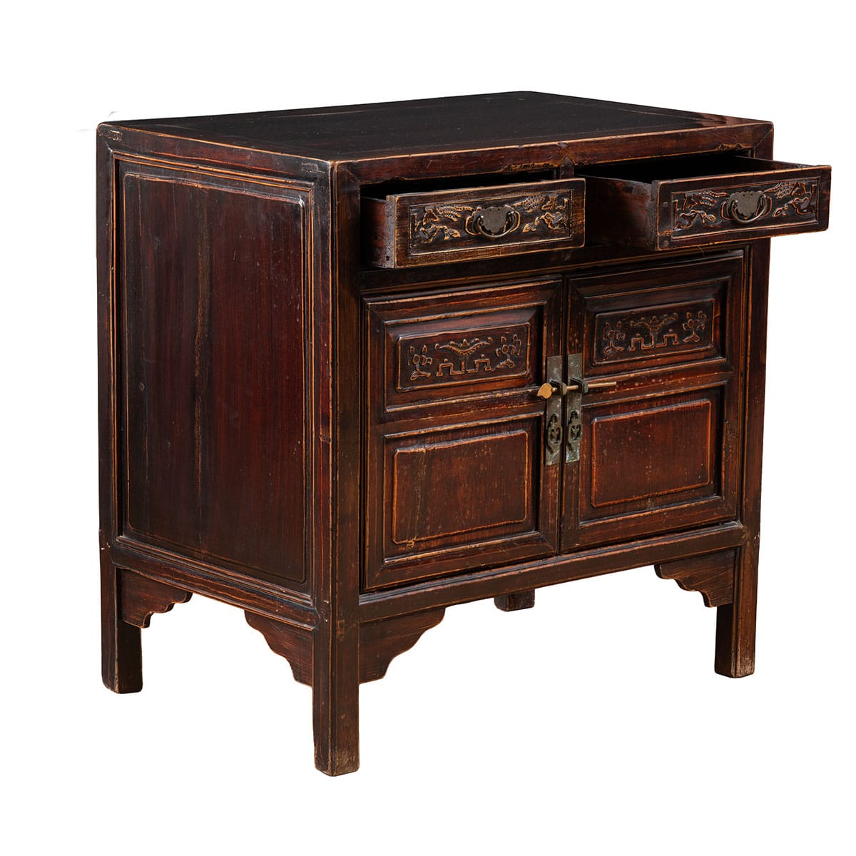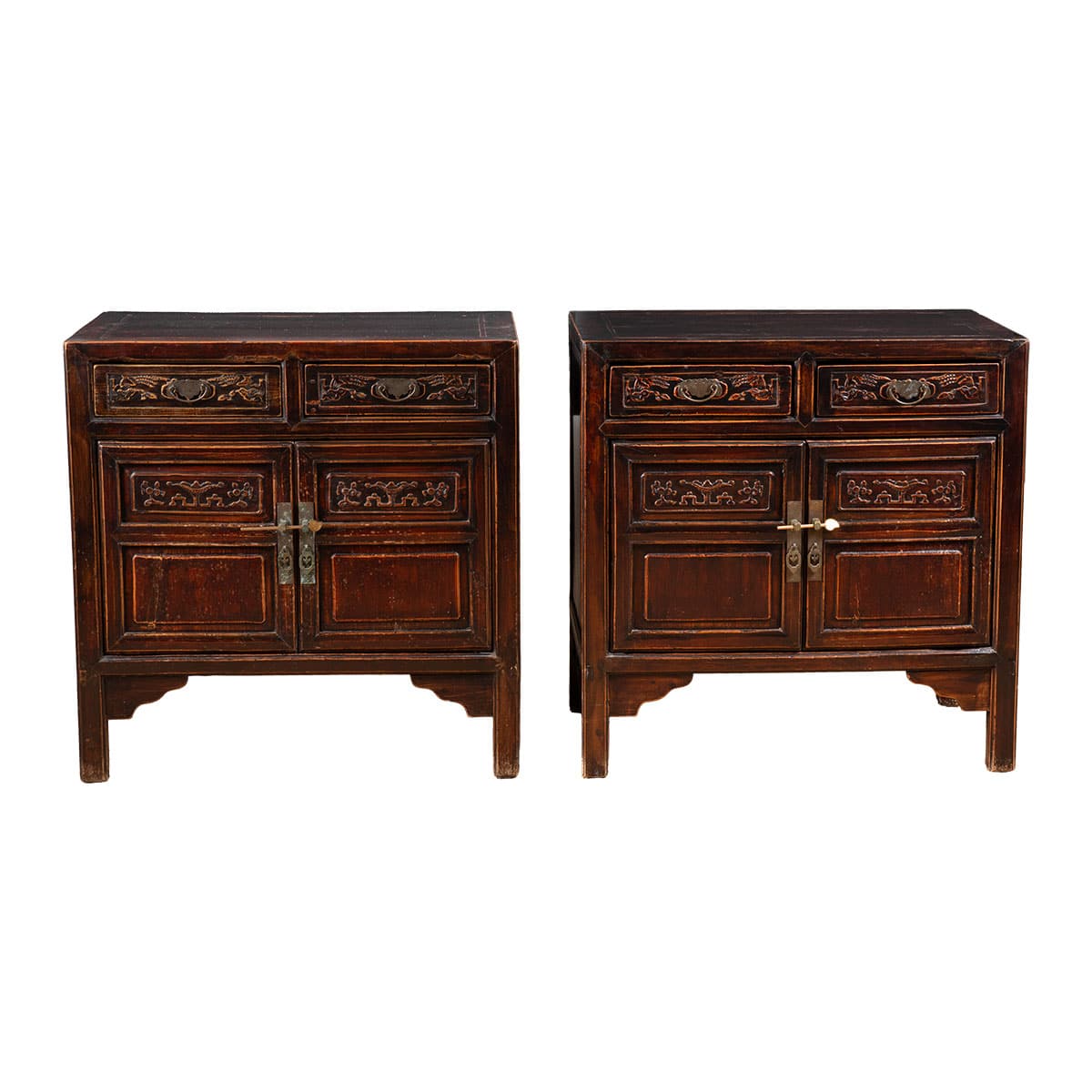 Pair of Vintage Chinese Mid-Century Elm Bedside
