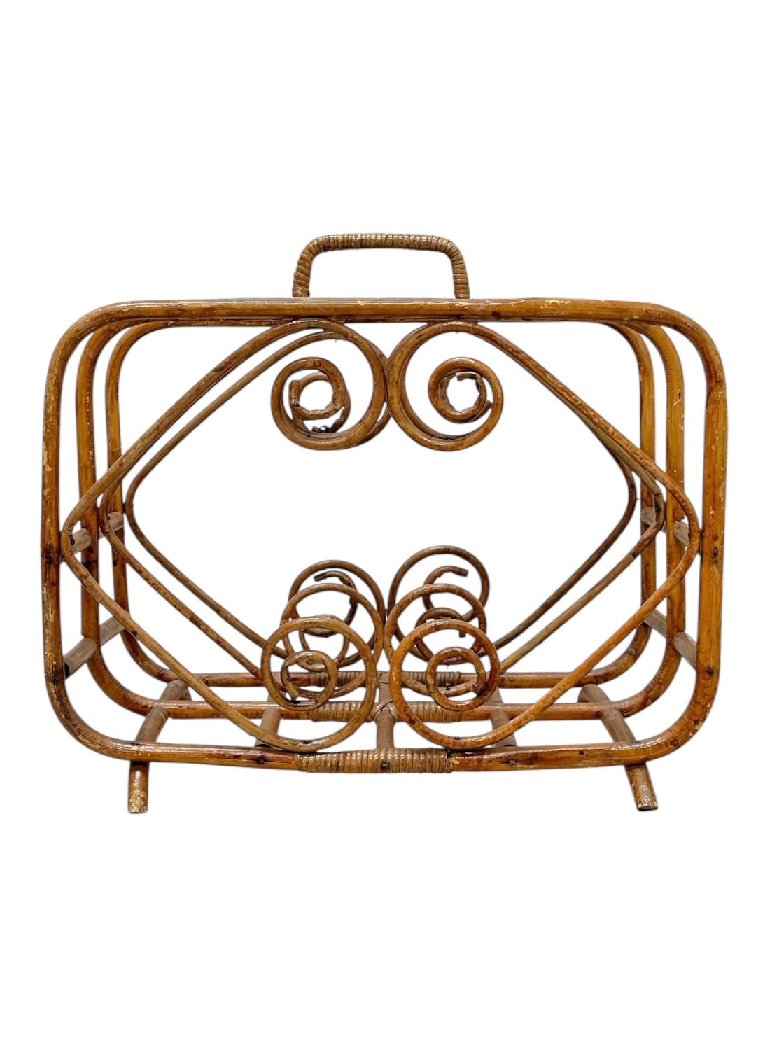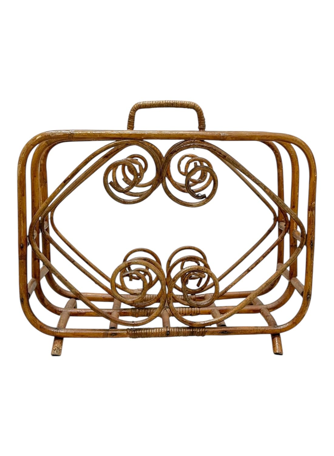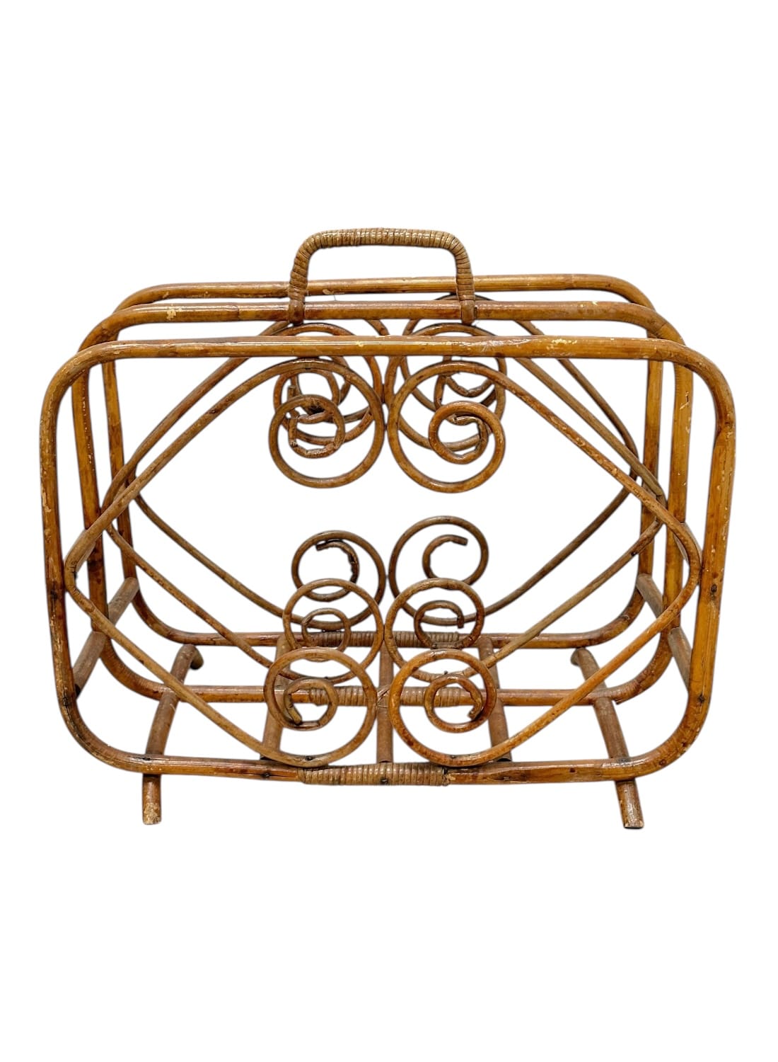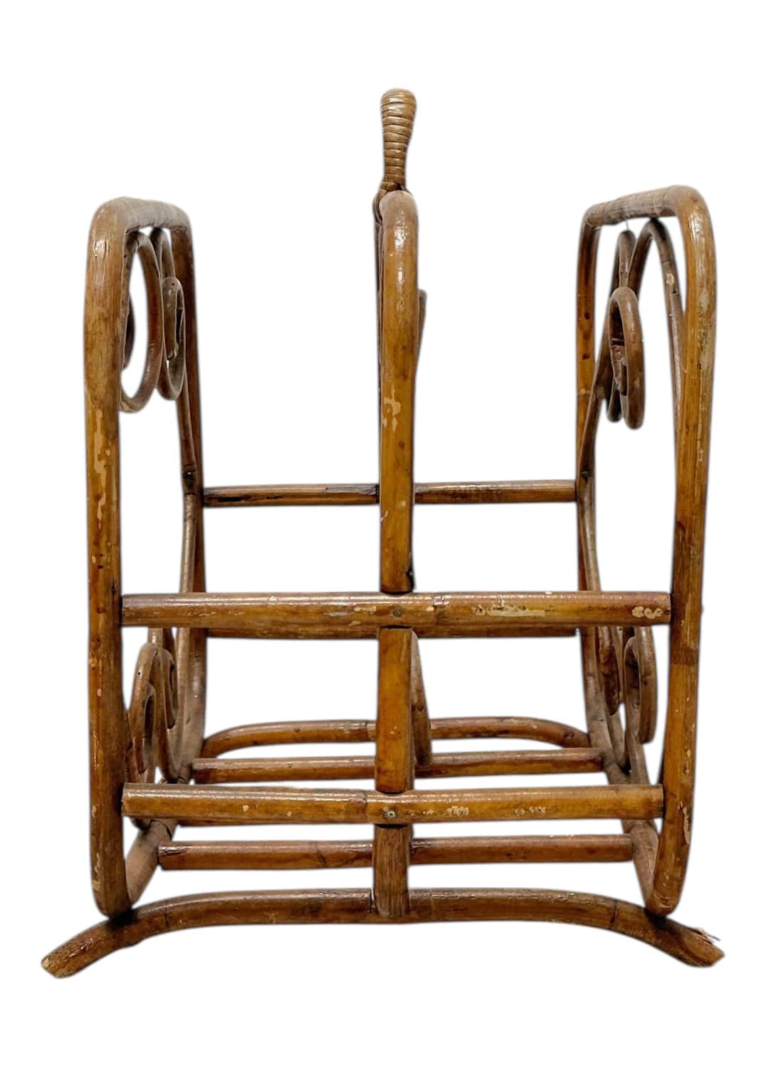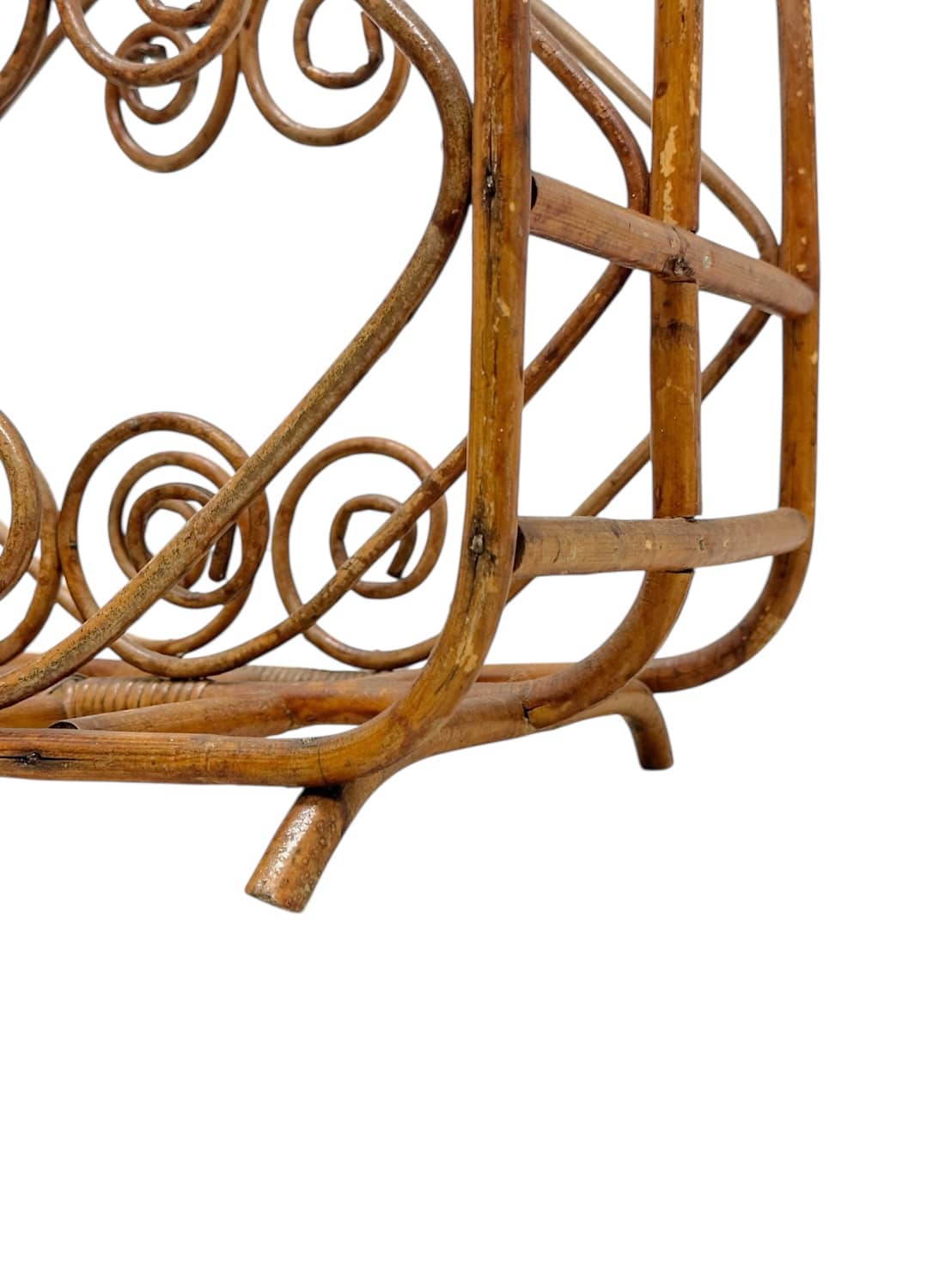 Vintage Bamboo Magazine Rack with Swirl Rattan Details