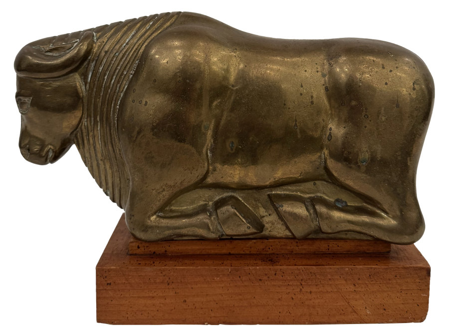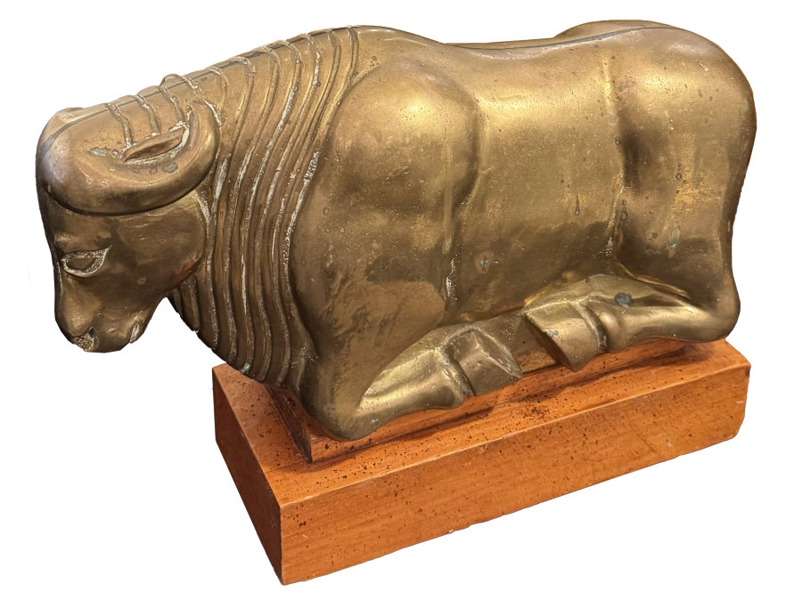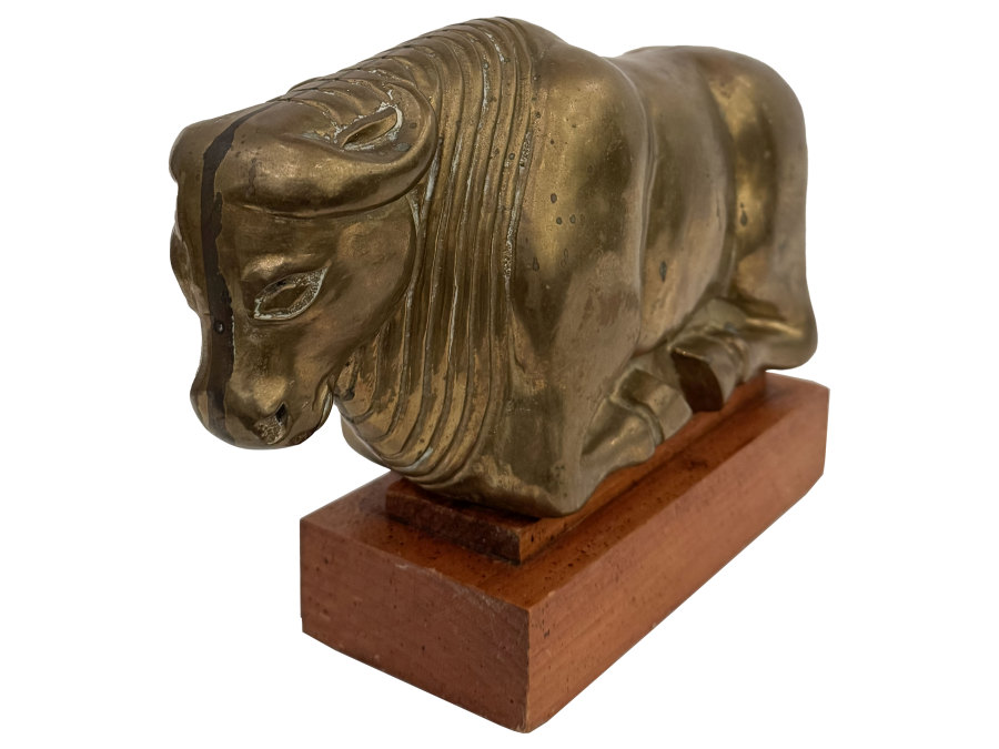 Vintage Brass and Wood Bull Statue