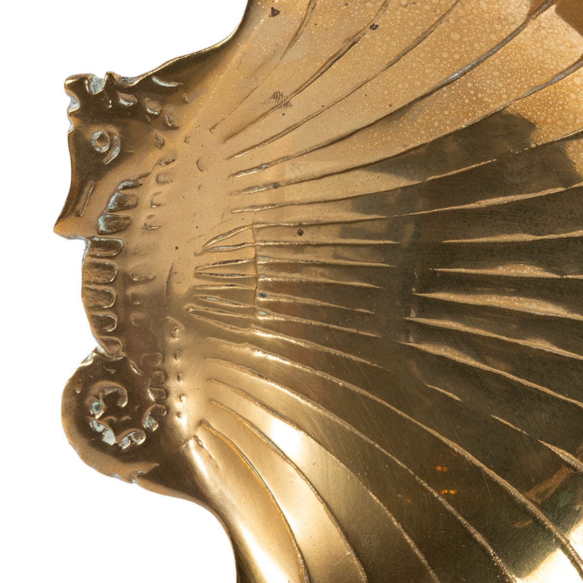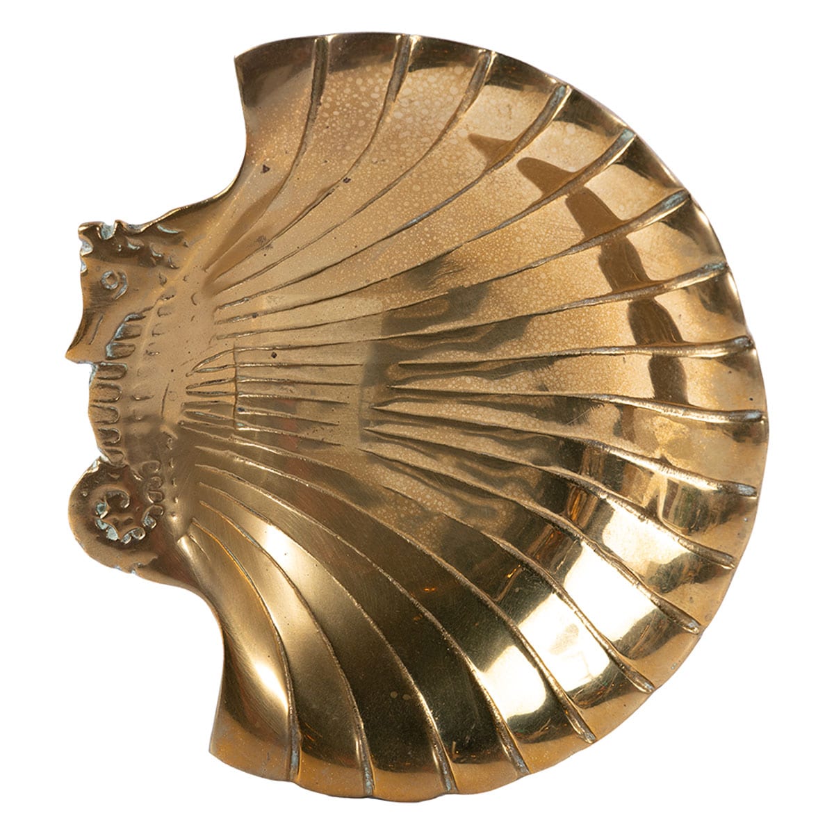 Exceptional Vintage Brass Clam Shell Bowl with Seahorse Handle