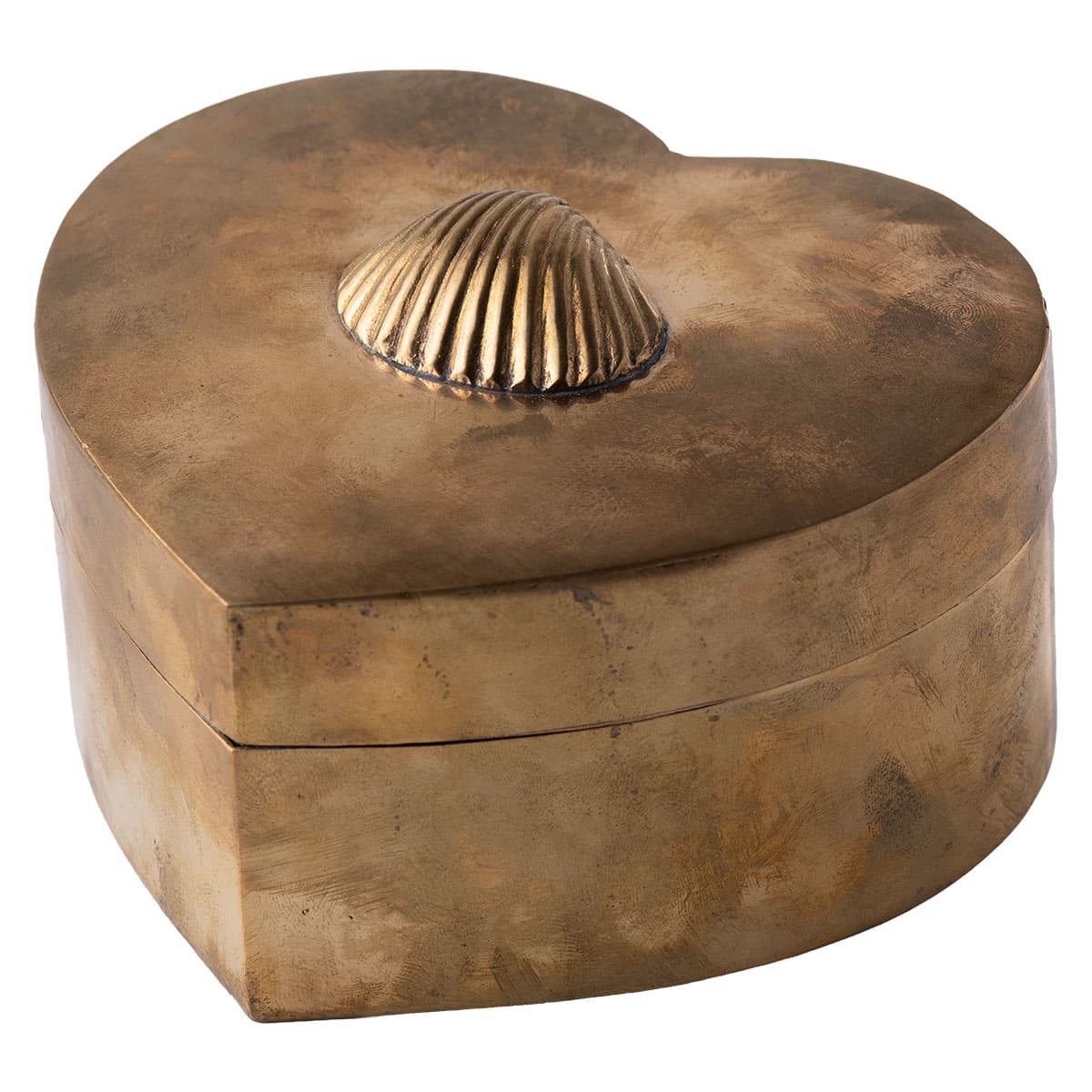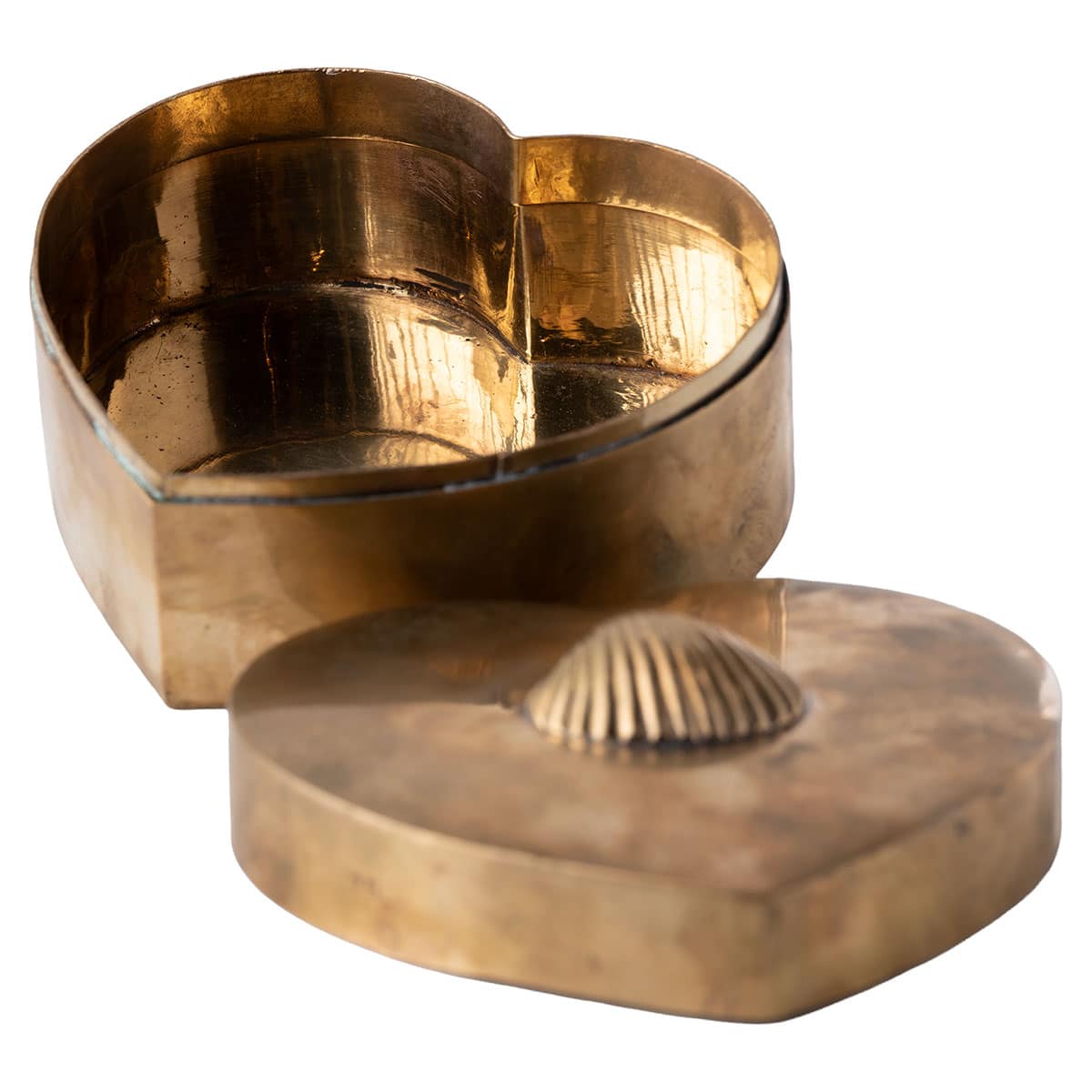 Vintage Brass Heart Box with Shell Decor
