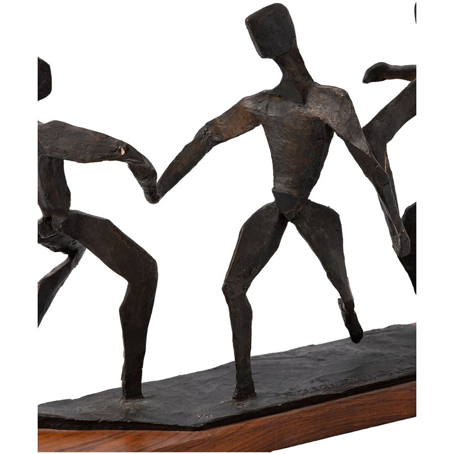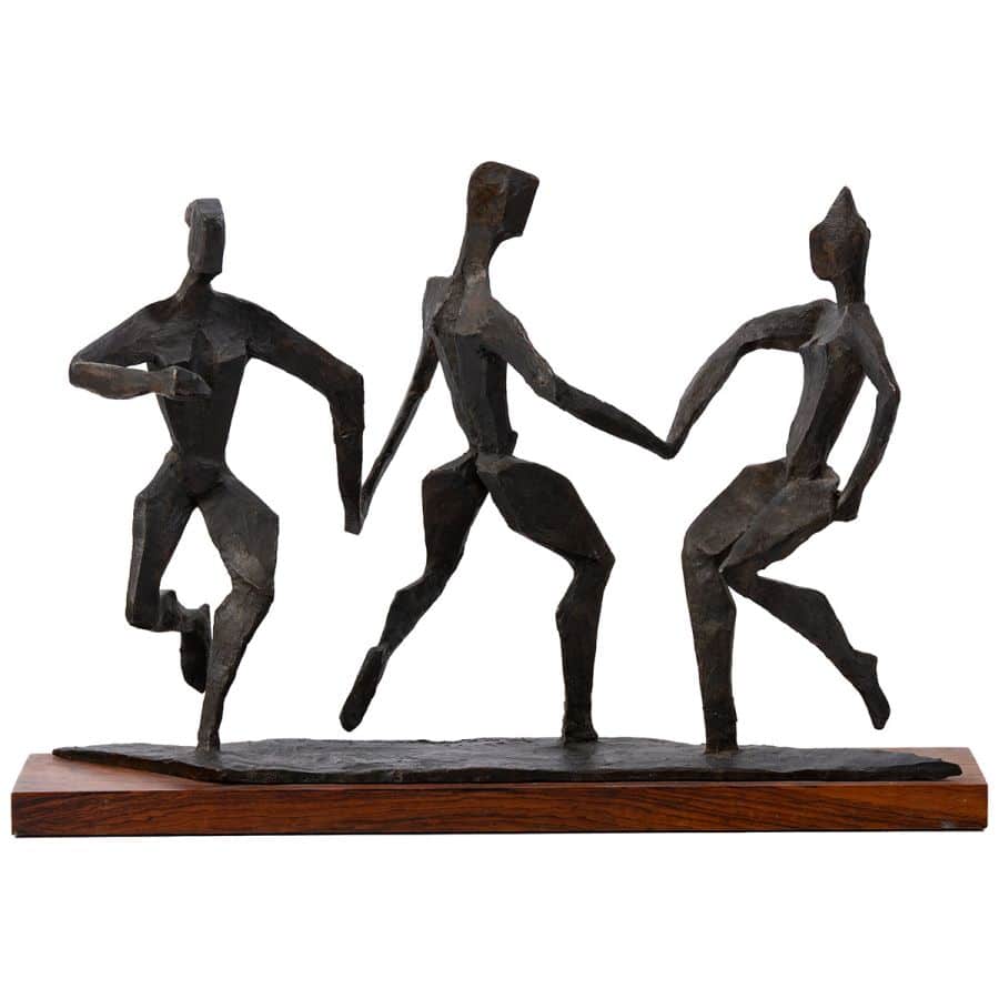 Vintage Bronze Sculpture of Three Stylized Modern Dancers on Wood Base