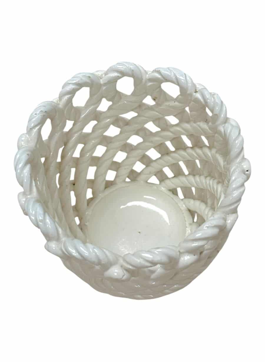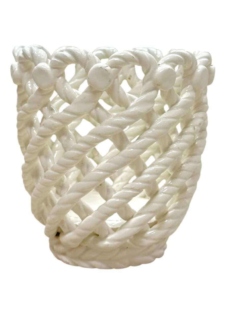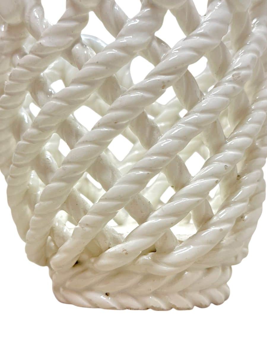 Vintage Handmade White Woven Ceramic Rope Cachepot