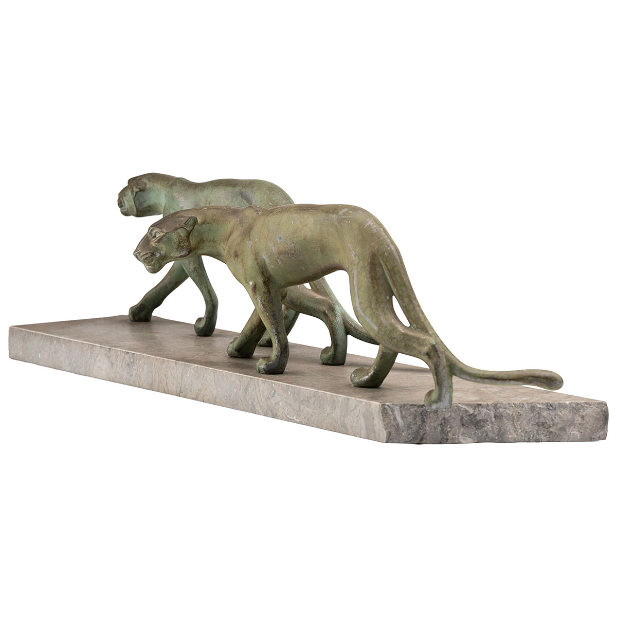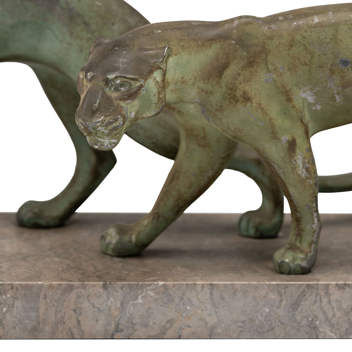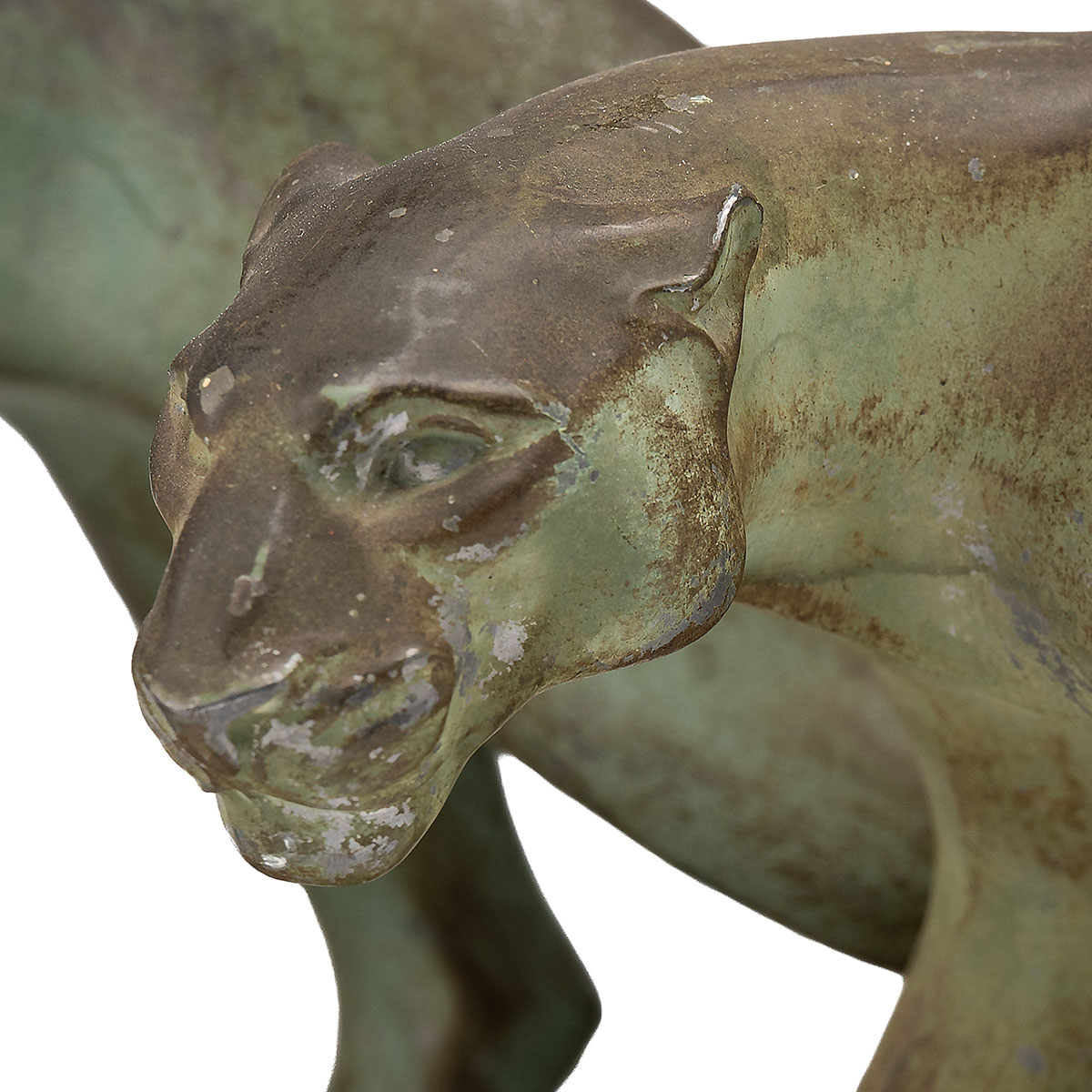 Exceptional Vintage French Verdigris Iron Pair of Panthers