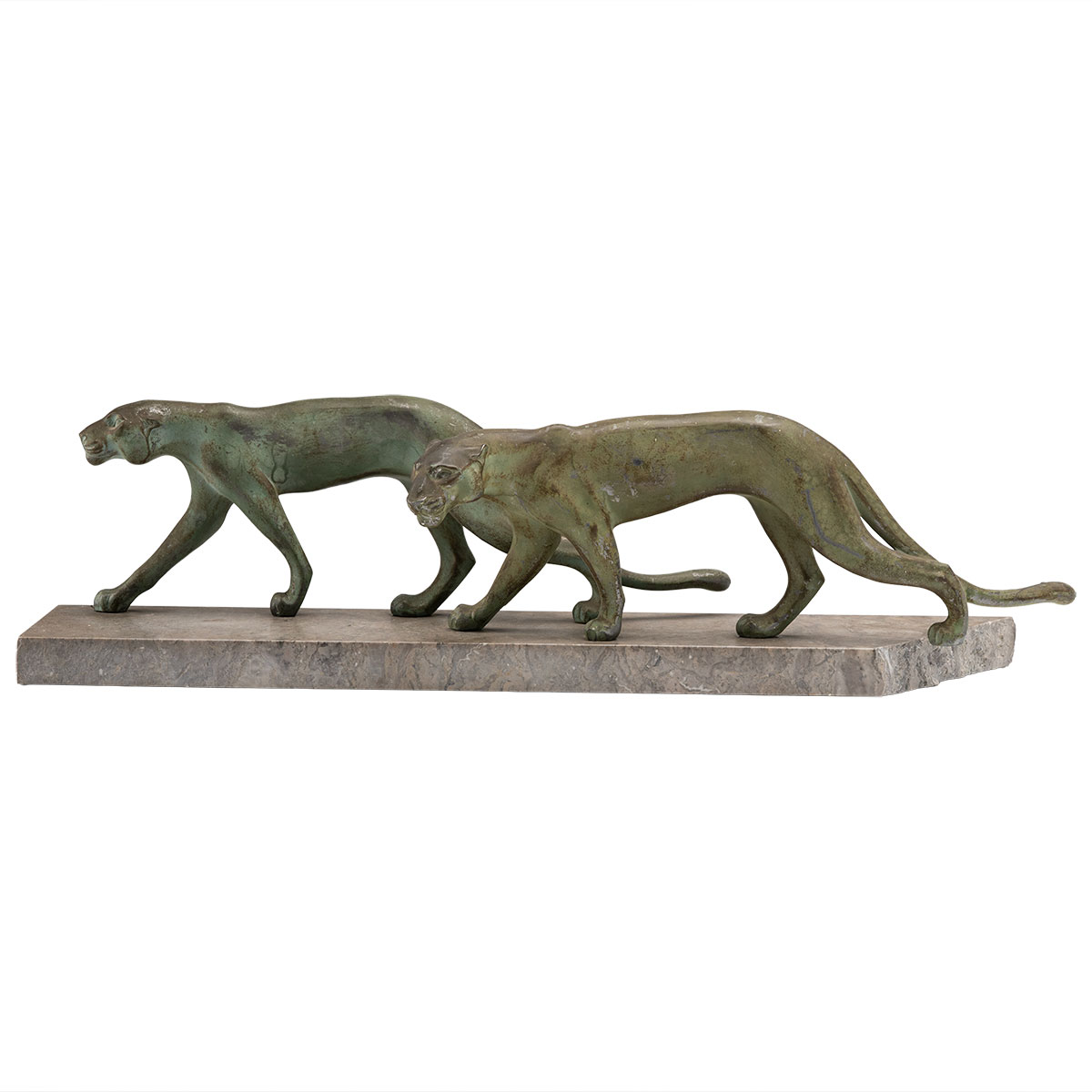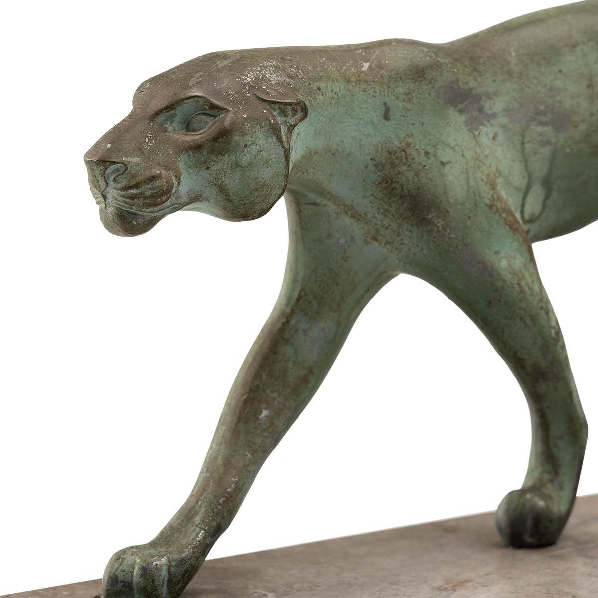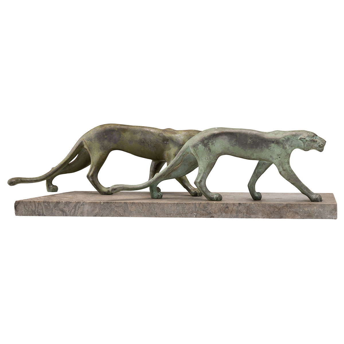 Exceptional Vintage French Verdigris Iron Pair of Panthers