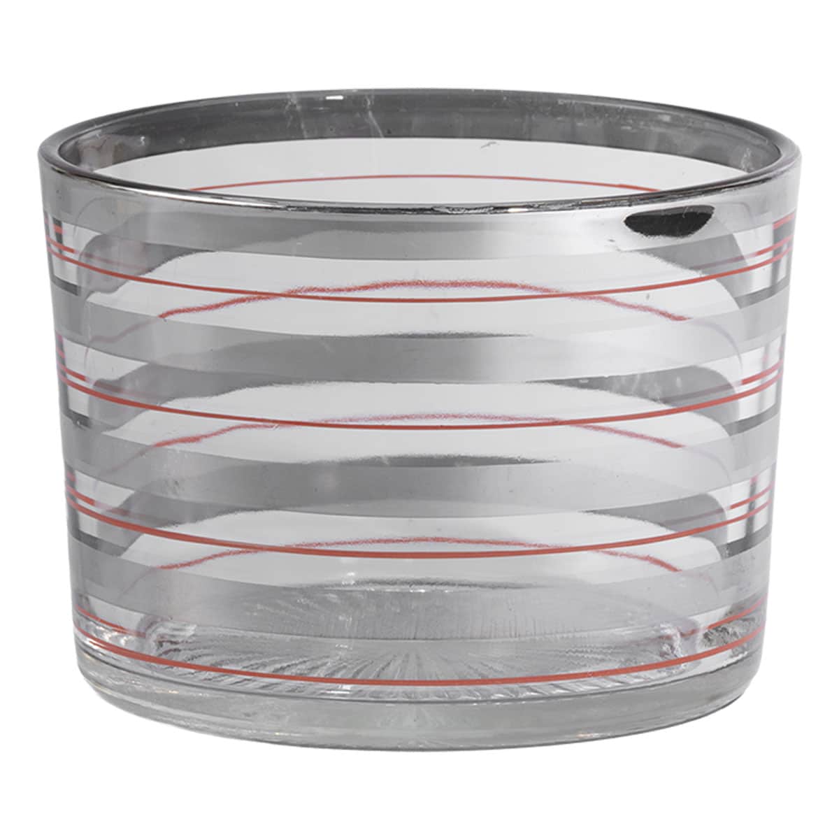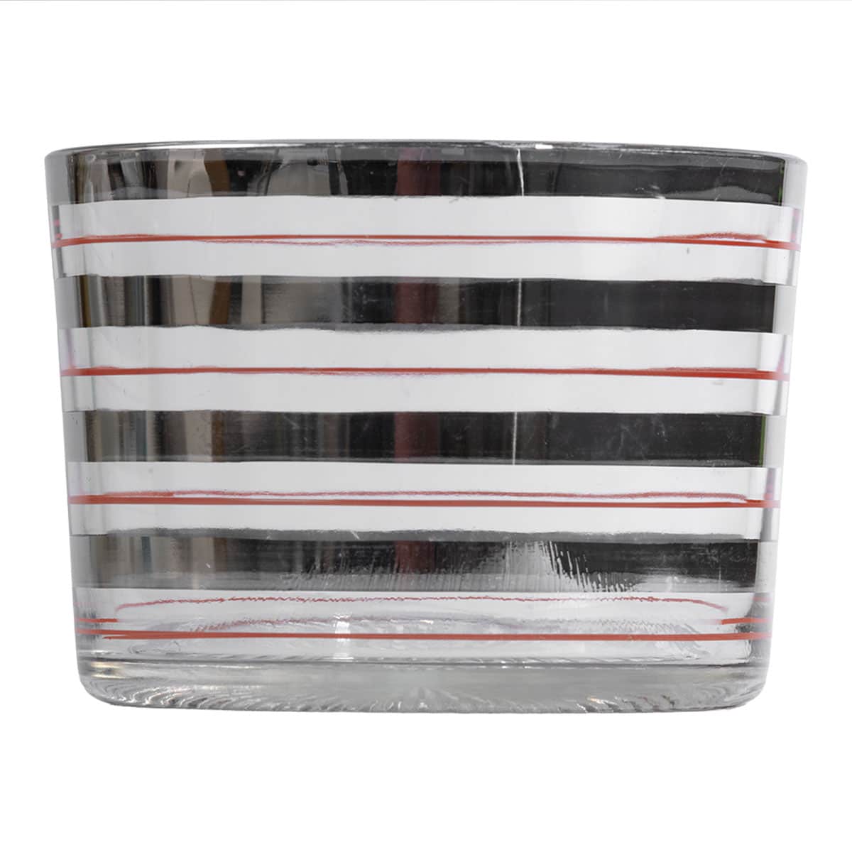 Round Low Vintage Silver Stripped Glass Ice Bucket