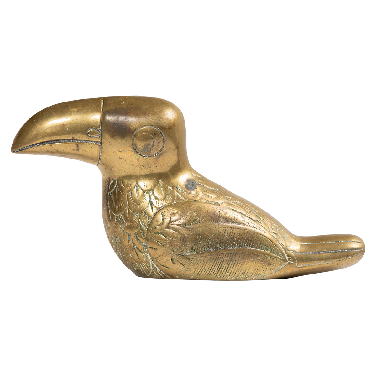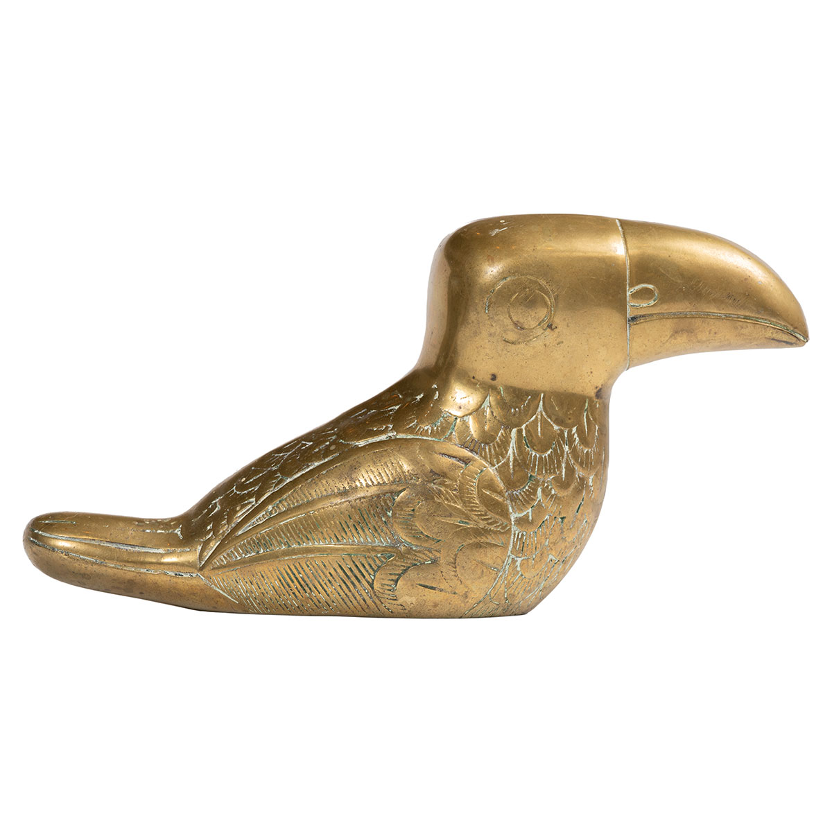 Vintage Heavy Brass Toucan Bird with Aged Patina