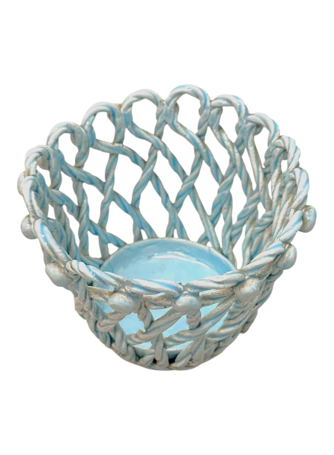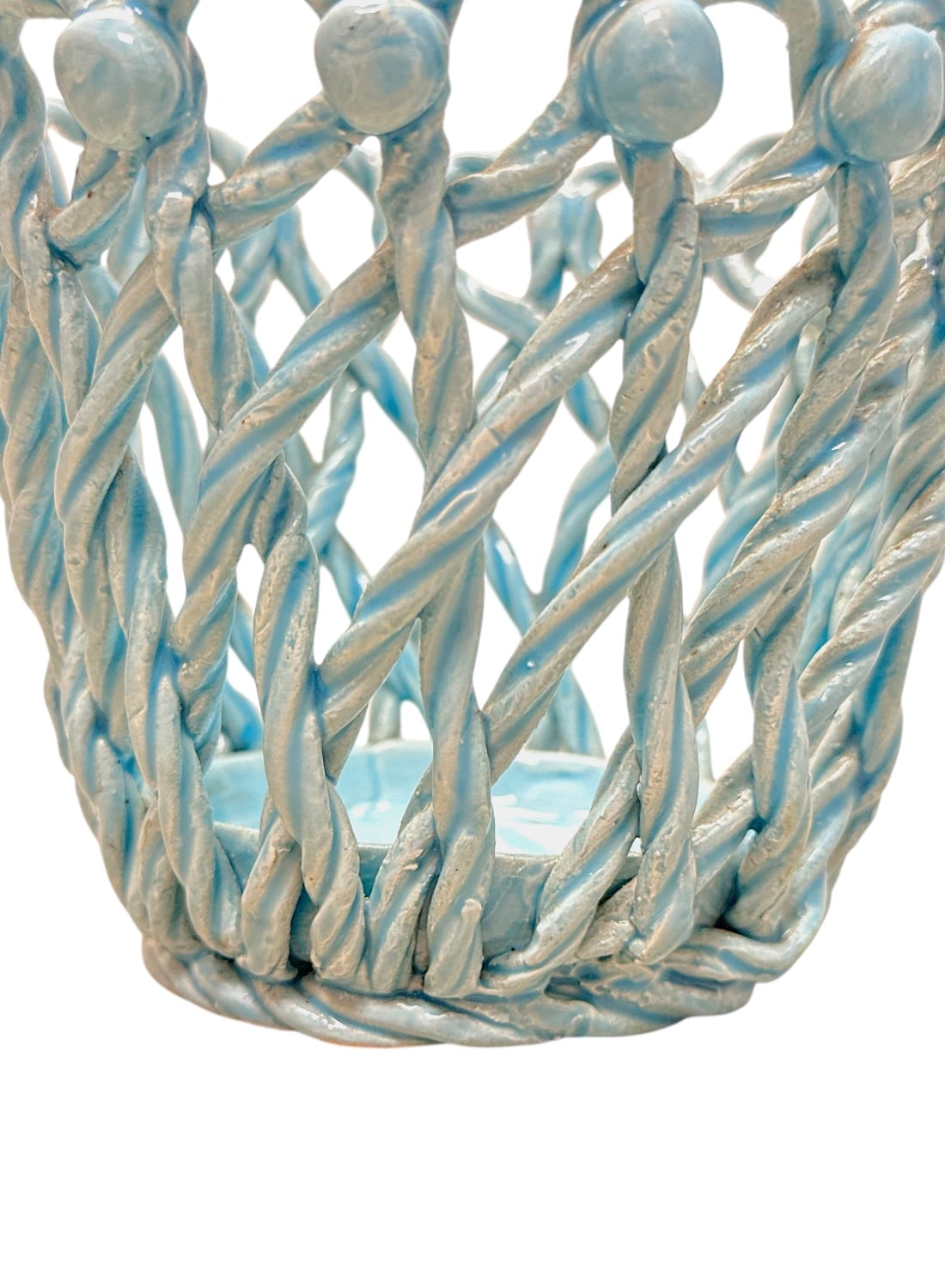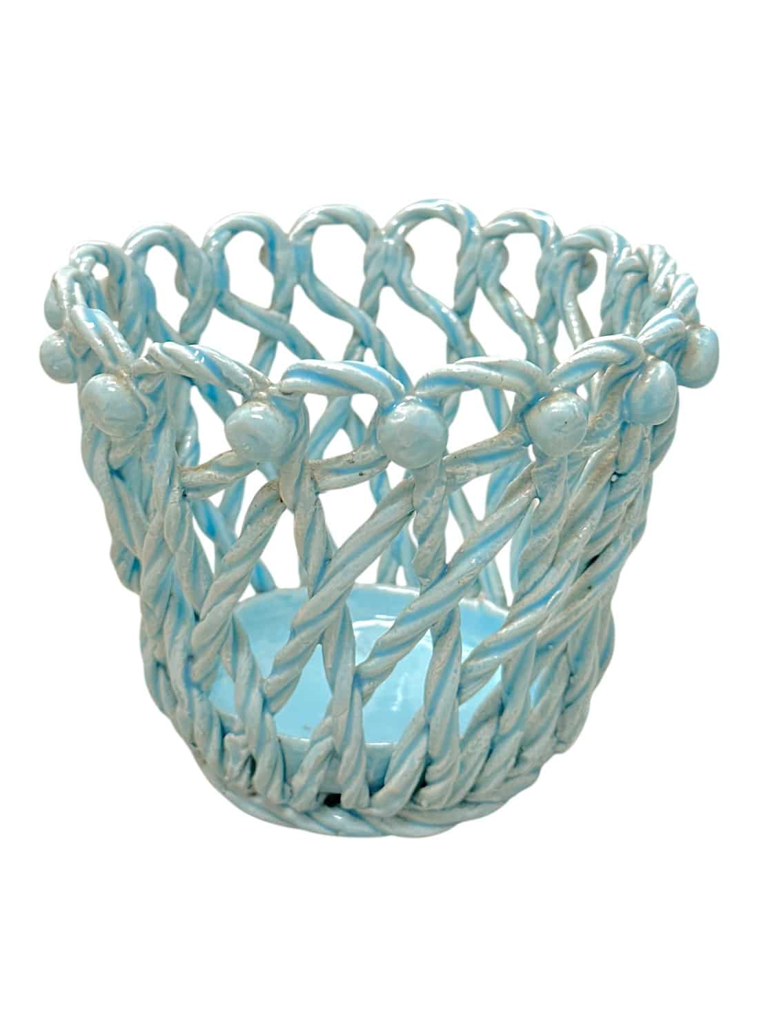 Vintage Handmade Blue Woven Porcelain Cachepot