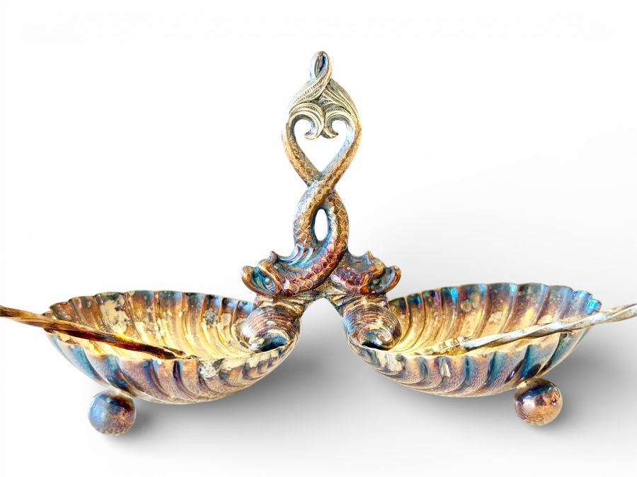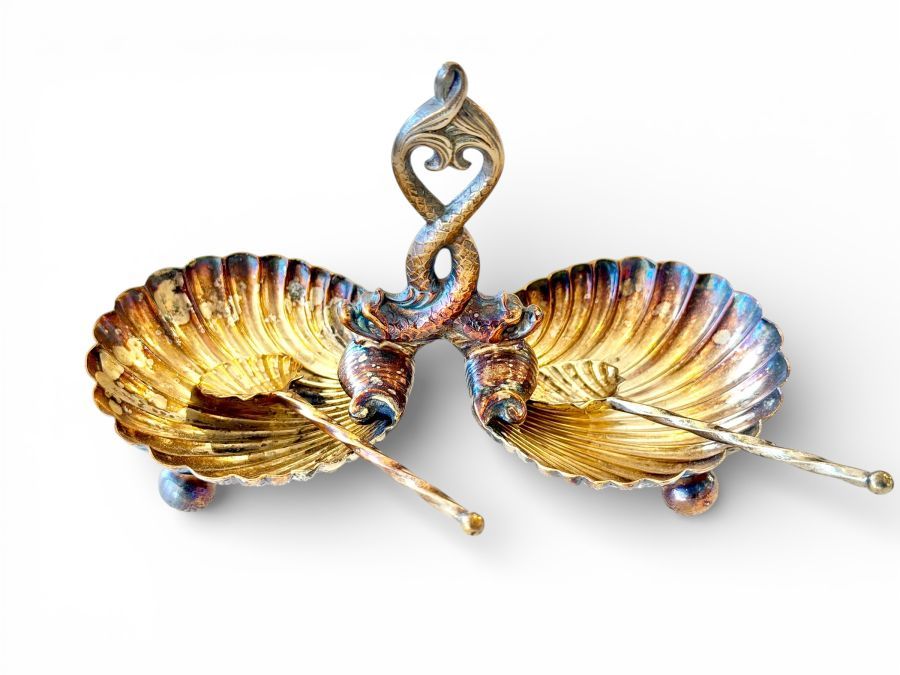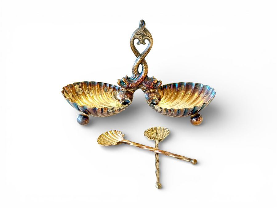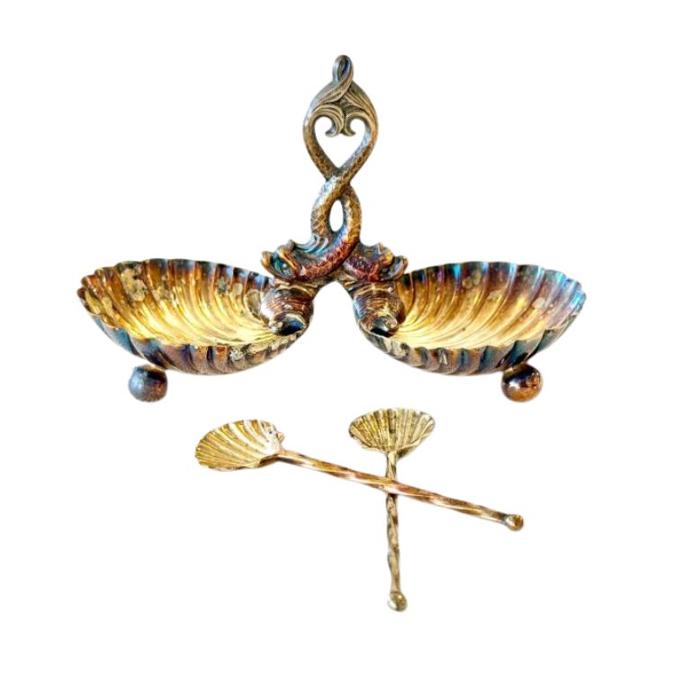 Vintage Silver Shell Salt Trays with Pair of Salt Spoons