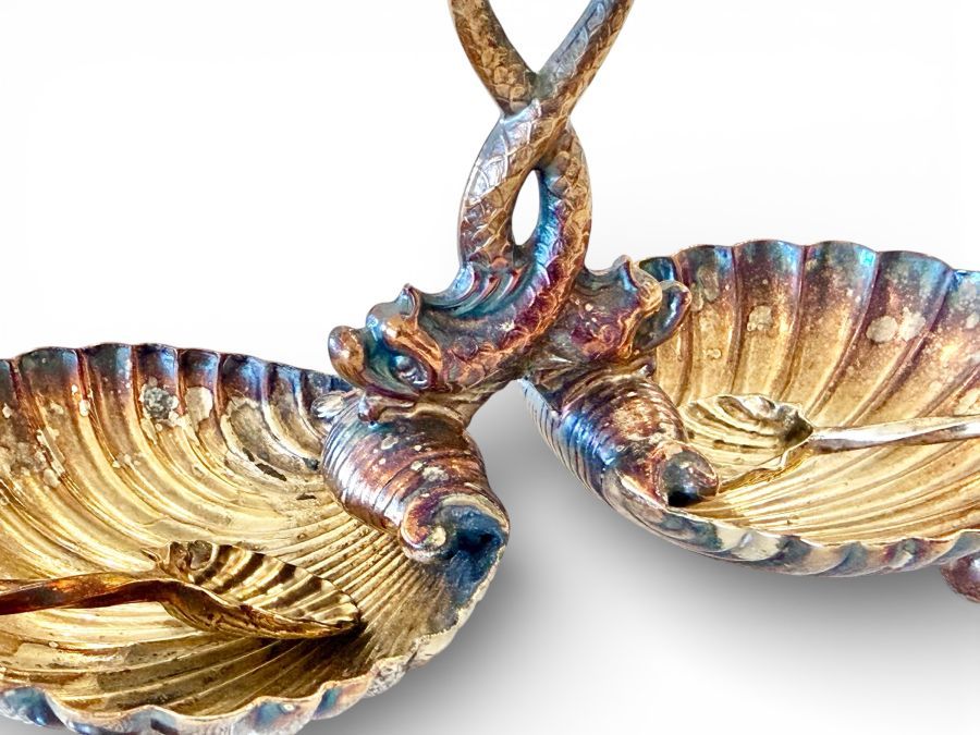 Vintage Silver Shell Salt Trays with Salt Spoons