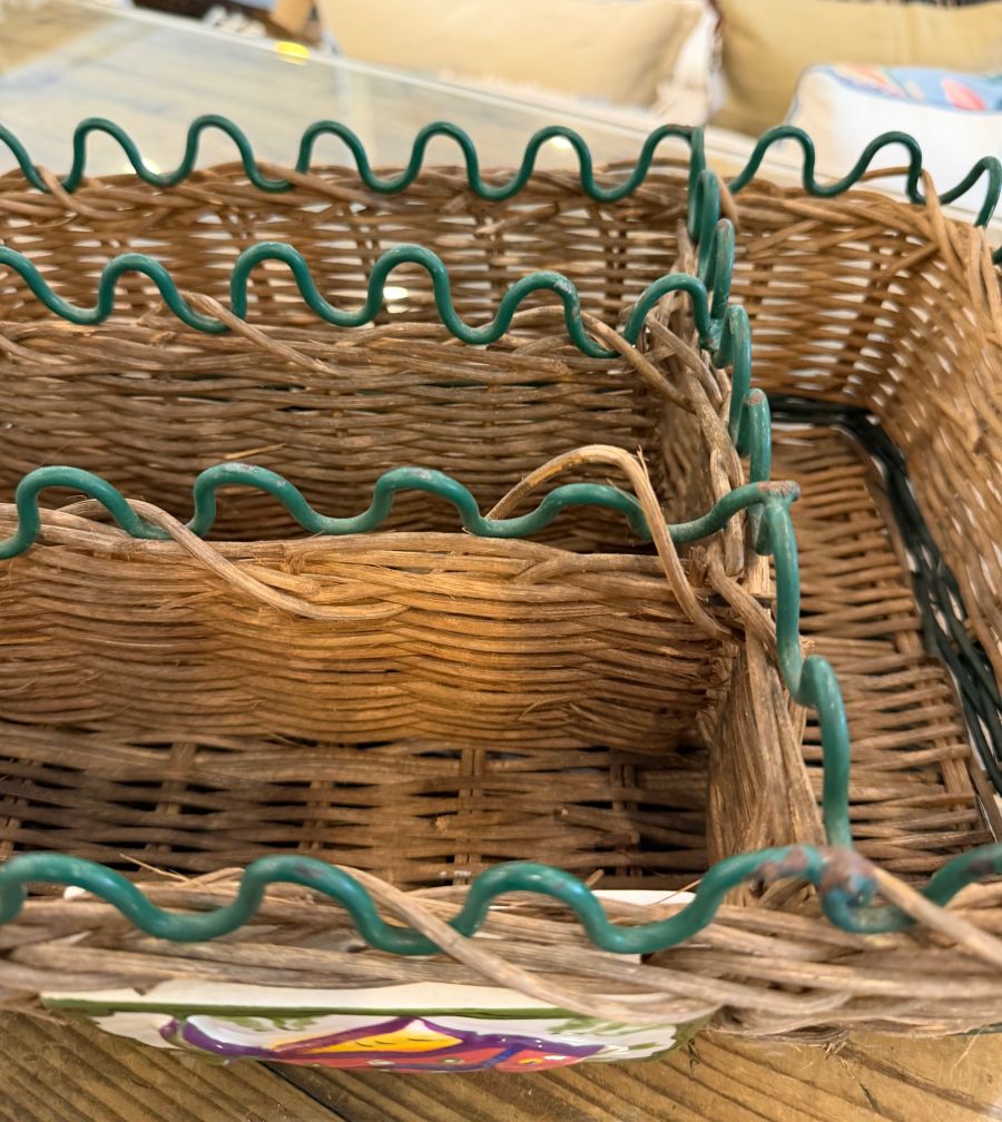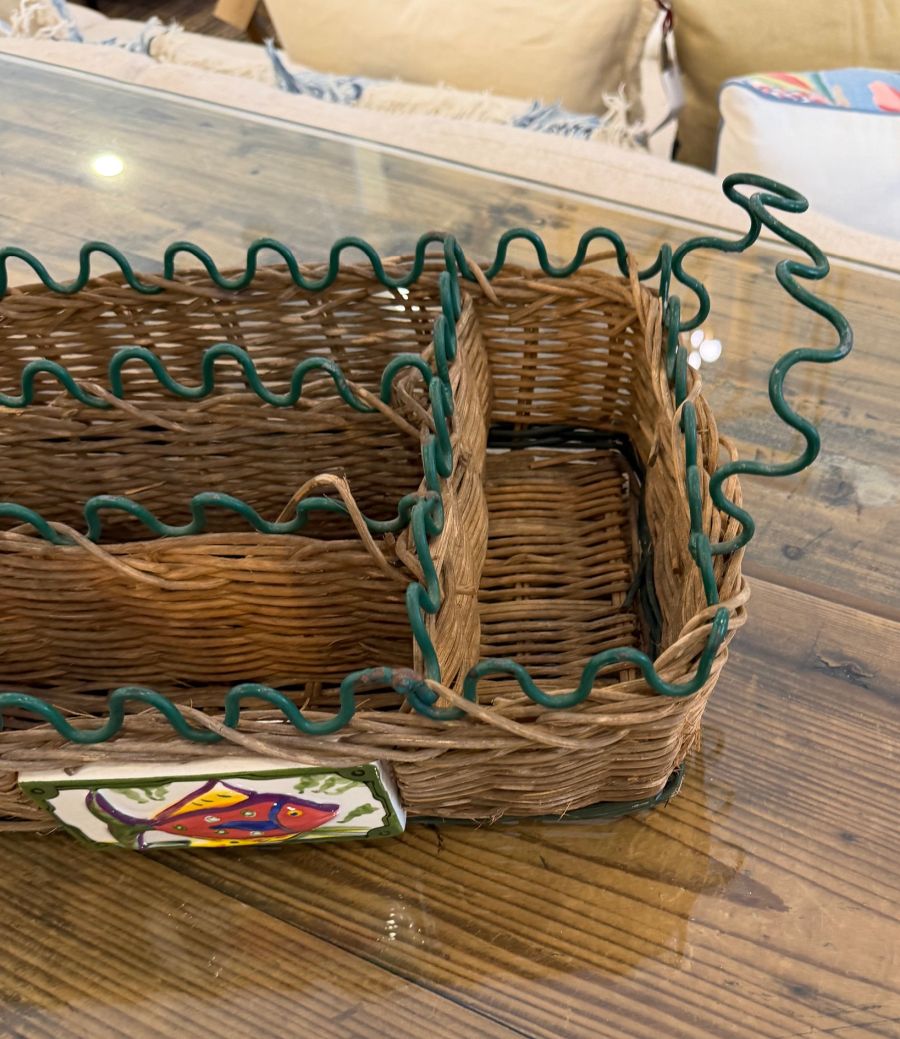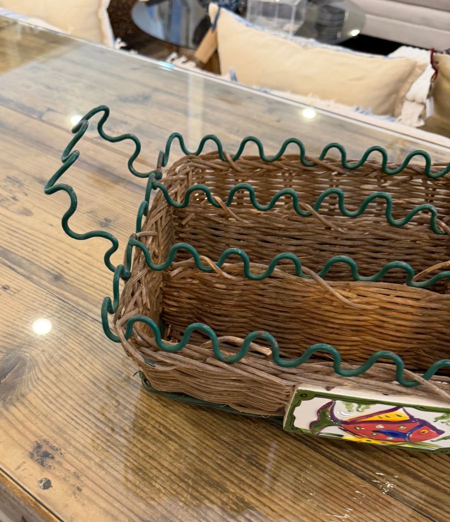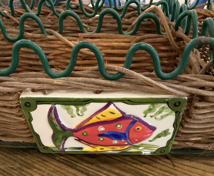 with Fish Ceramic Decorative Detail with Green Wire Handles