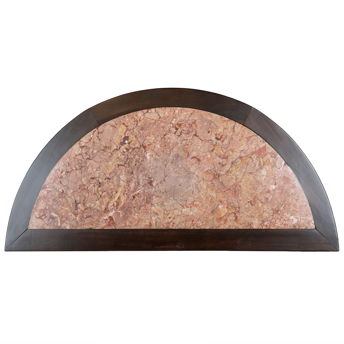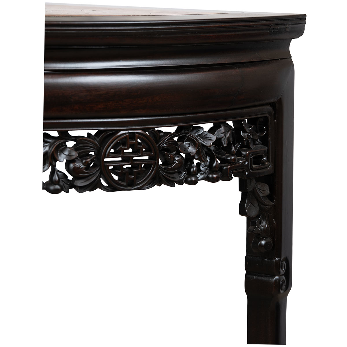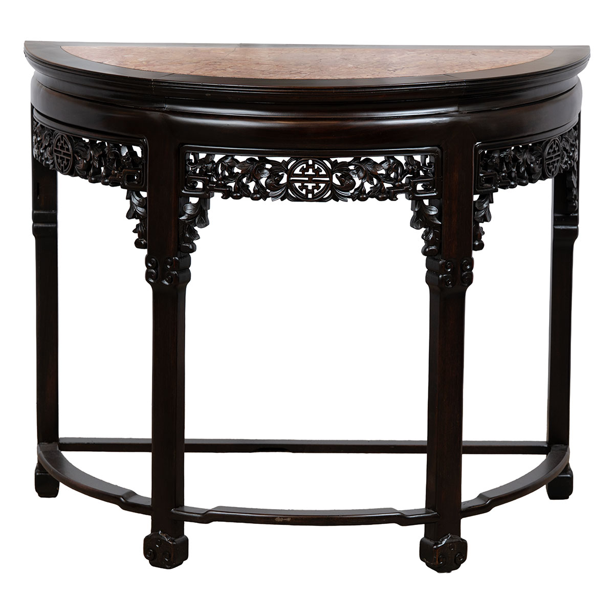 Vintage Chinese Hardwood and Rose Marble Carved Demilune
