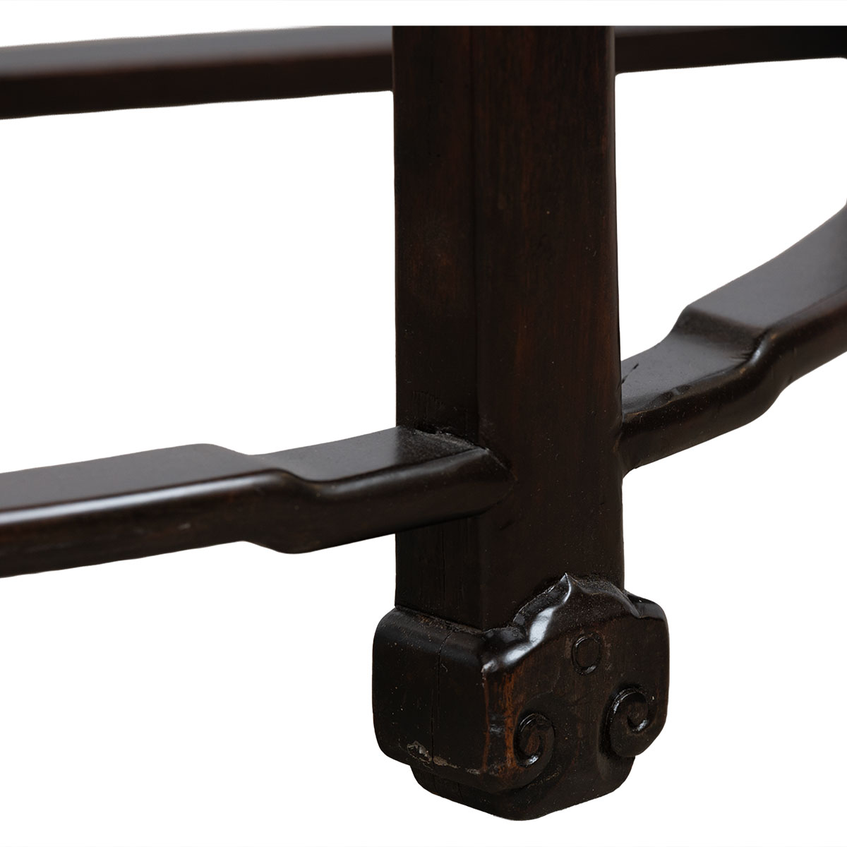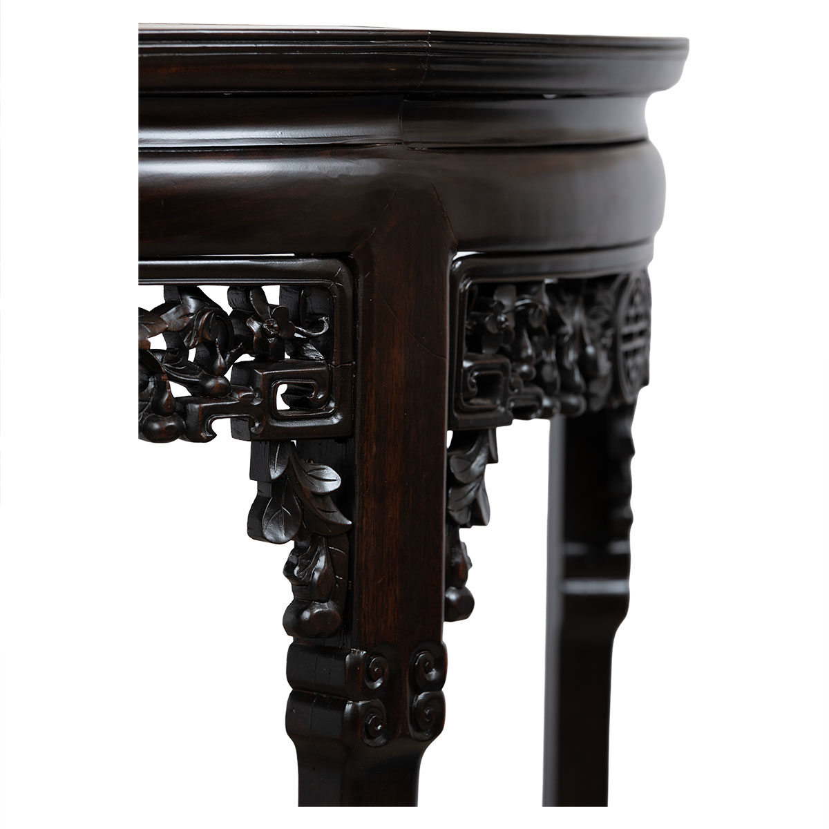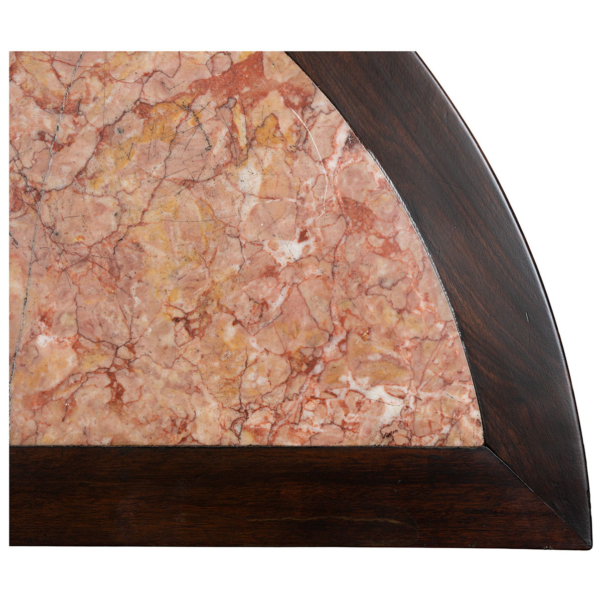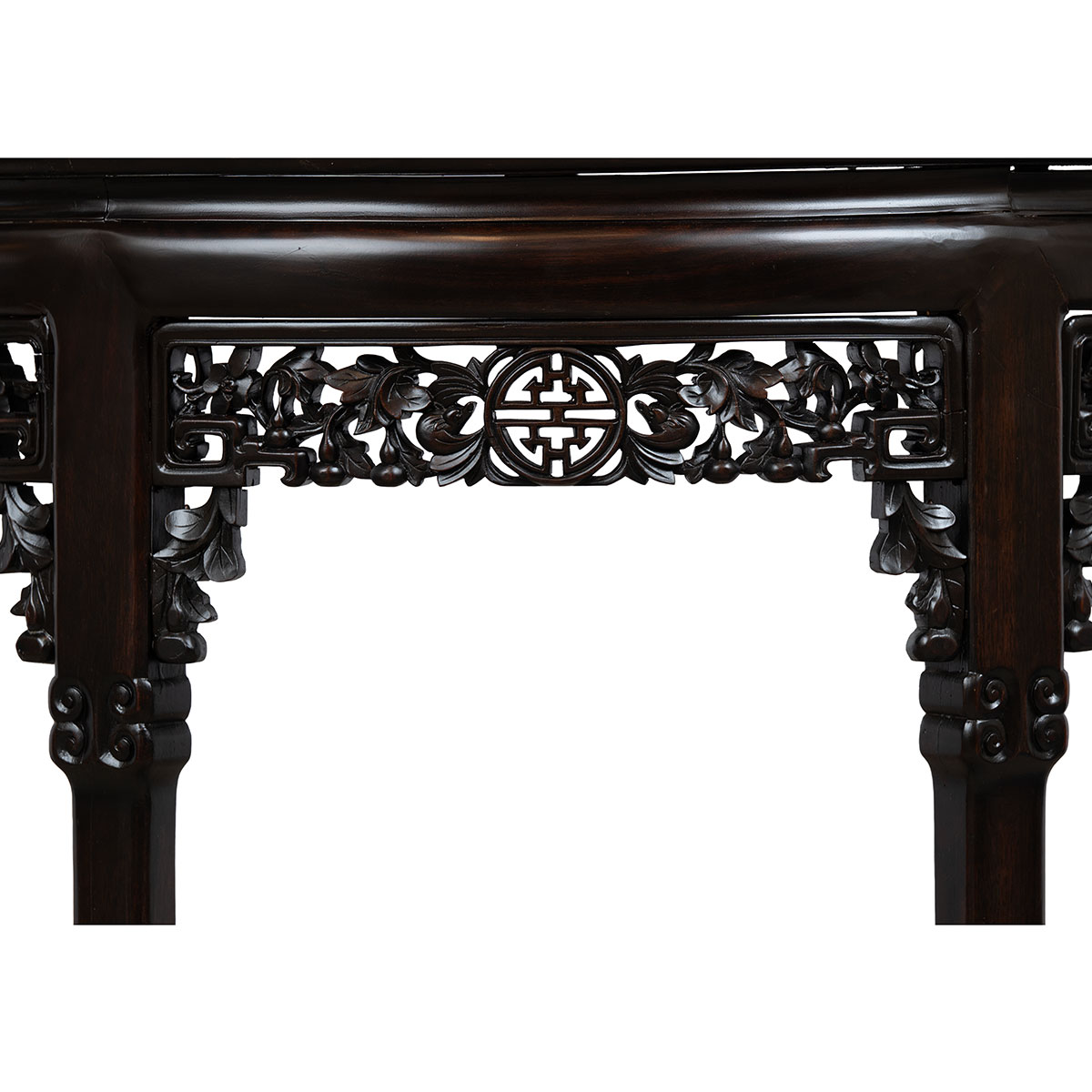 Vintage Chinese Hardwood and Rose Marble Carved Demilune