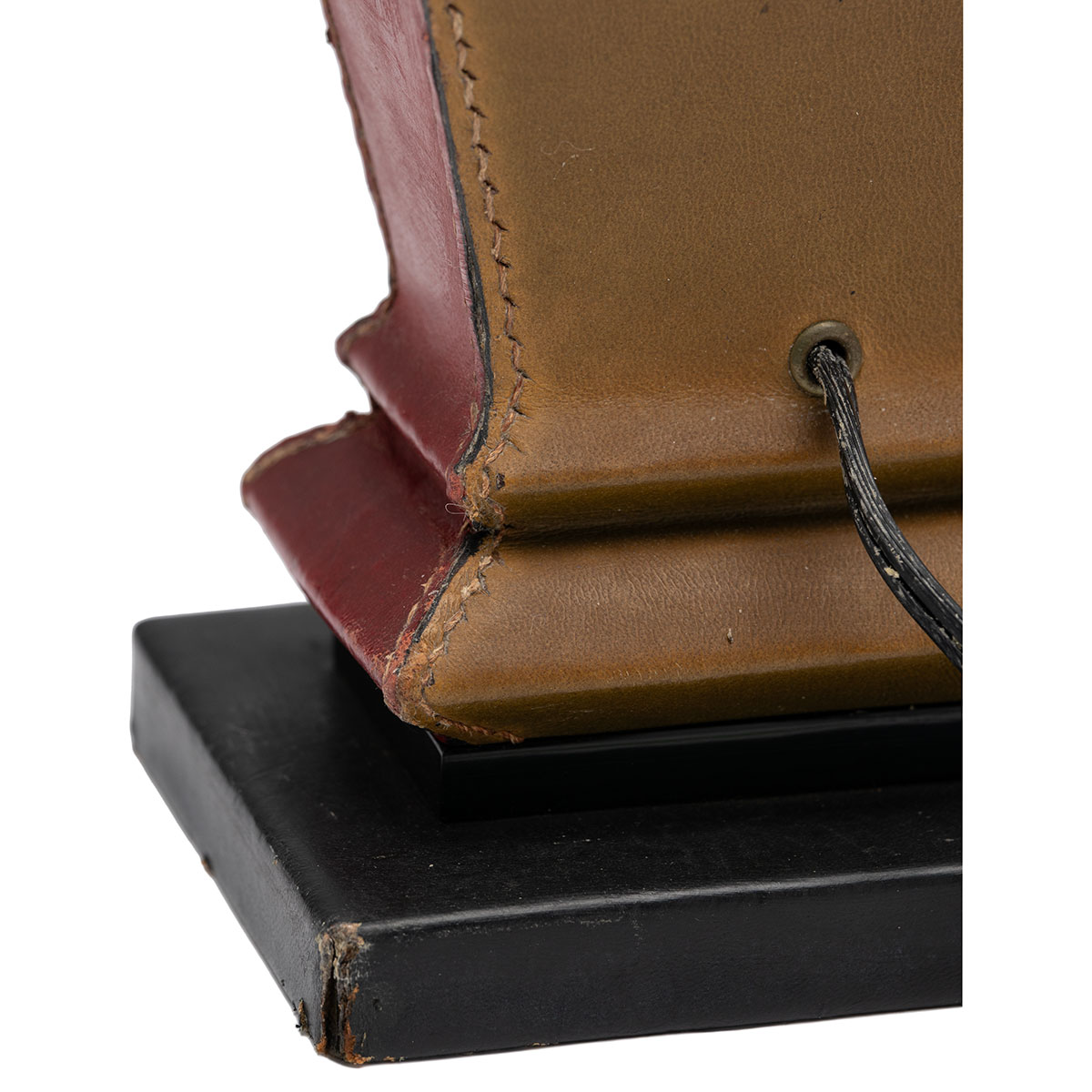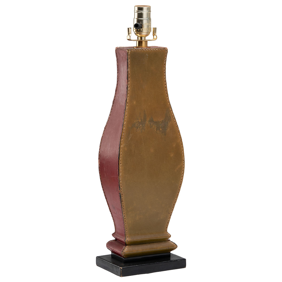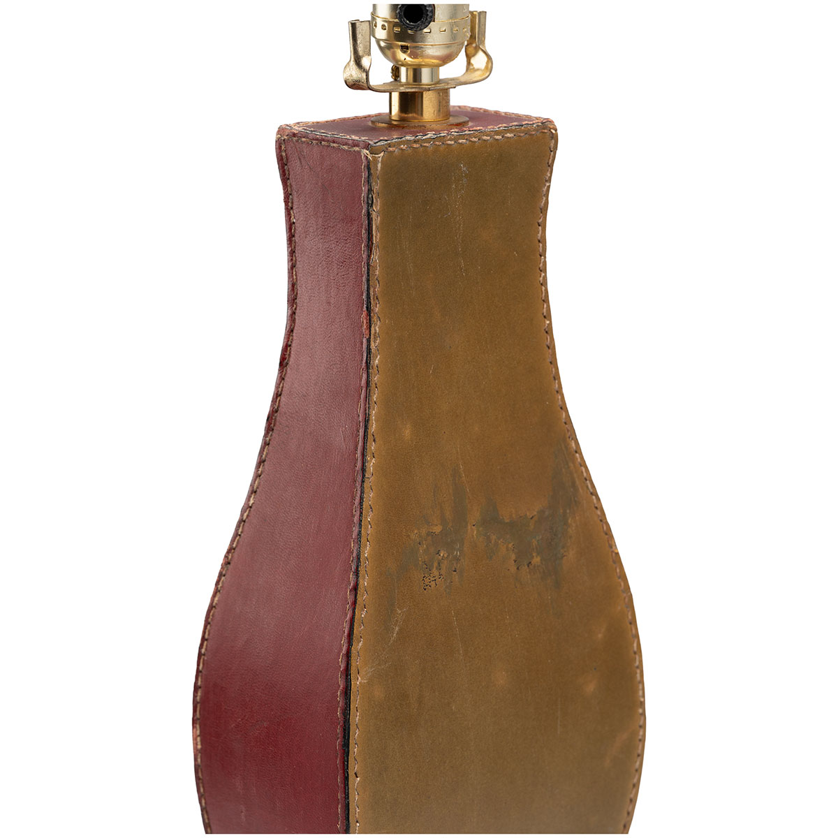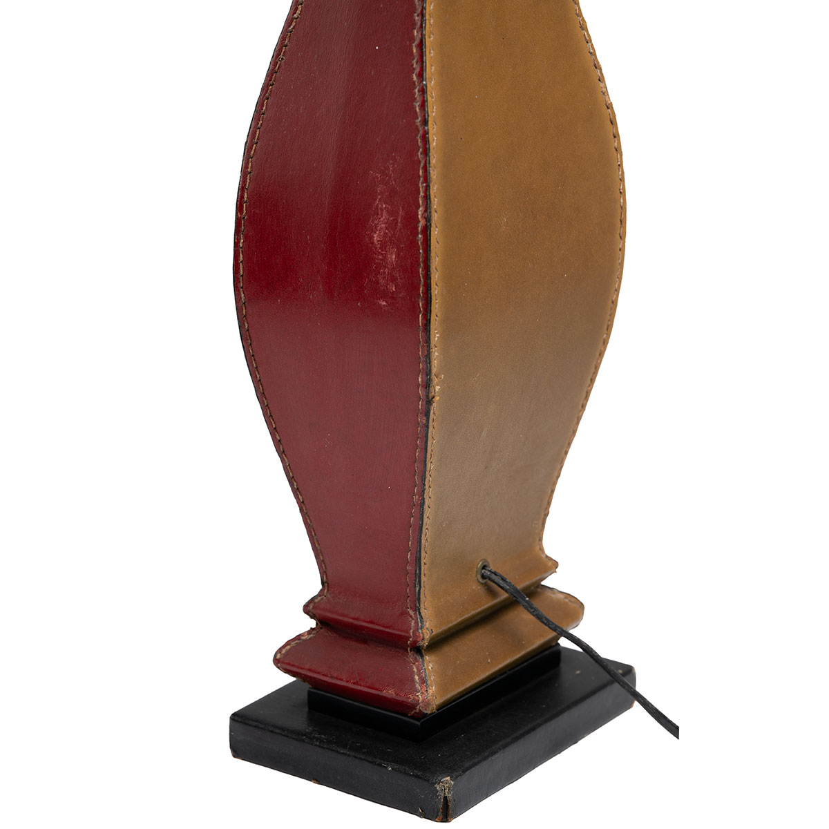 Vintage French Leather Lamp with Panels of Alternating Red and Mustard Leather on a Pedistal Base