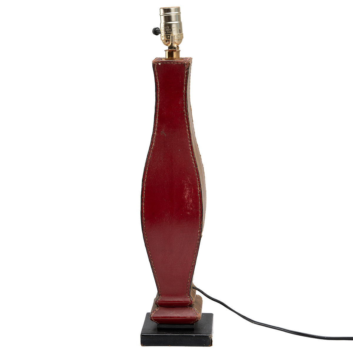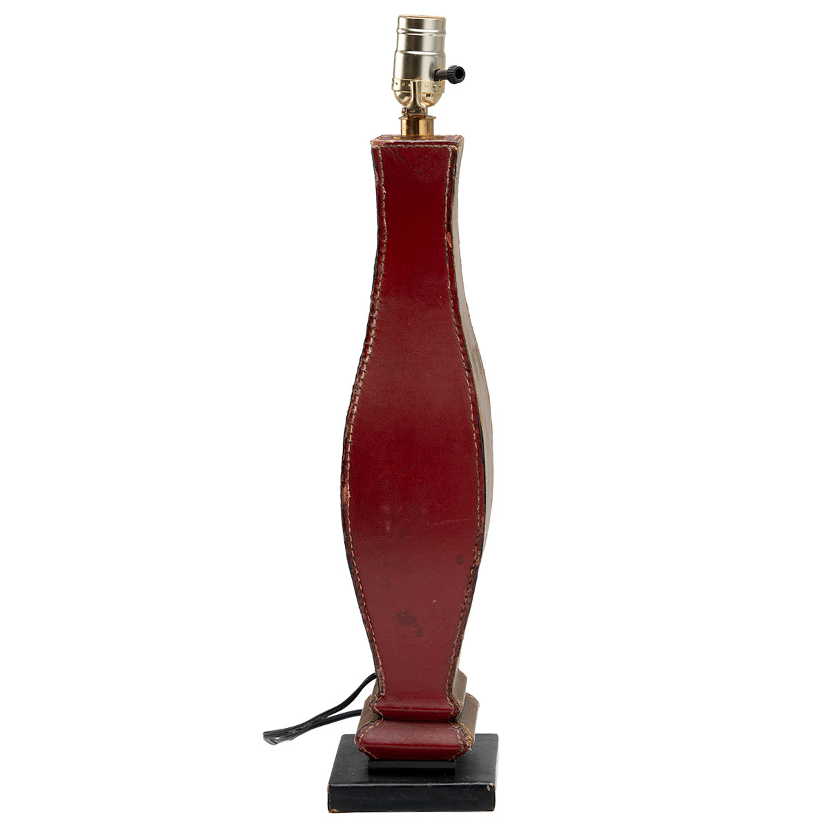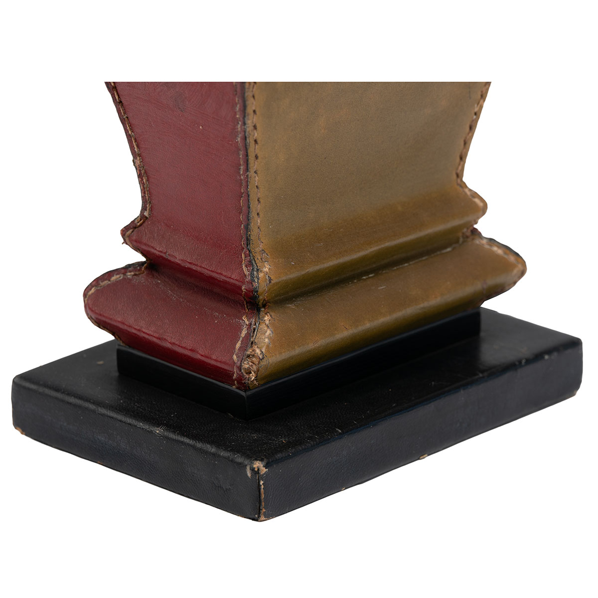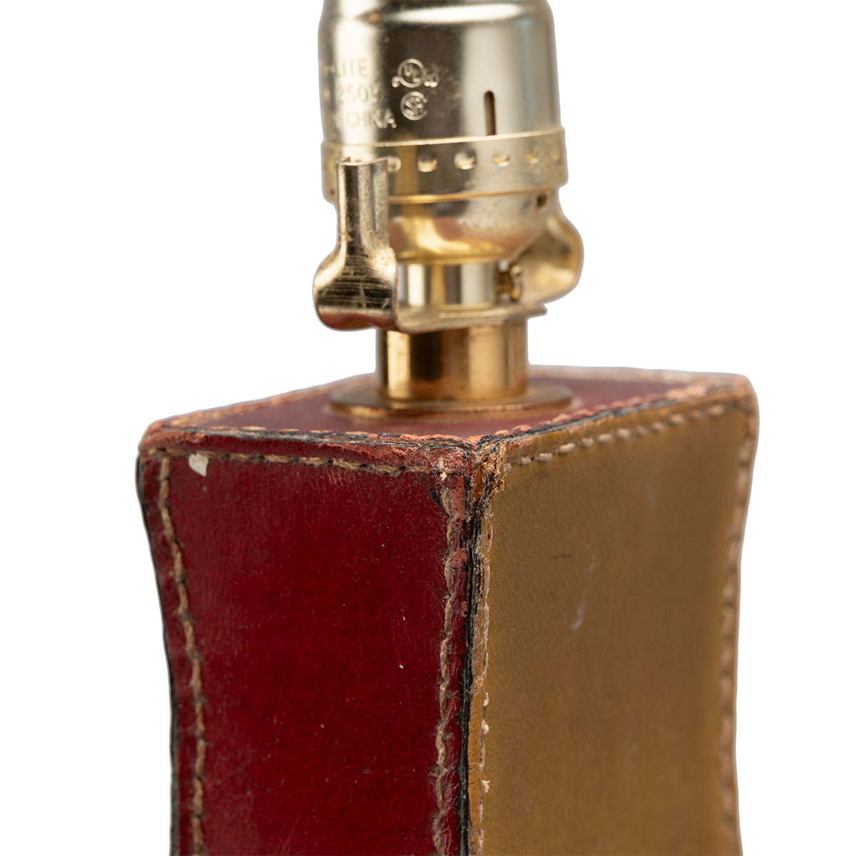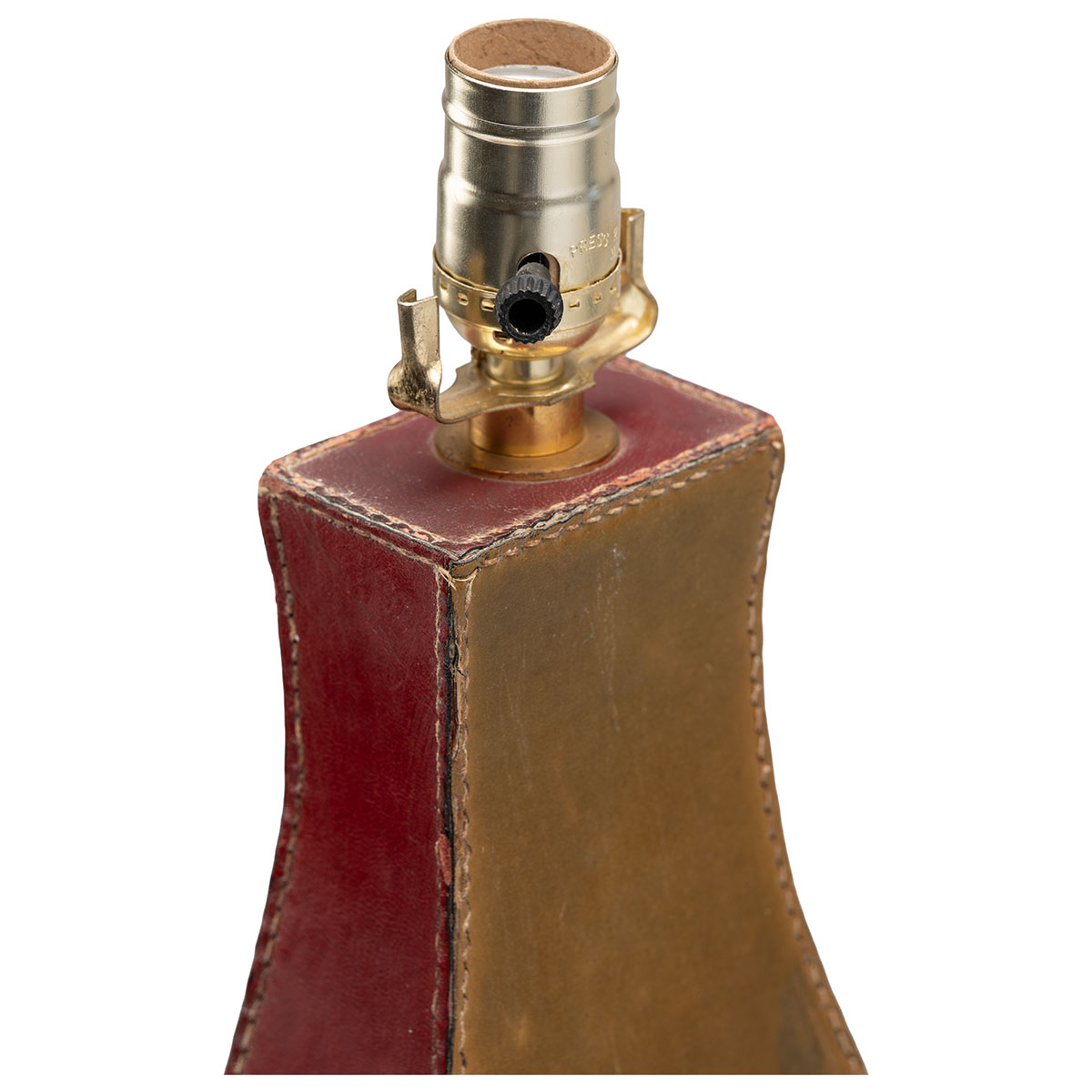 Vintage French Leather Lamp with Panels of Alternating Red and Mustard Leather on a Pedistal Base