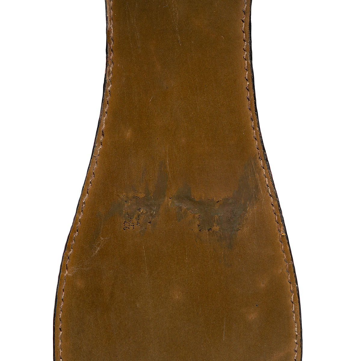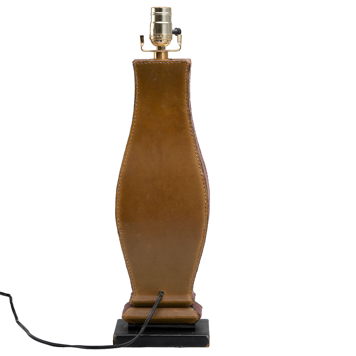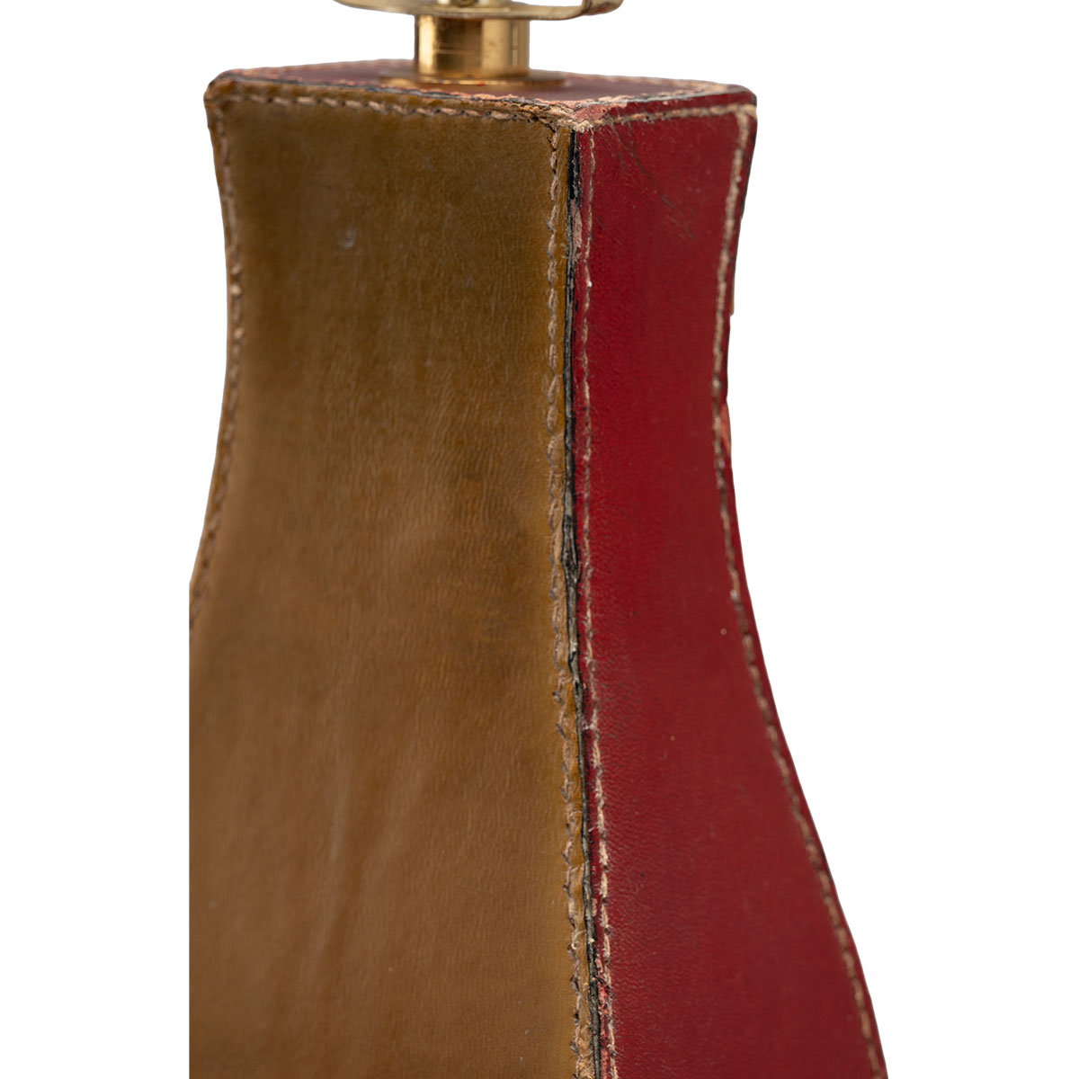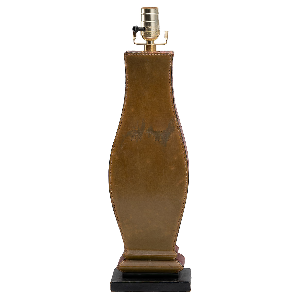 Vintage French Leather Lamp with Panels of Alternating Red and Mustard Leather on a Pedistal Base
