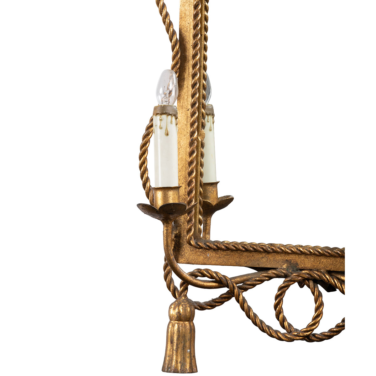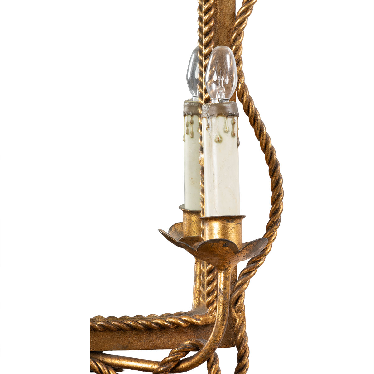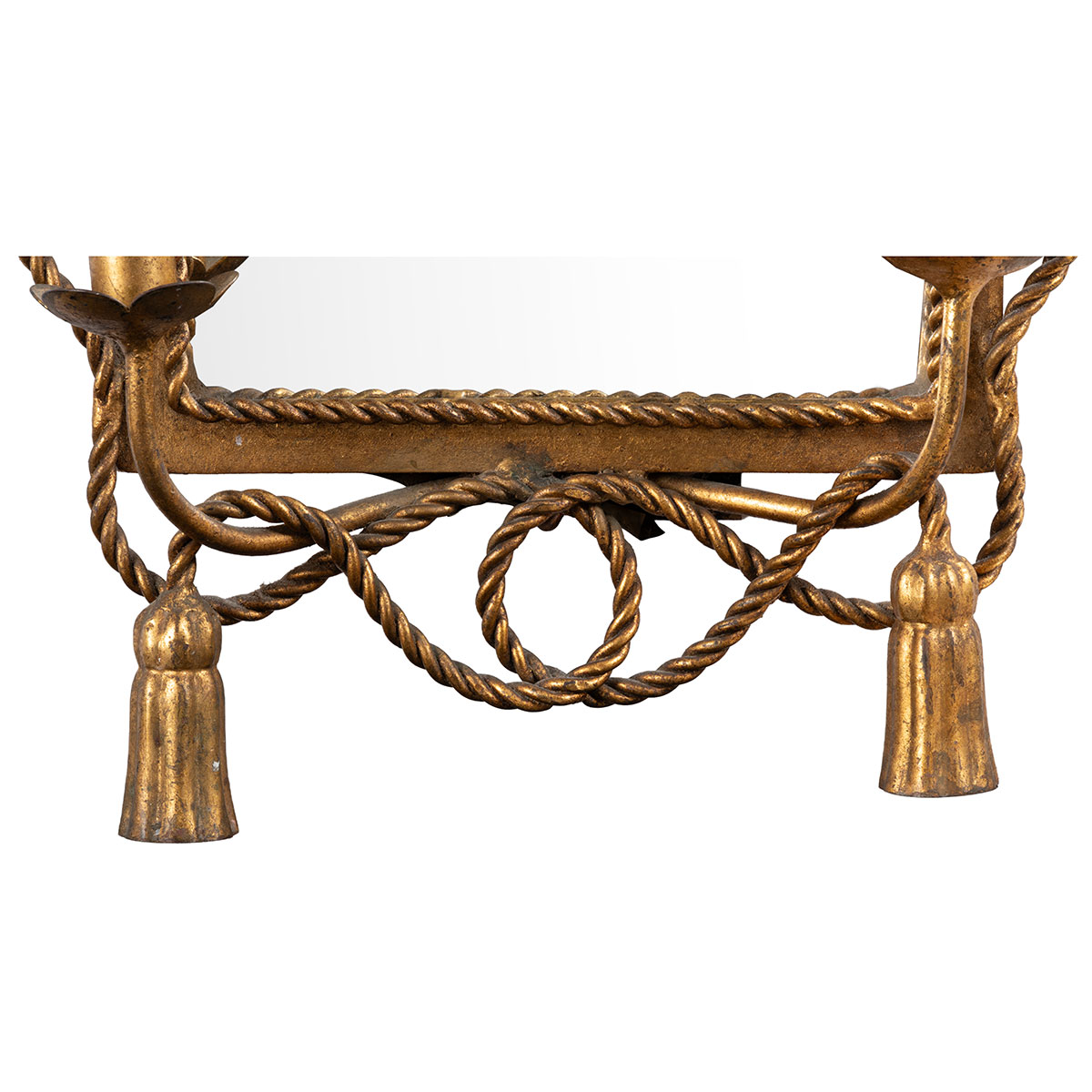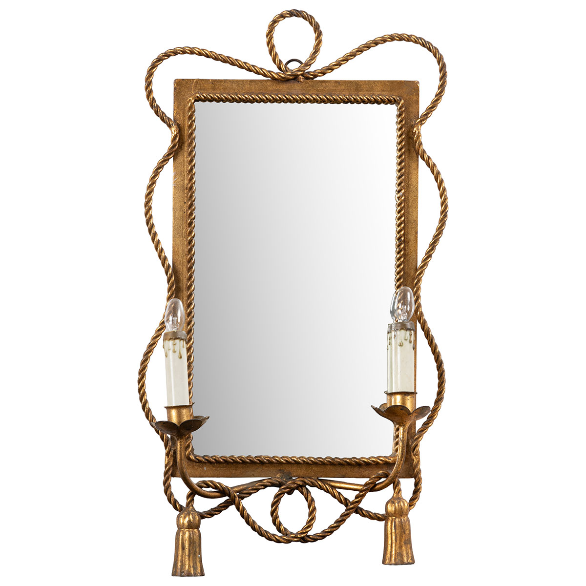 Small Vintage Decorative Regency or Italian Gilt Tassel and Rope Vanity Mirror with Two Electrified Candle Lights