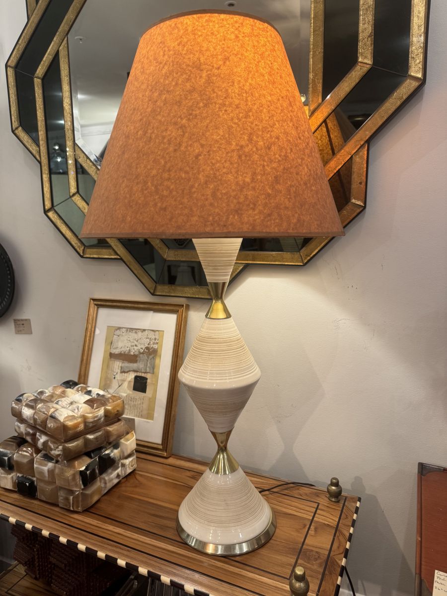 Vintage Mid-Century Modern Ceramic, Chrome and Brass Lamp
