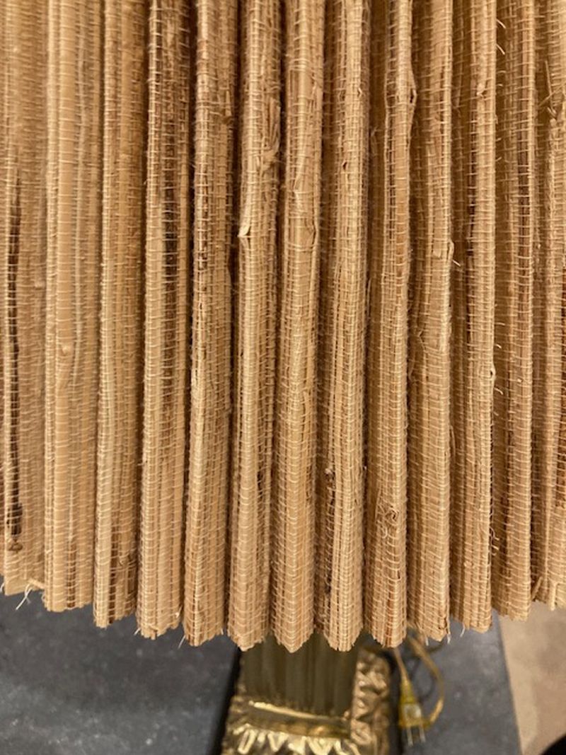 Vintage Solid Brass Table Lamp with Grasscloth Shade
