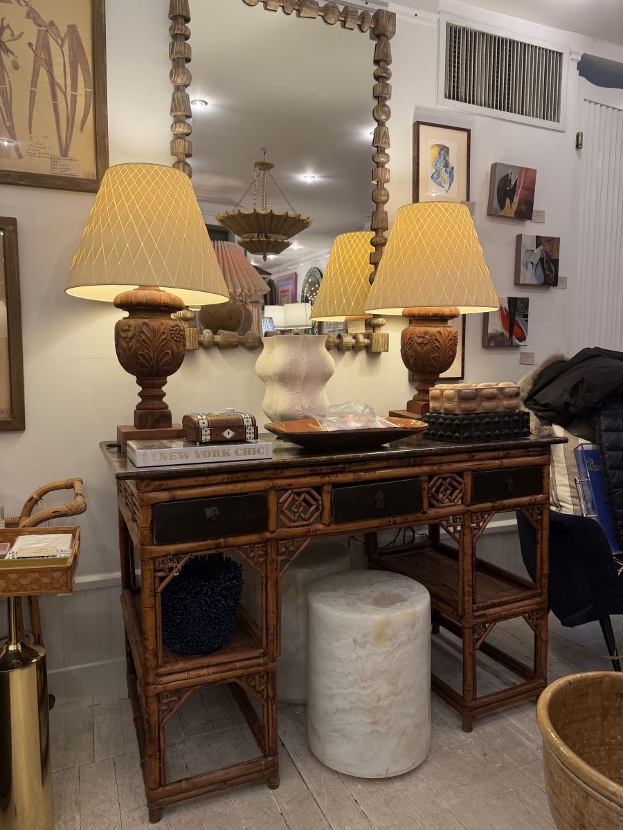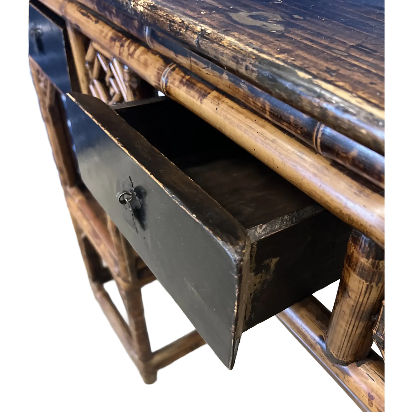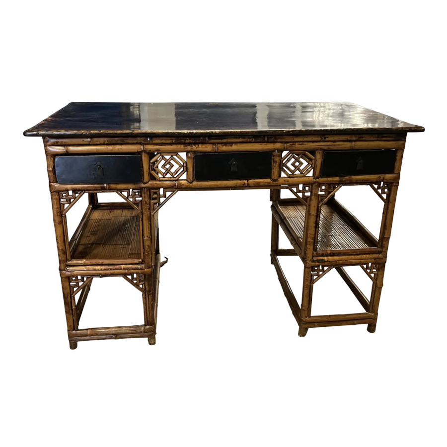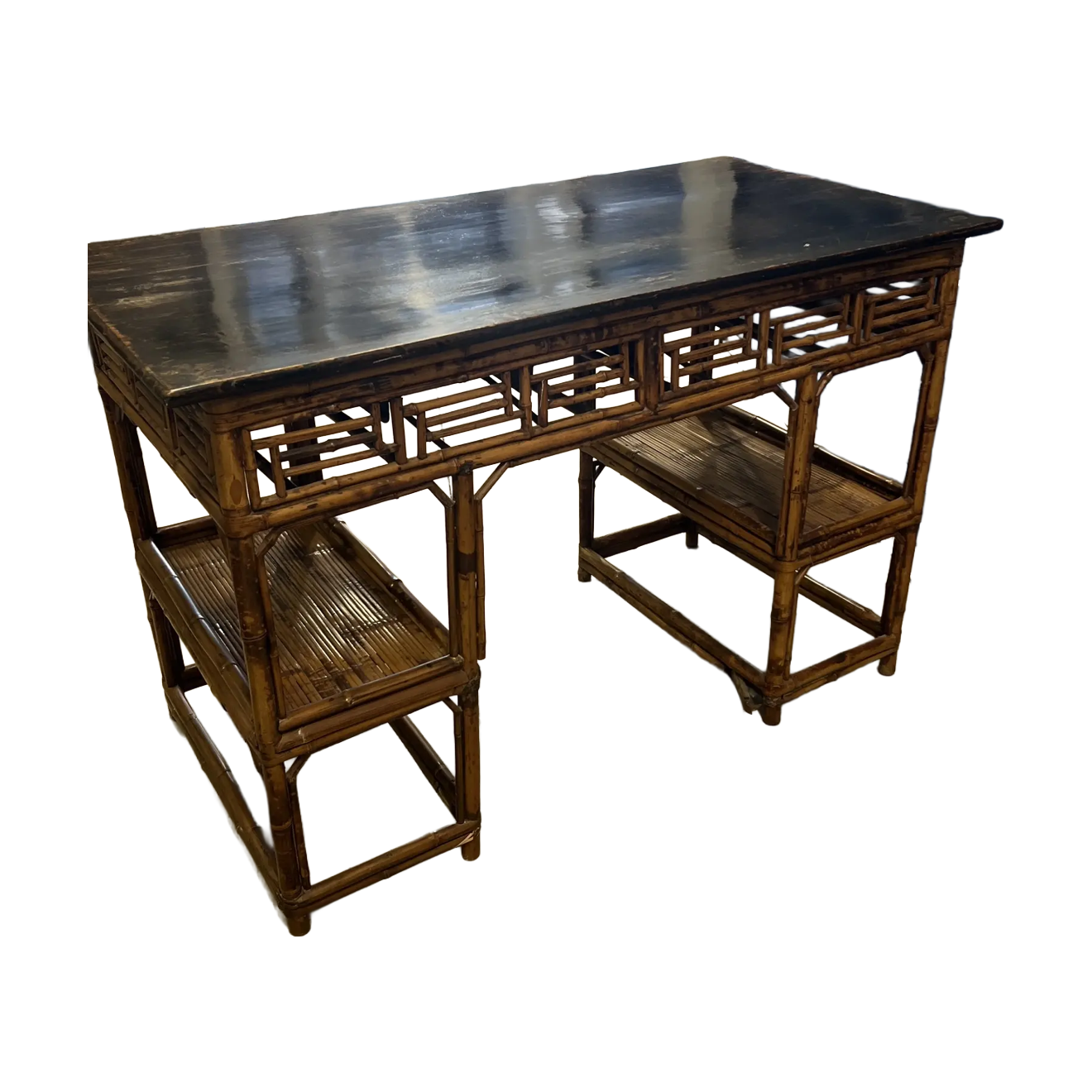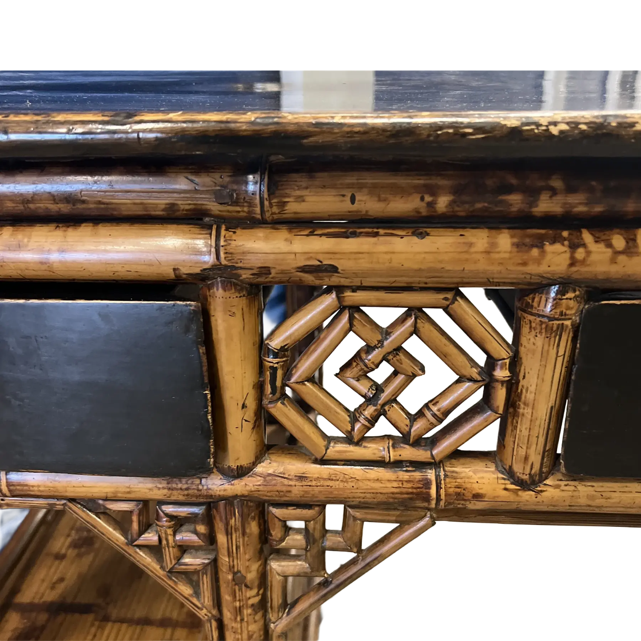 Antique Chinese Laquered Bamboo and Rattan Desk