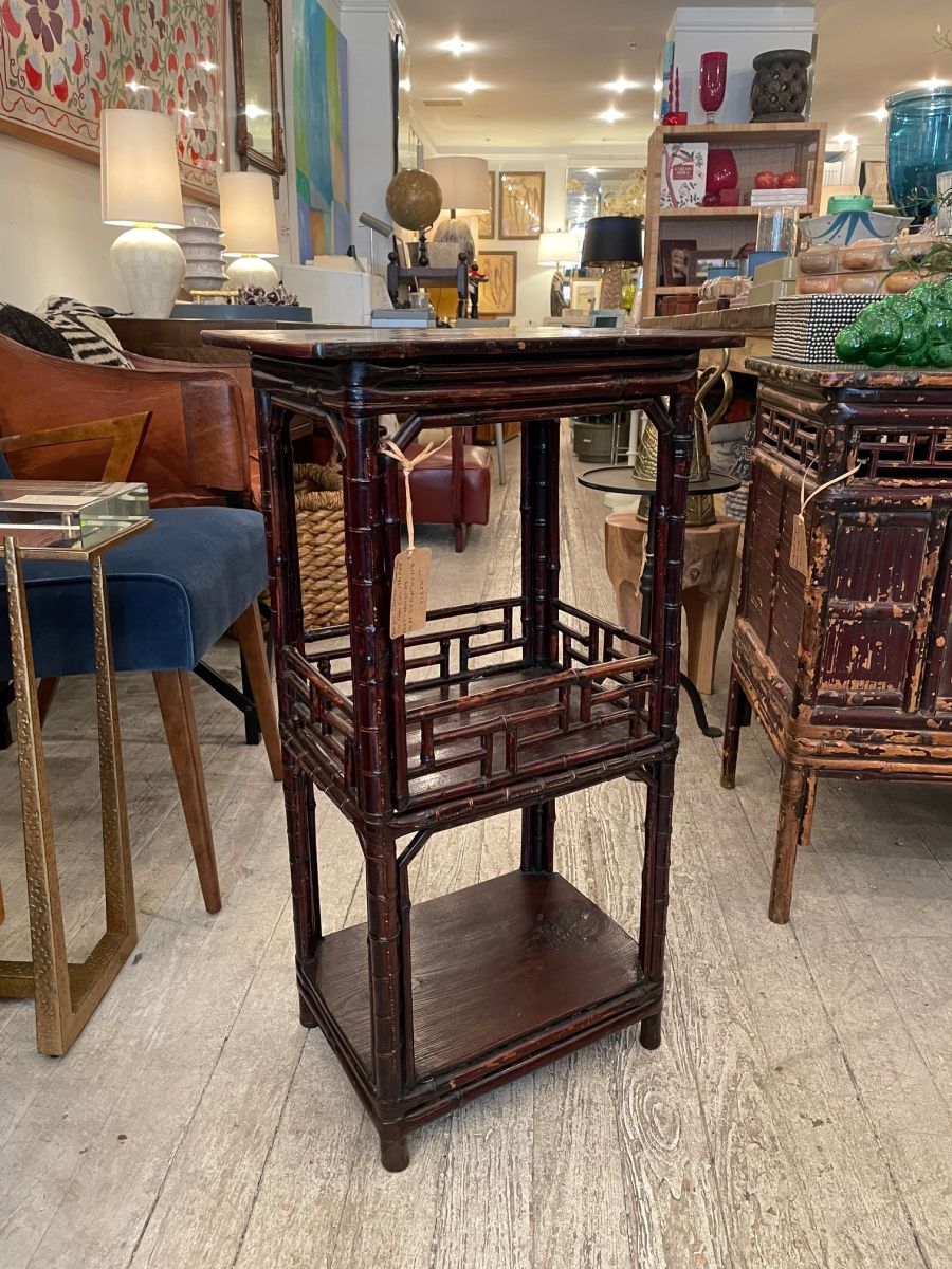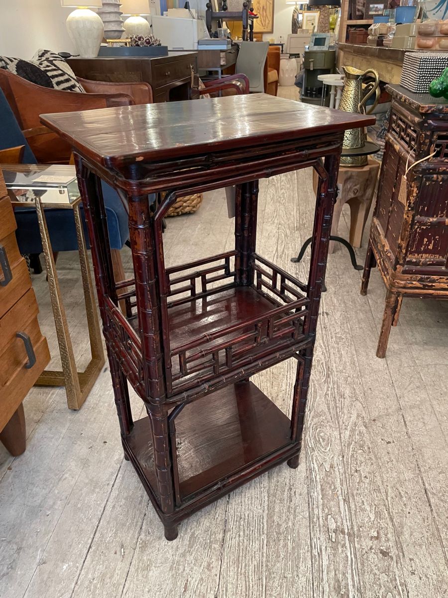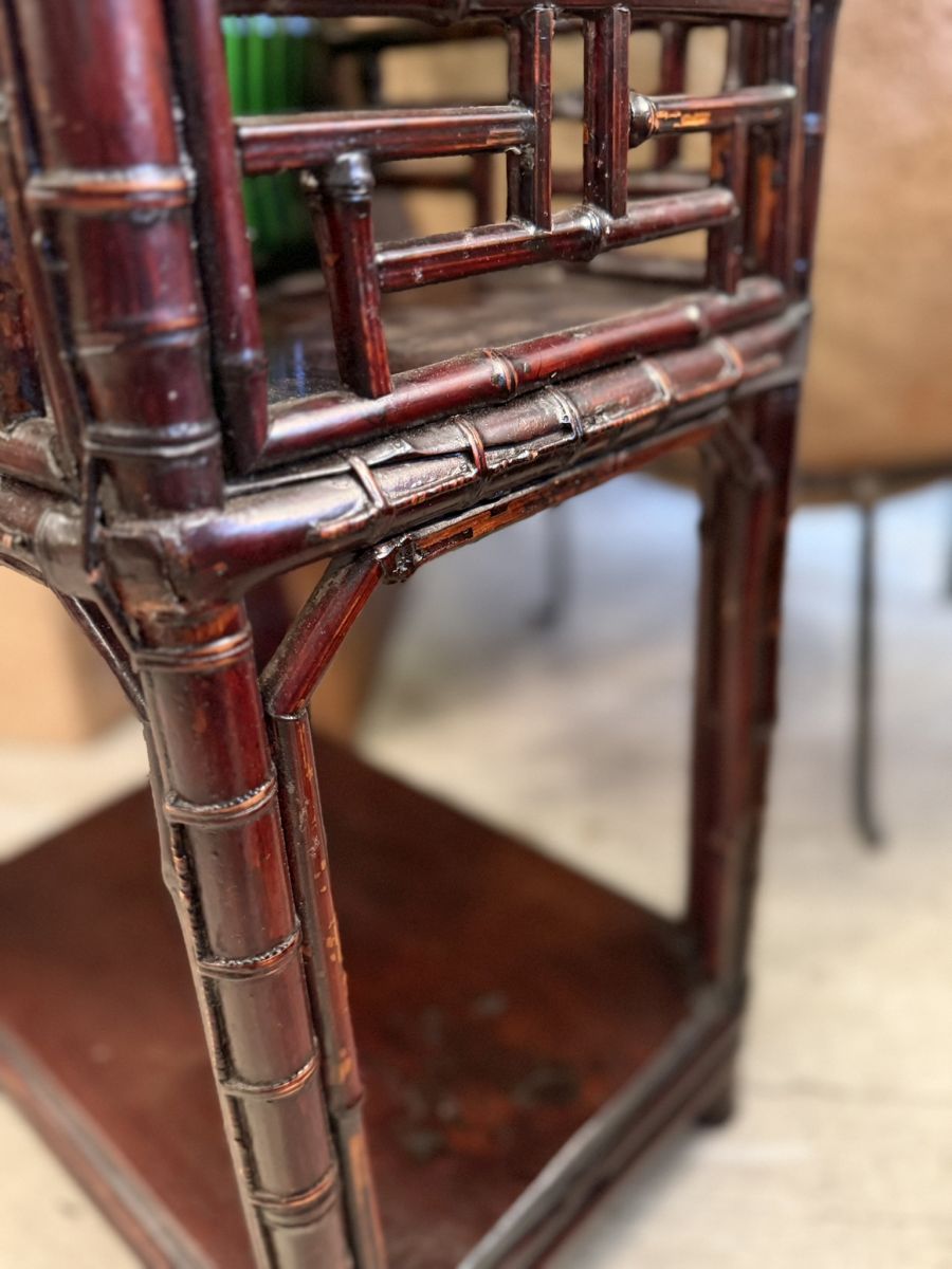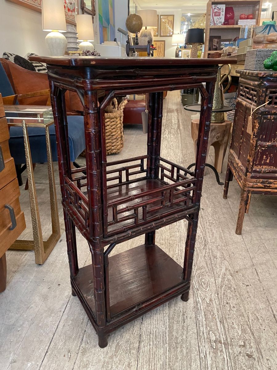Antique Single Chinese Two Tier Tea Table with Bamboo Details