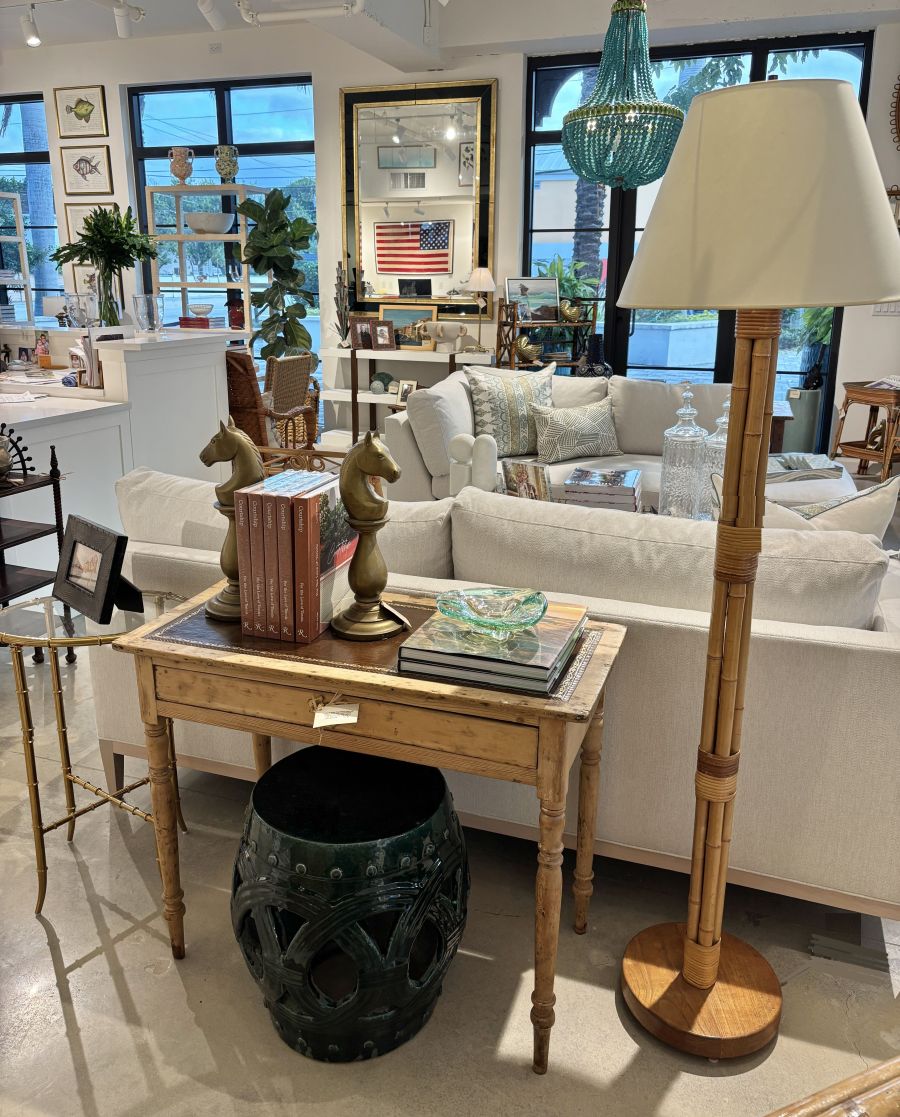 with Leather Insert and Center Drawer