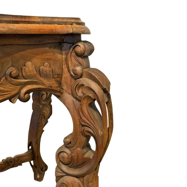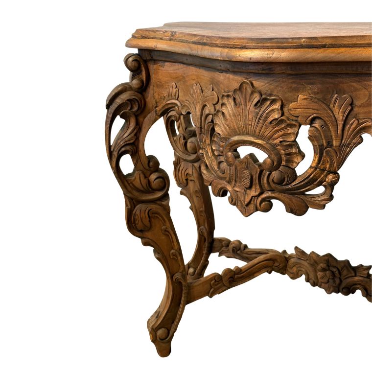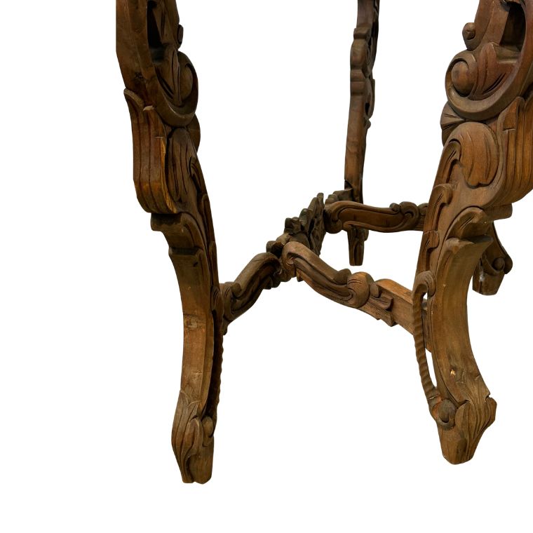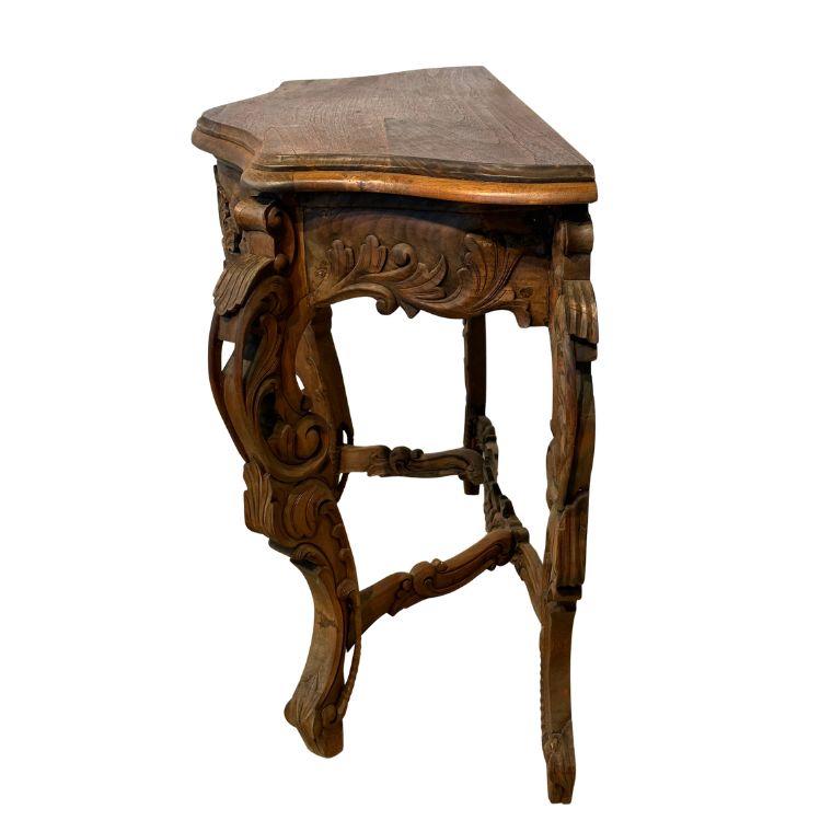 Antique Late 19th Century Intricately Hand Carved Walnut Demilune Console