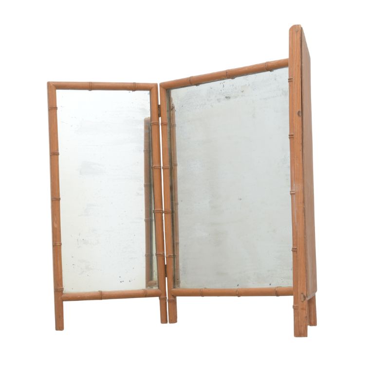 Mid-Century Folding Bamboo Aged Vanity Mirror