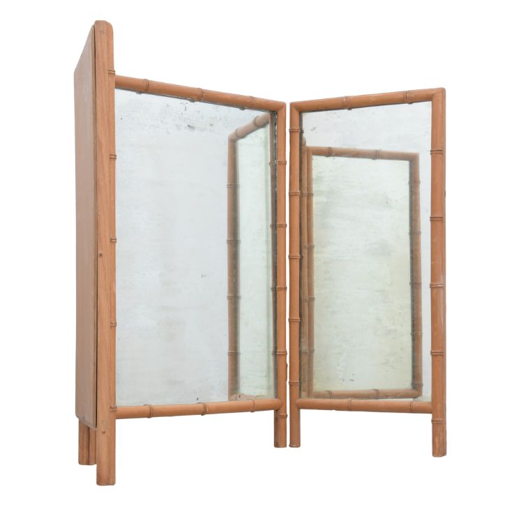 Mid-Century Folding Faux Bamboo Vanity Mirror