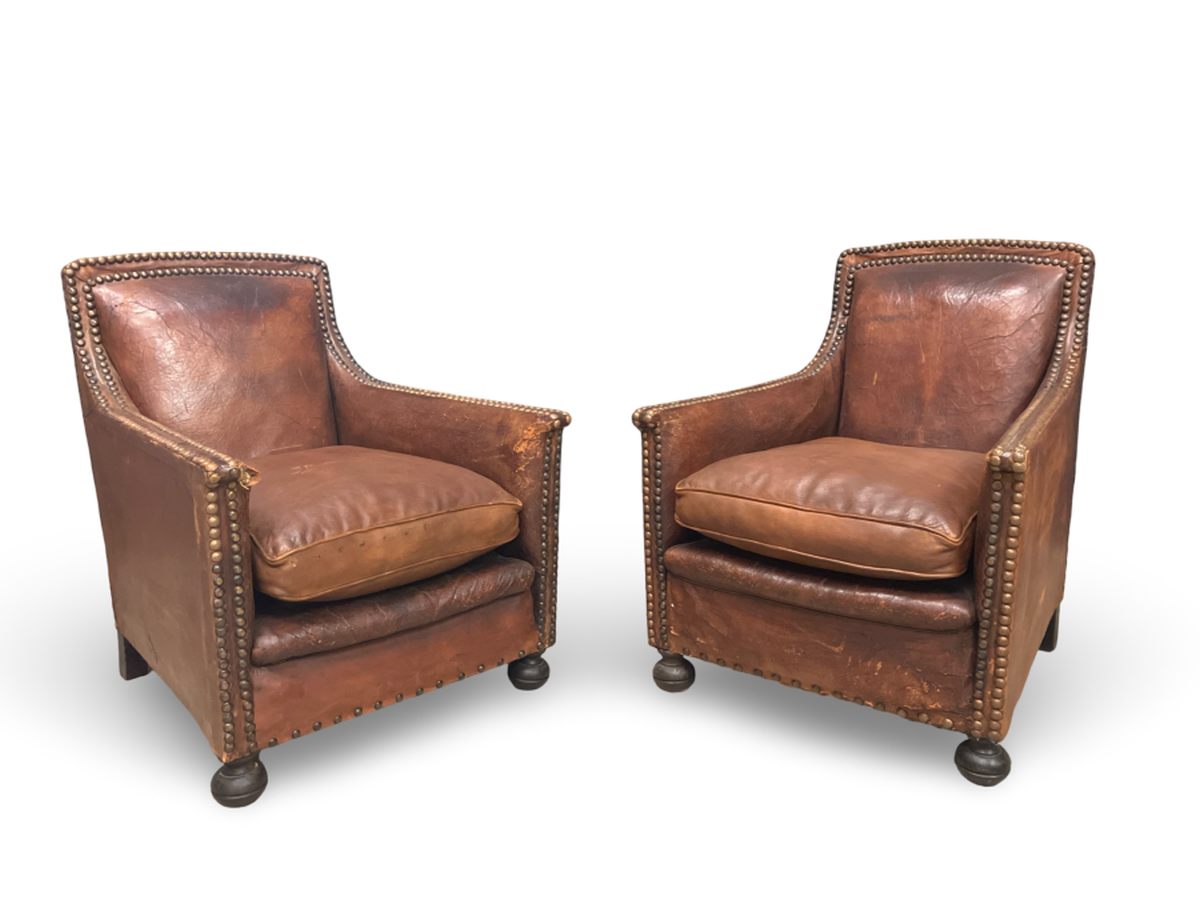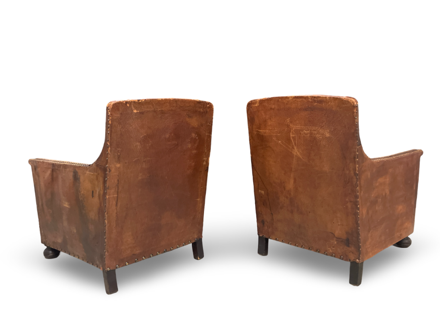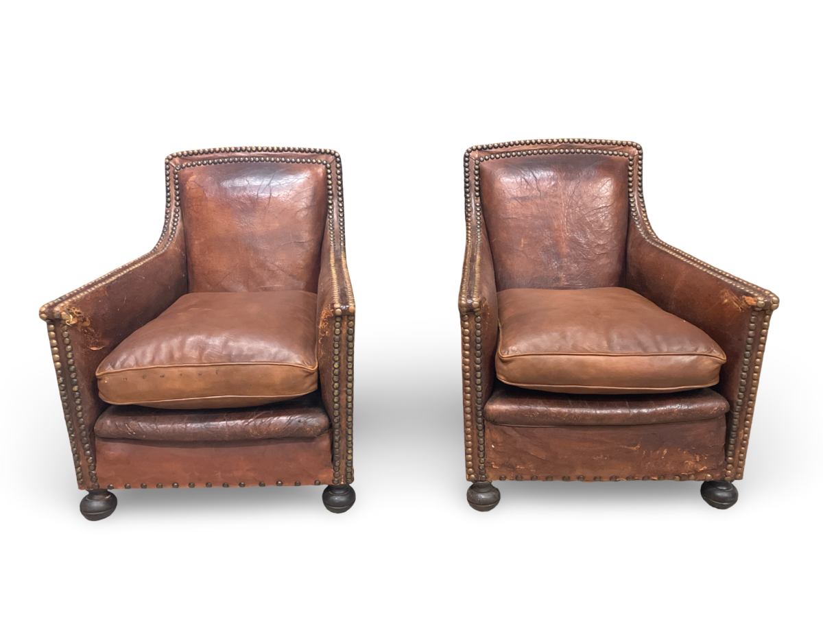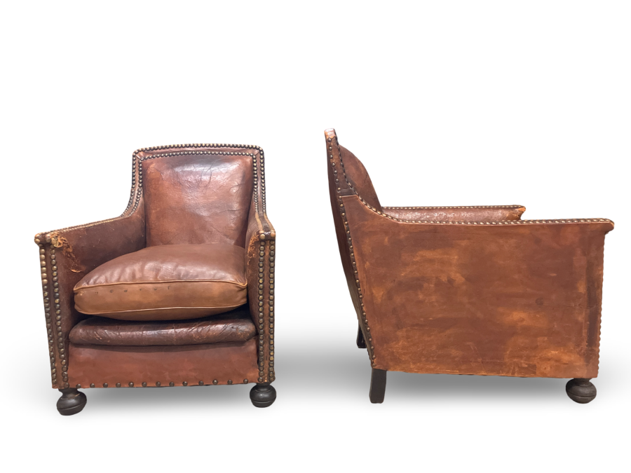 Pair of Antique French Leather Club Chairs