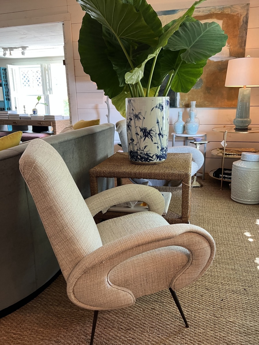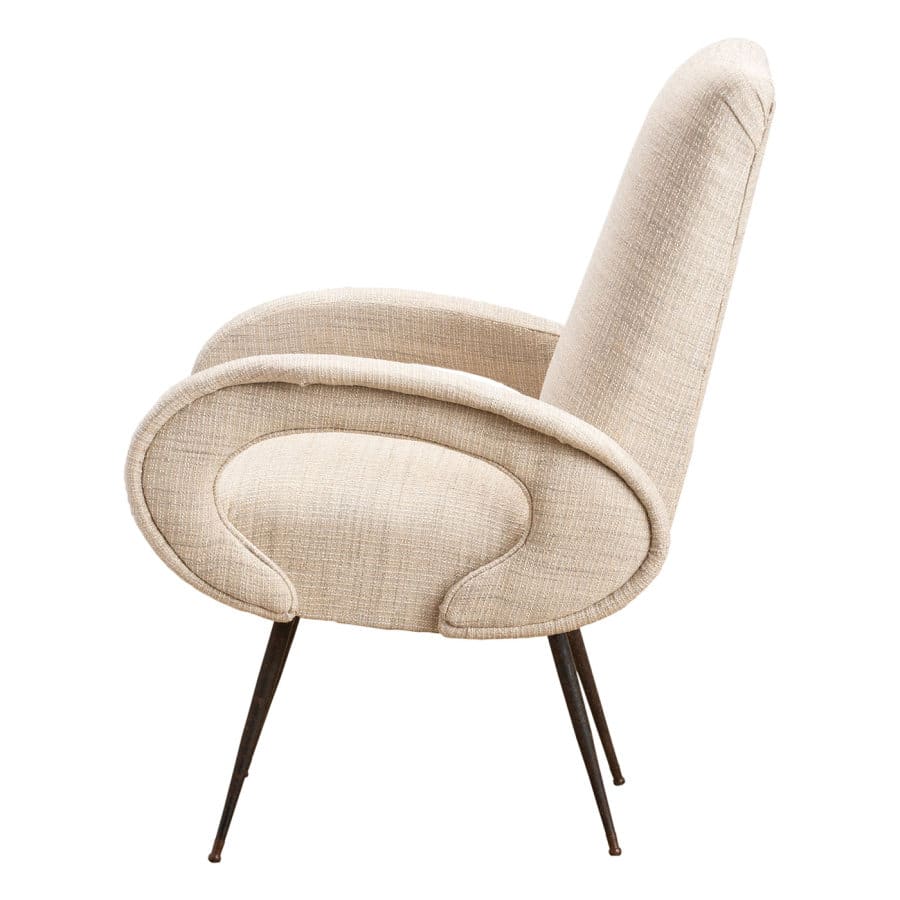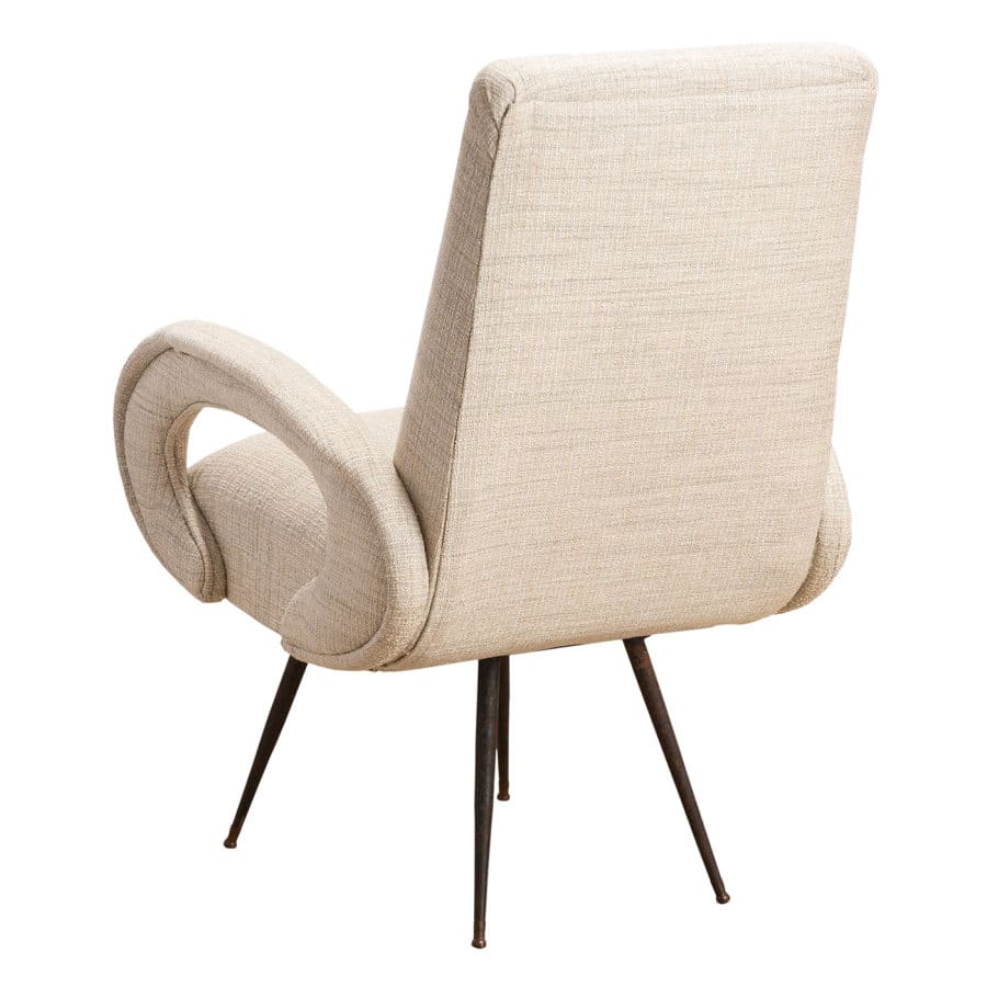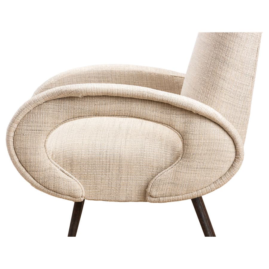 with Curved “Open” Arms In Woven Cream/Gray Textured Fabric