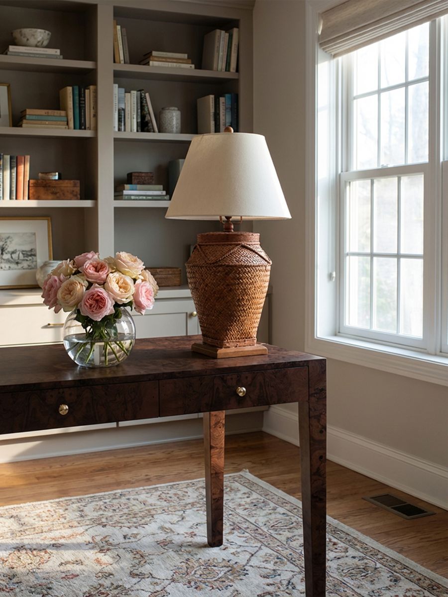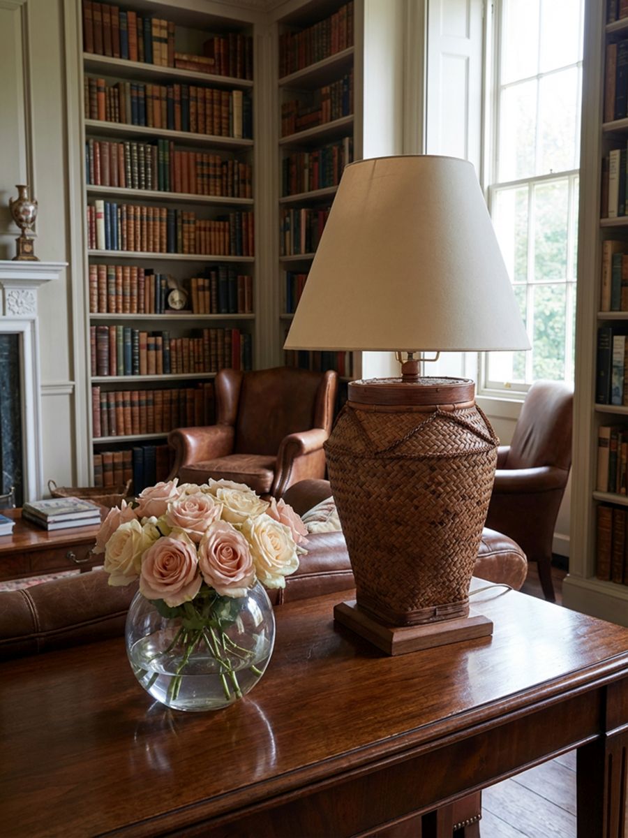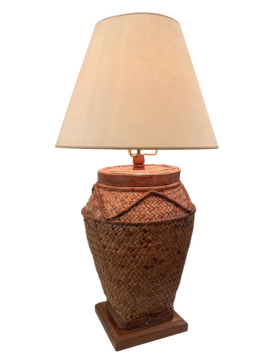 Pair of Vintage Mid-Century Woven Split Bamboo Table Lamp