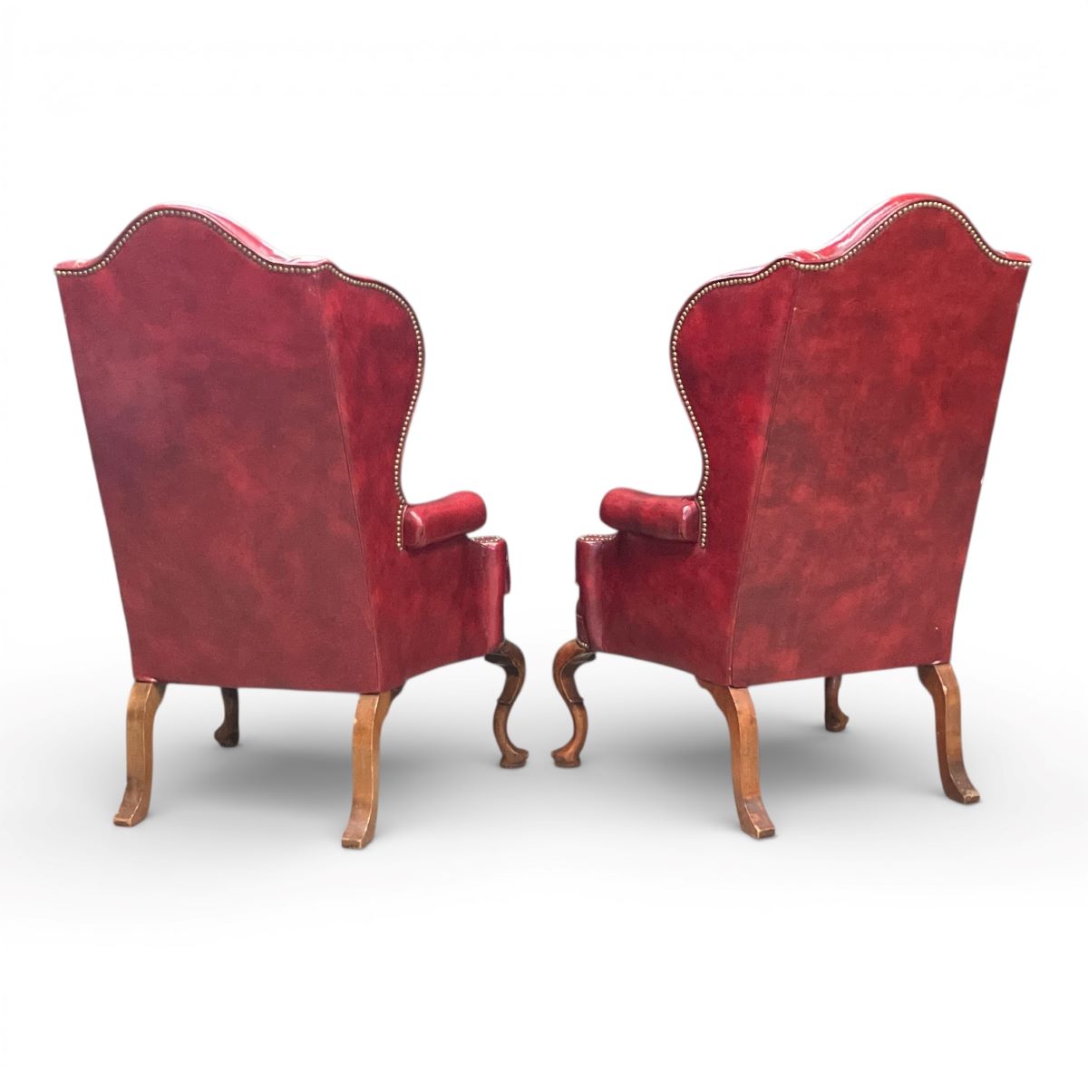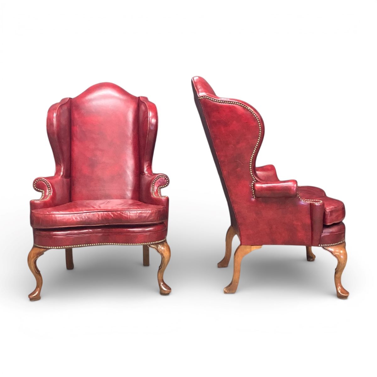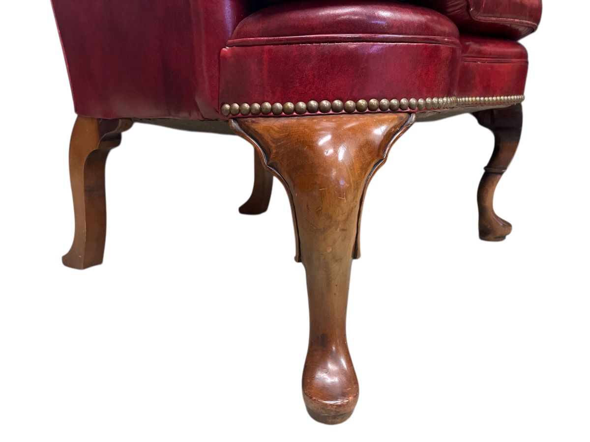 Pair of Exceptional Vintage Red Leather English Style Wingback Chairs