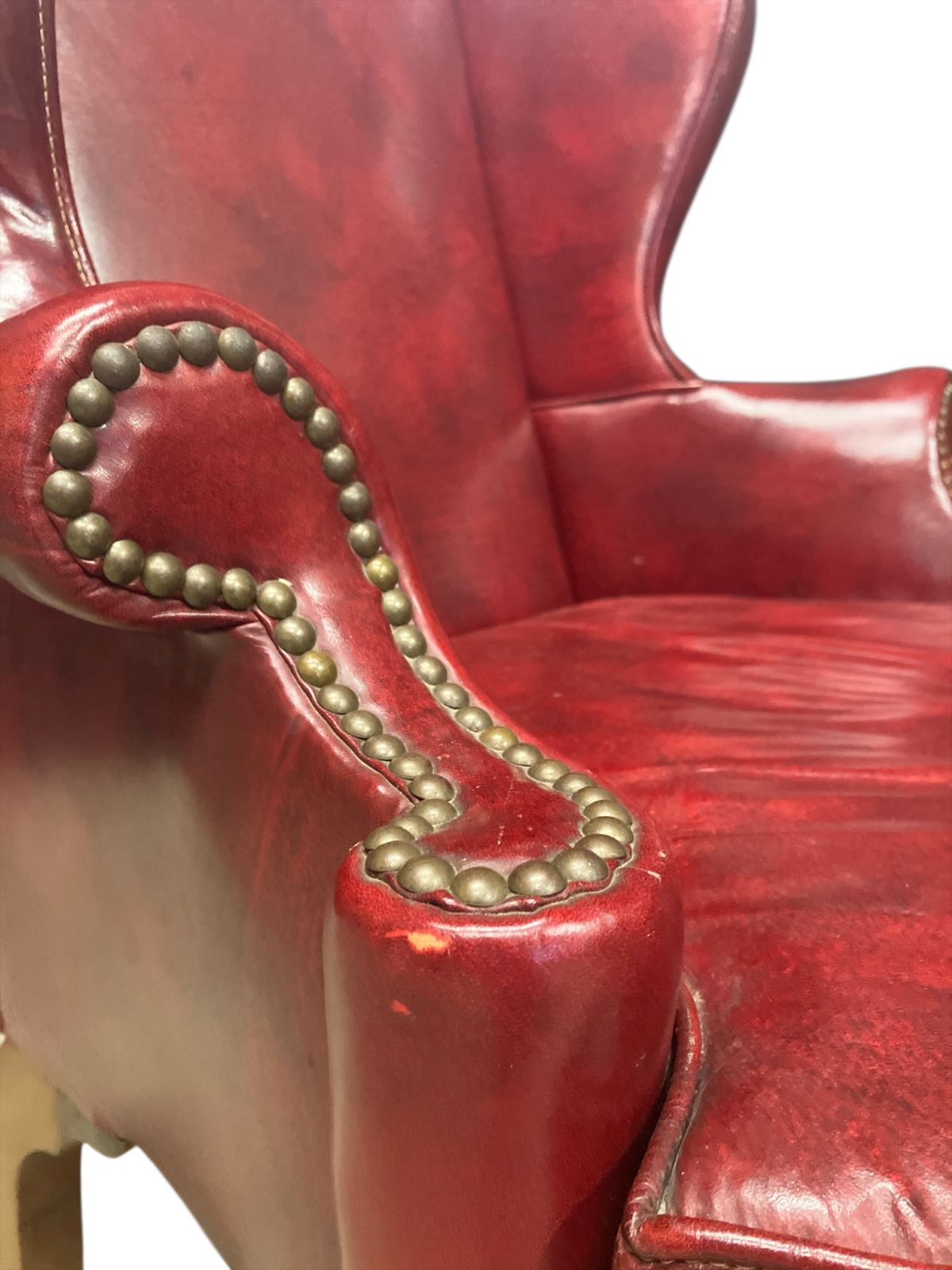Pair of Vintage Red Leather English Style Wingback Chairs