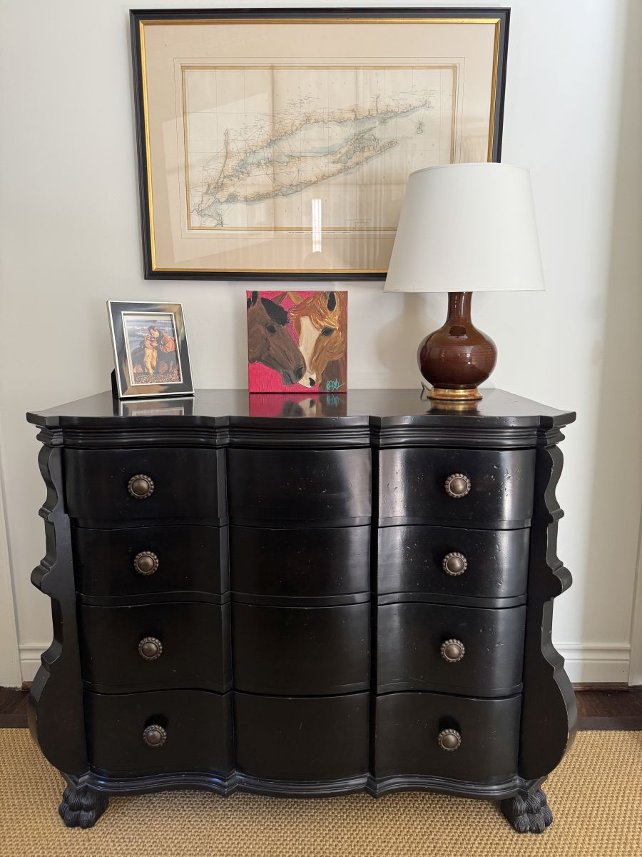 Classic Serpentine Frame Chest with Aged Distressed Black Finish with Lion Paw Feet