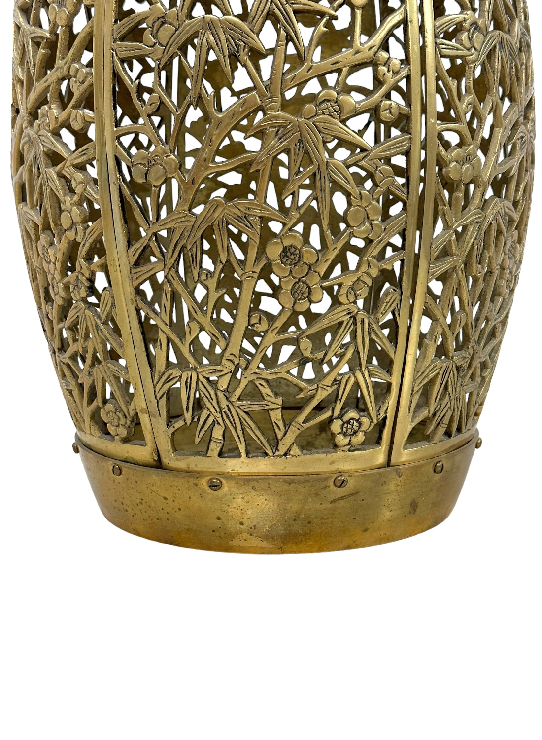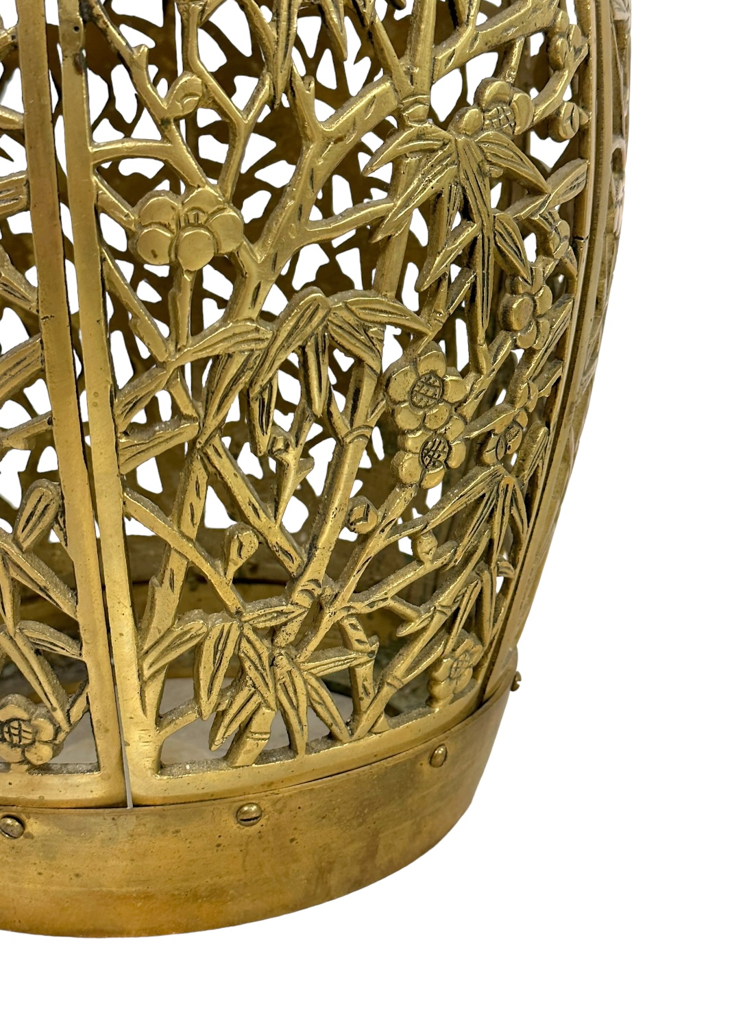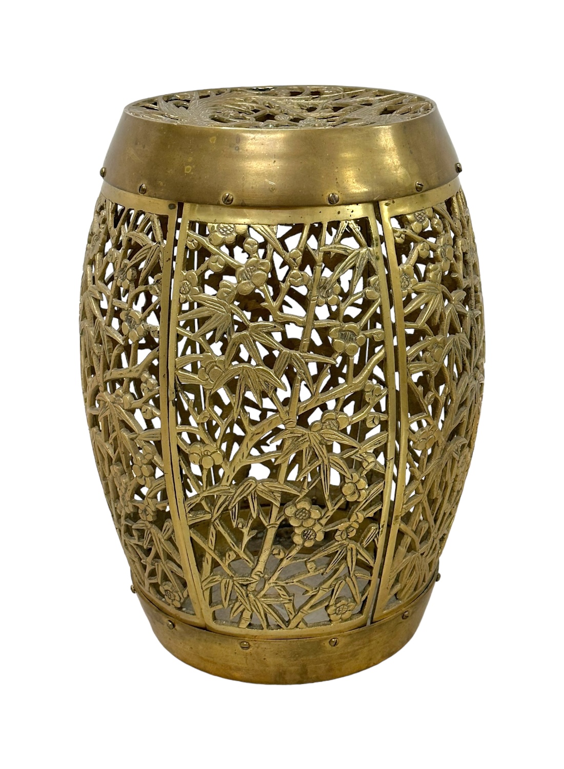 Round Vintage Brass Garden Stool with Intricate Floral Panel Decor