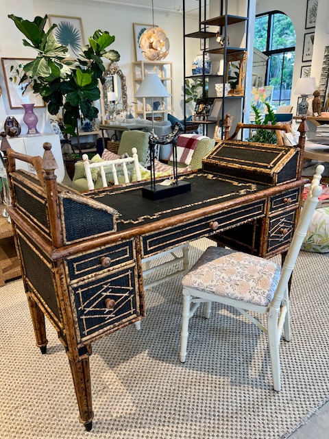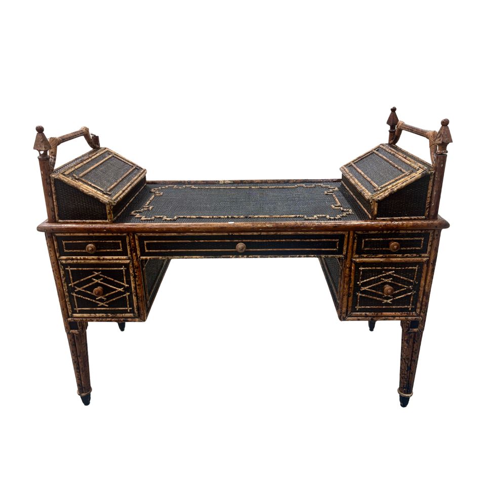 Vintage British Colonial Style Faux Tortoise Rattan and Bamboo Desk