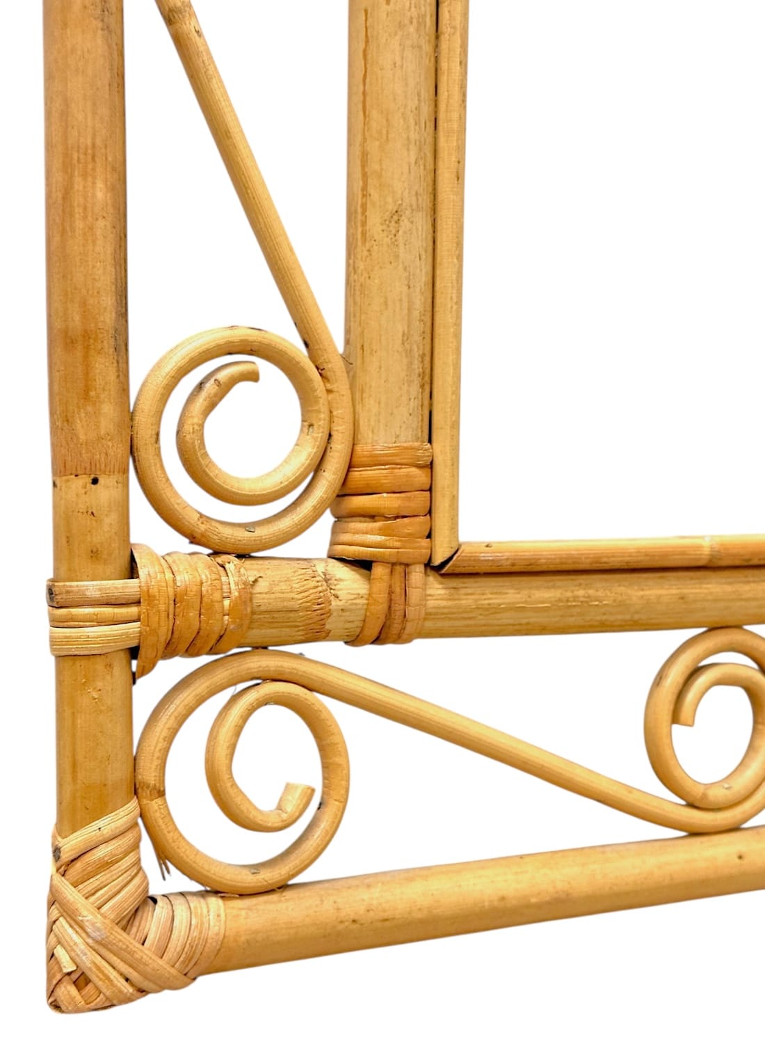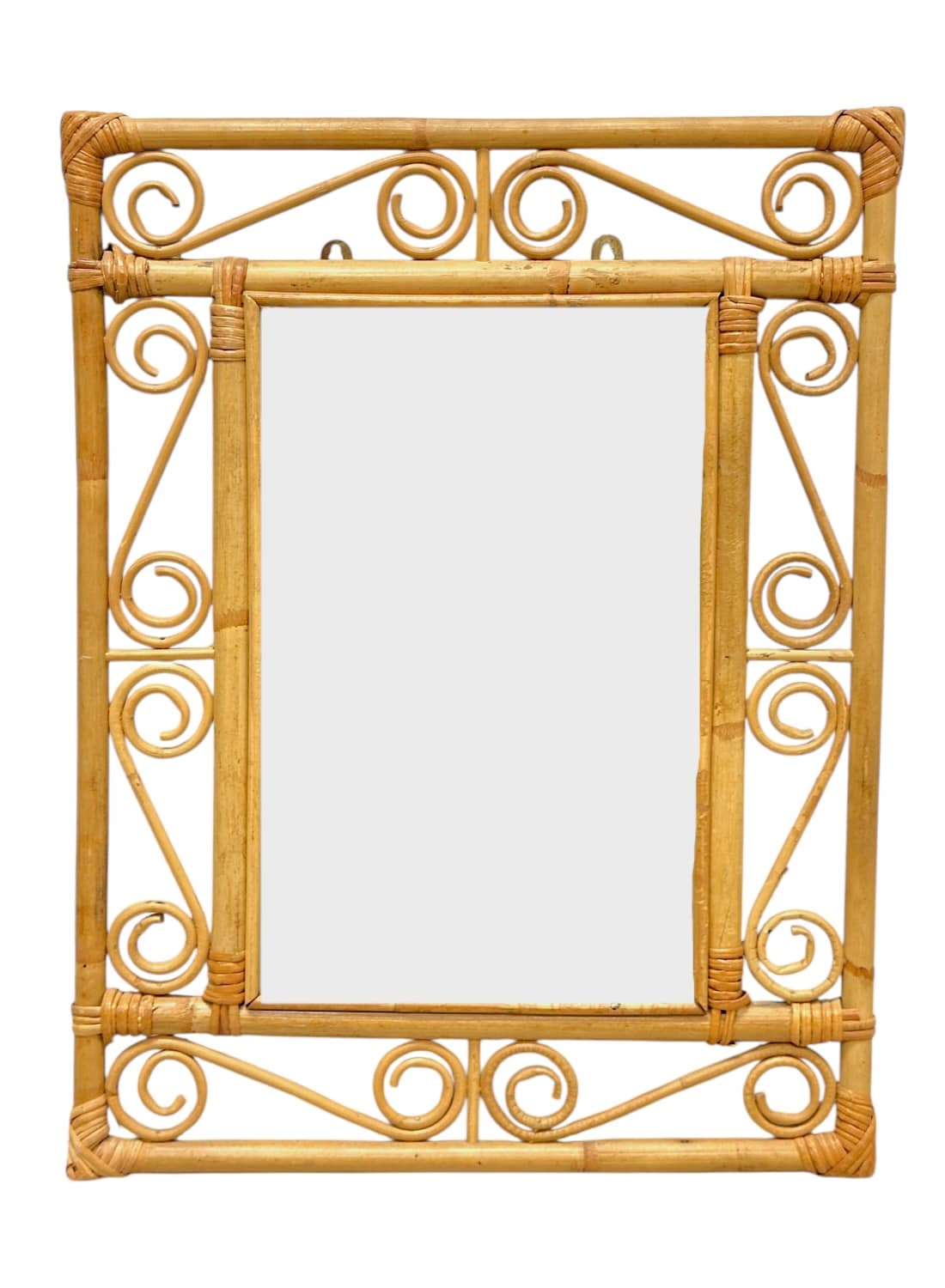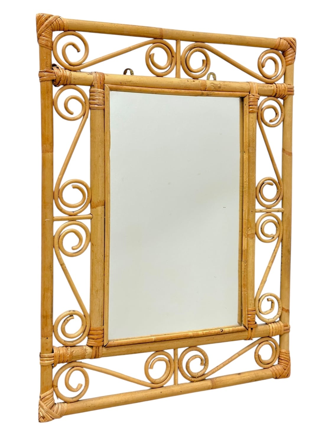 Vintage Mid-Century Small Bamboo & Rattan Mirror with Swirl Details