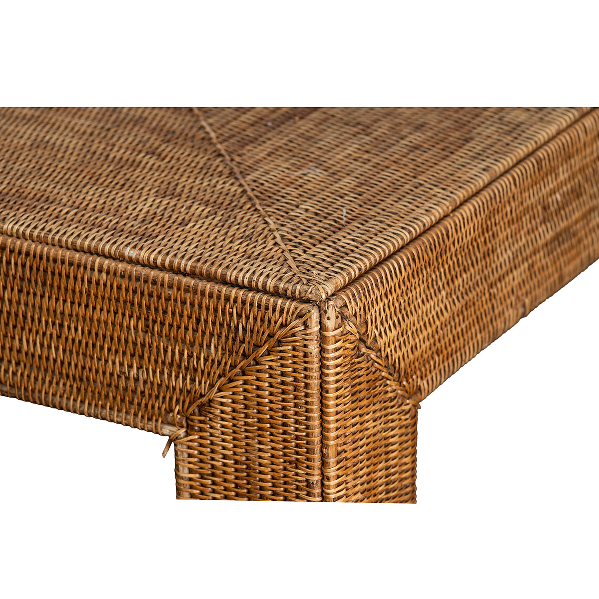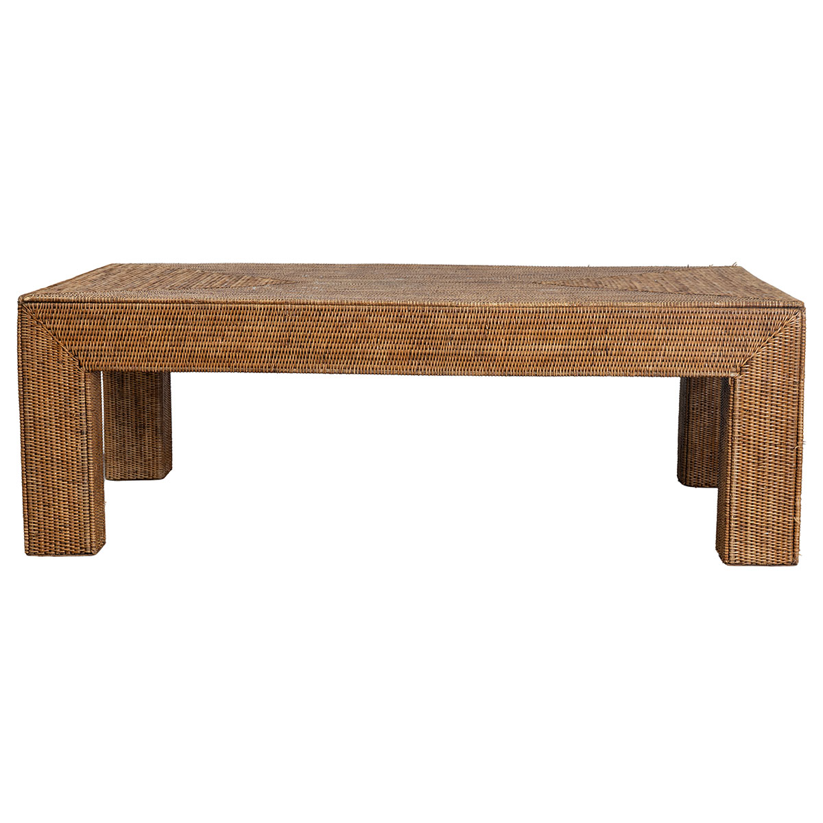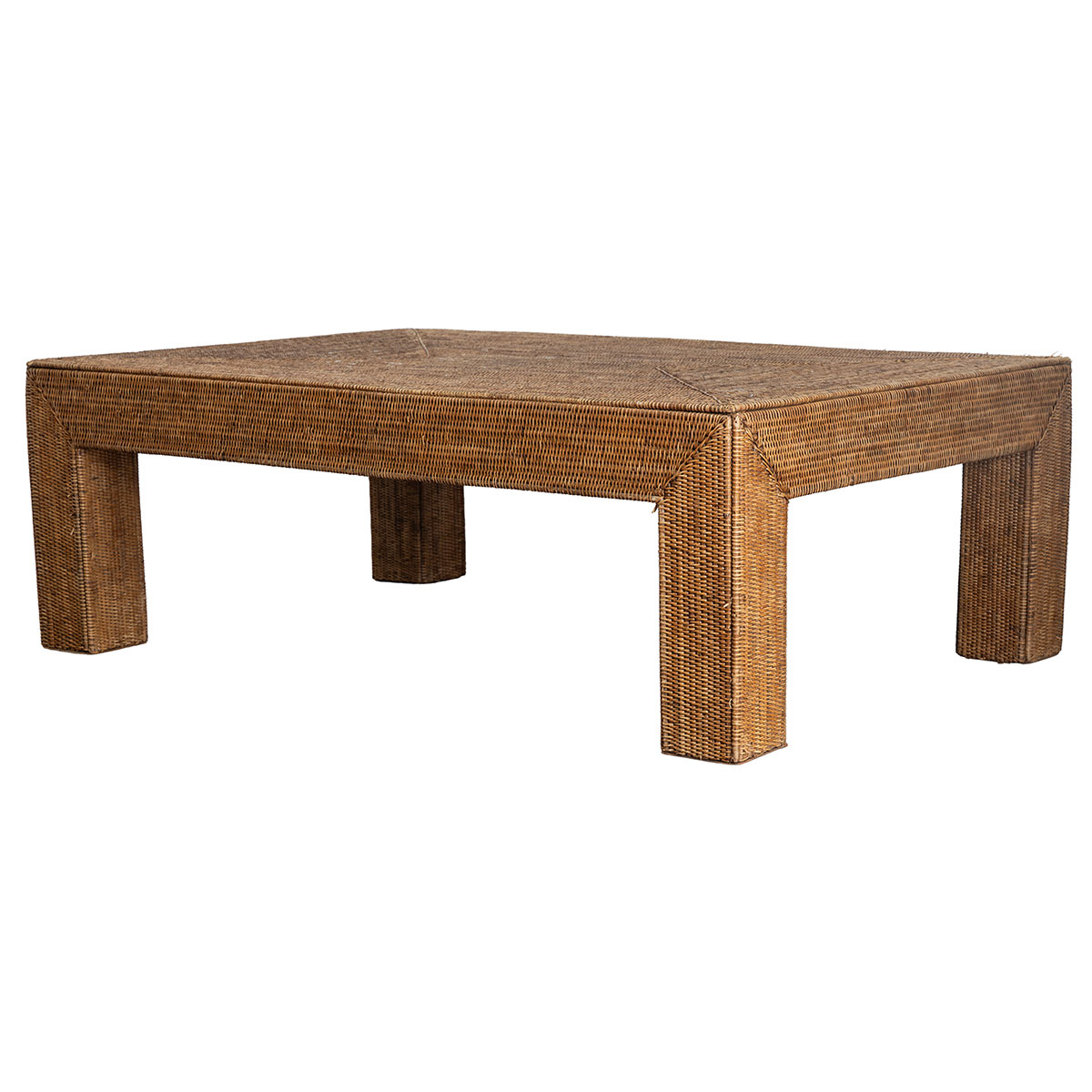 Vintage Woven Rattan Parsons Coffee Table