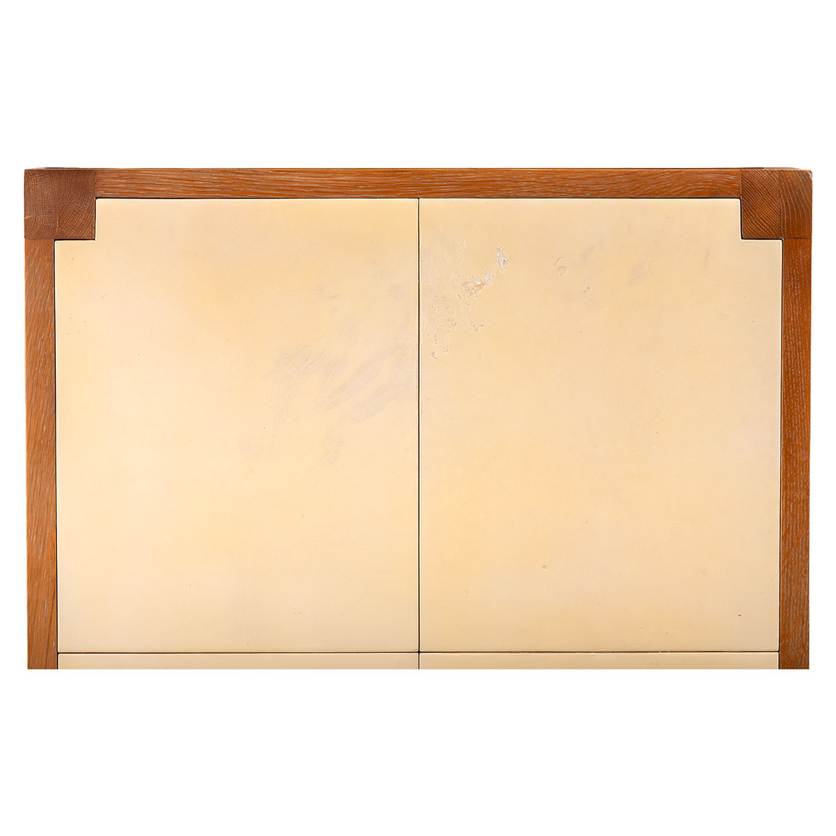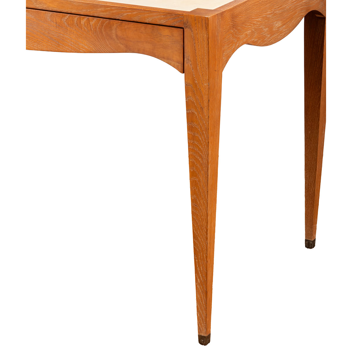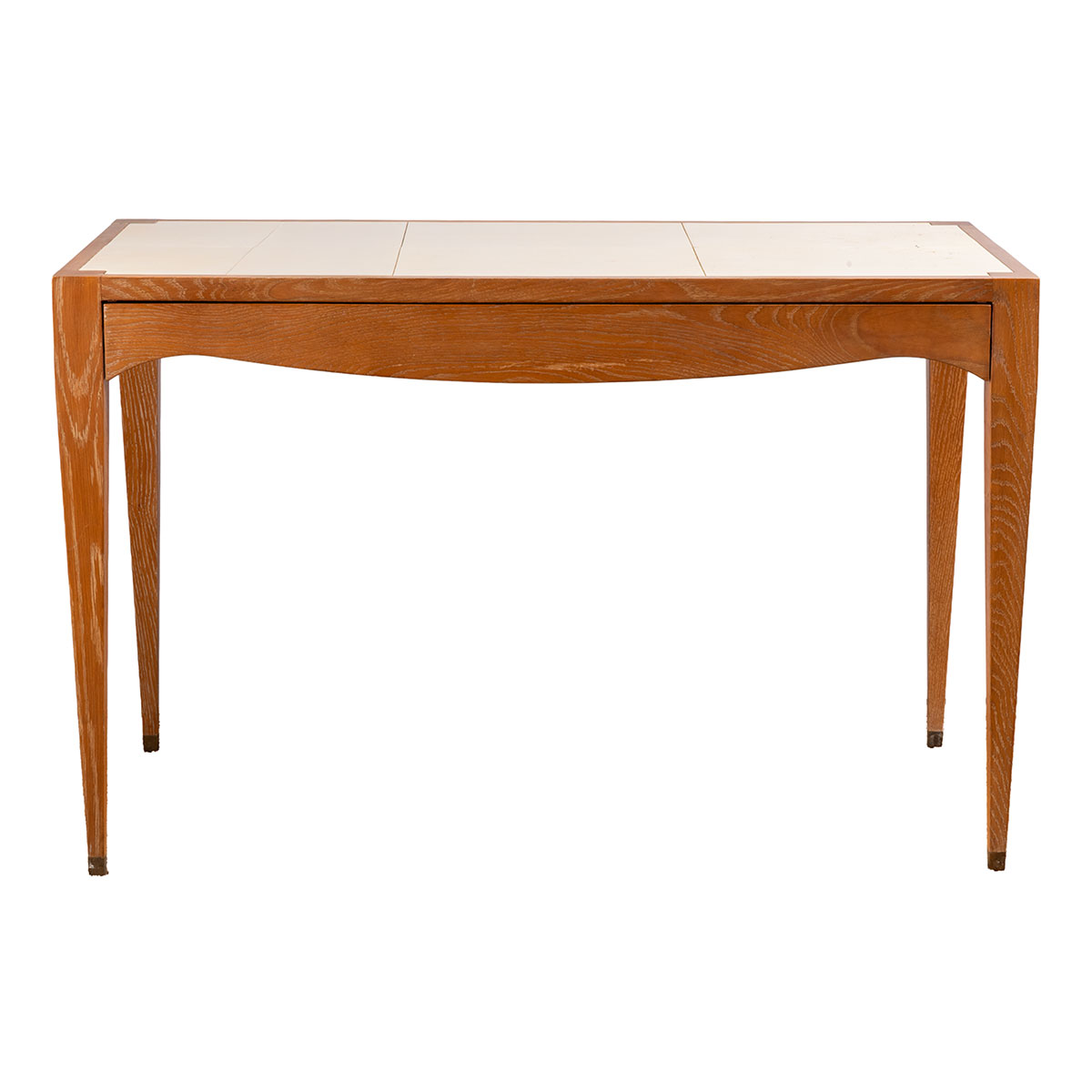 Front Drawer and Brass Foot Caps and Inset Vellum “Goatskin” Panels on Top