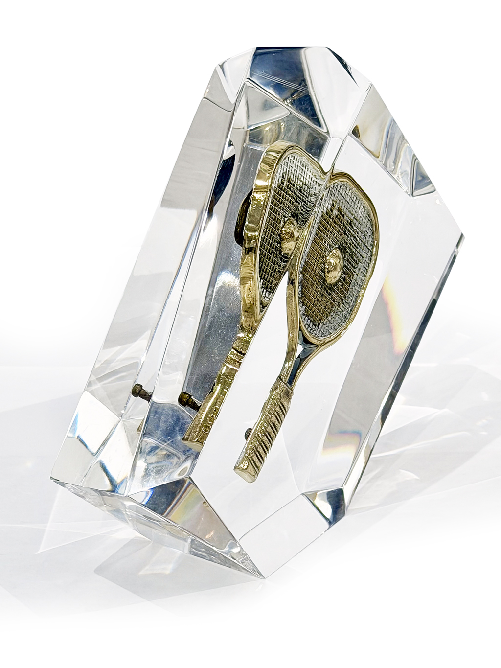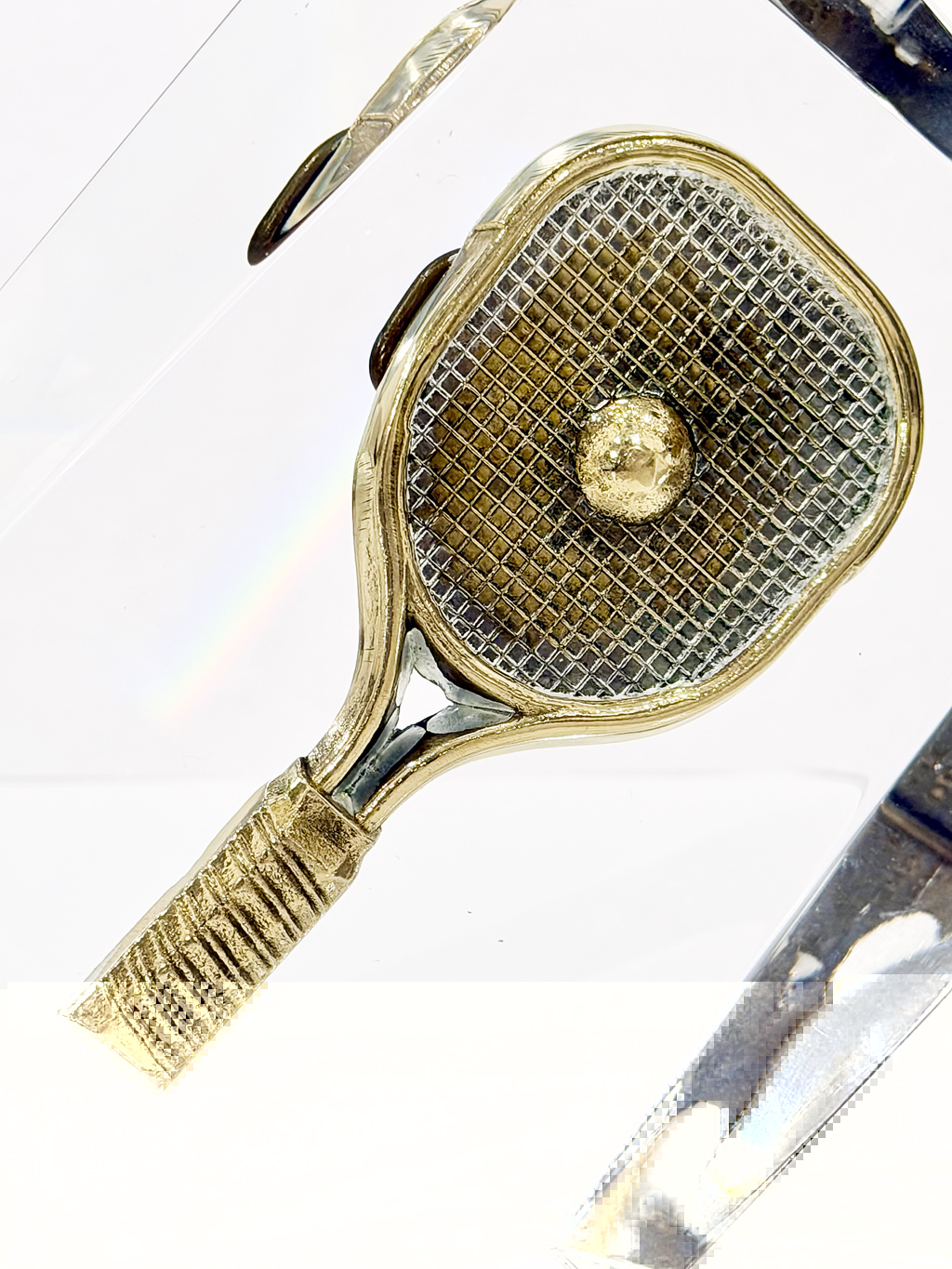 Lucite Encased Vintage Tennis Brass Buckle