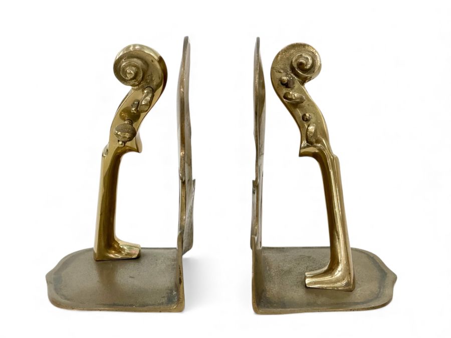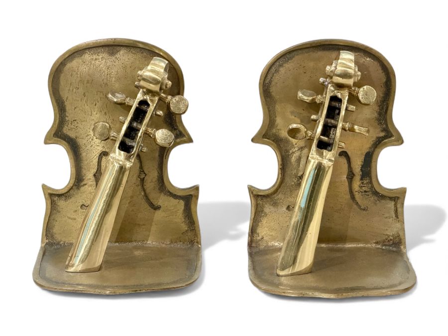 Vintage Mid-Century Brass Violin Bookends