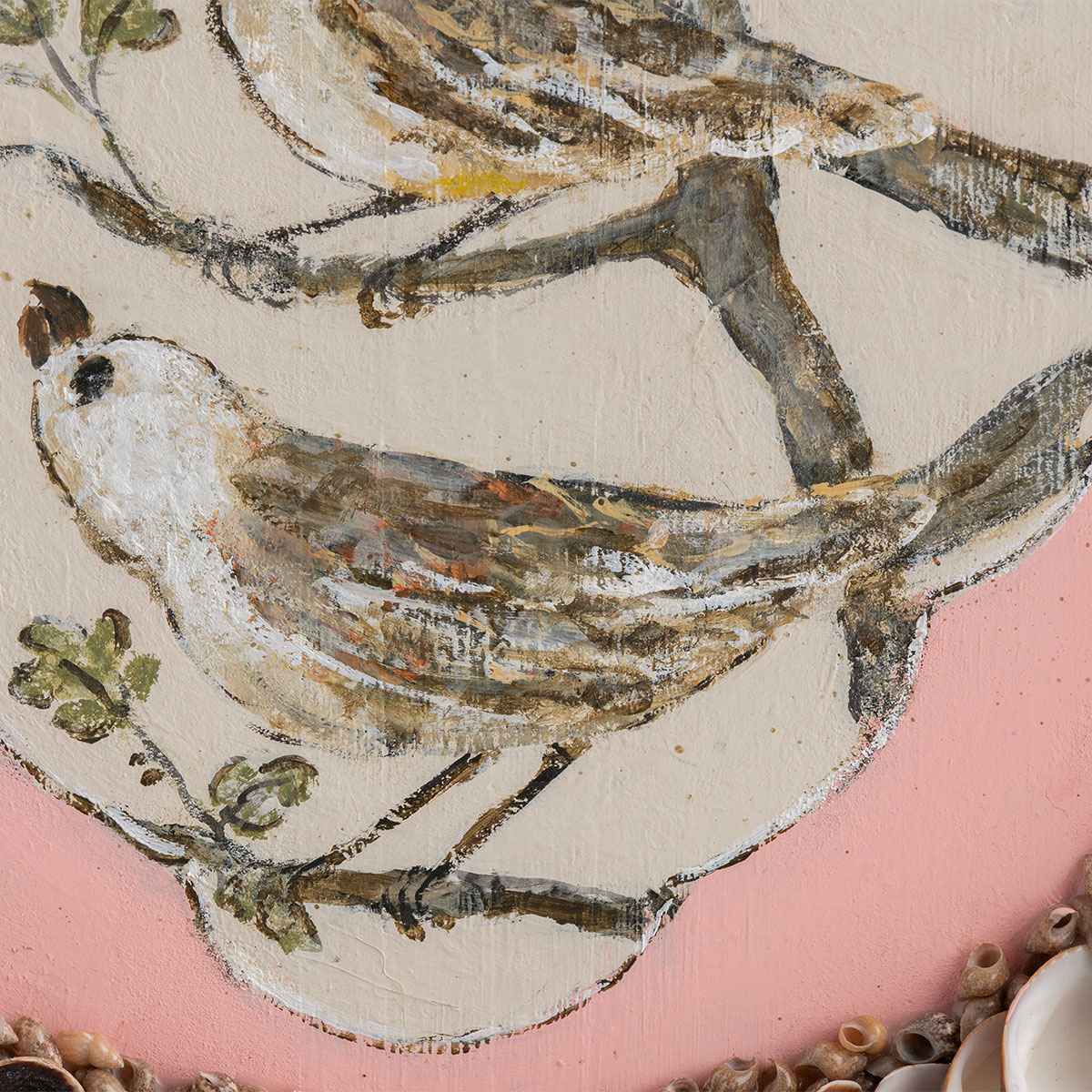 Pair of Birds Painted in Soft, Textured Finish